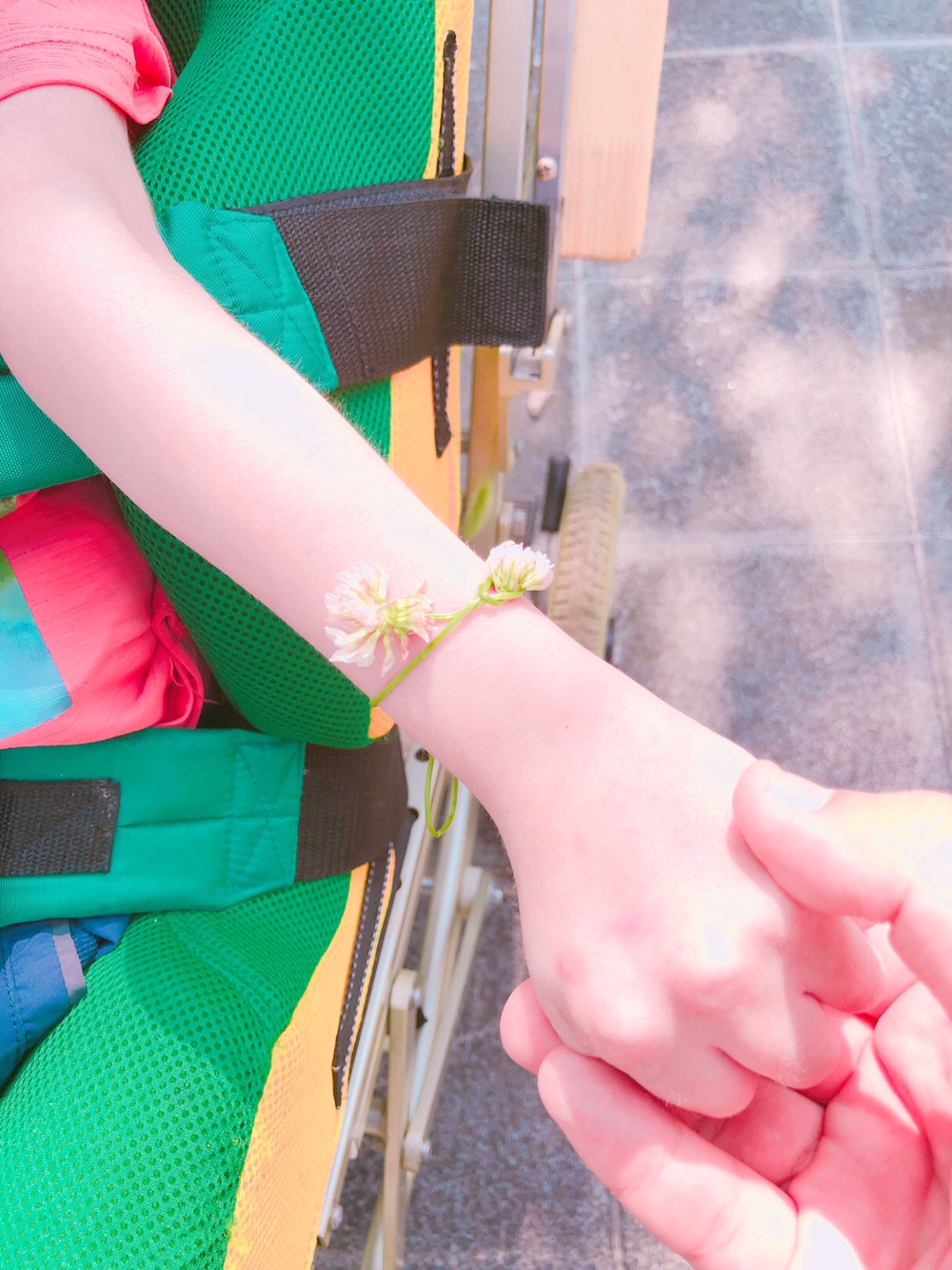 매우 맑고 햇볕이 쨍쨍해 야외에 앉아
