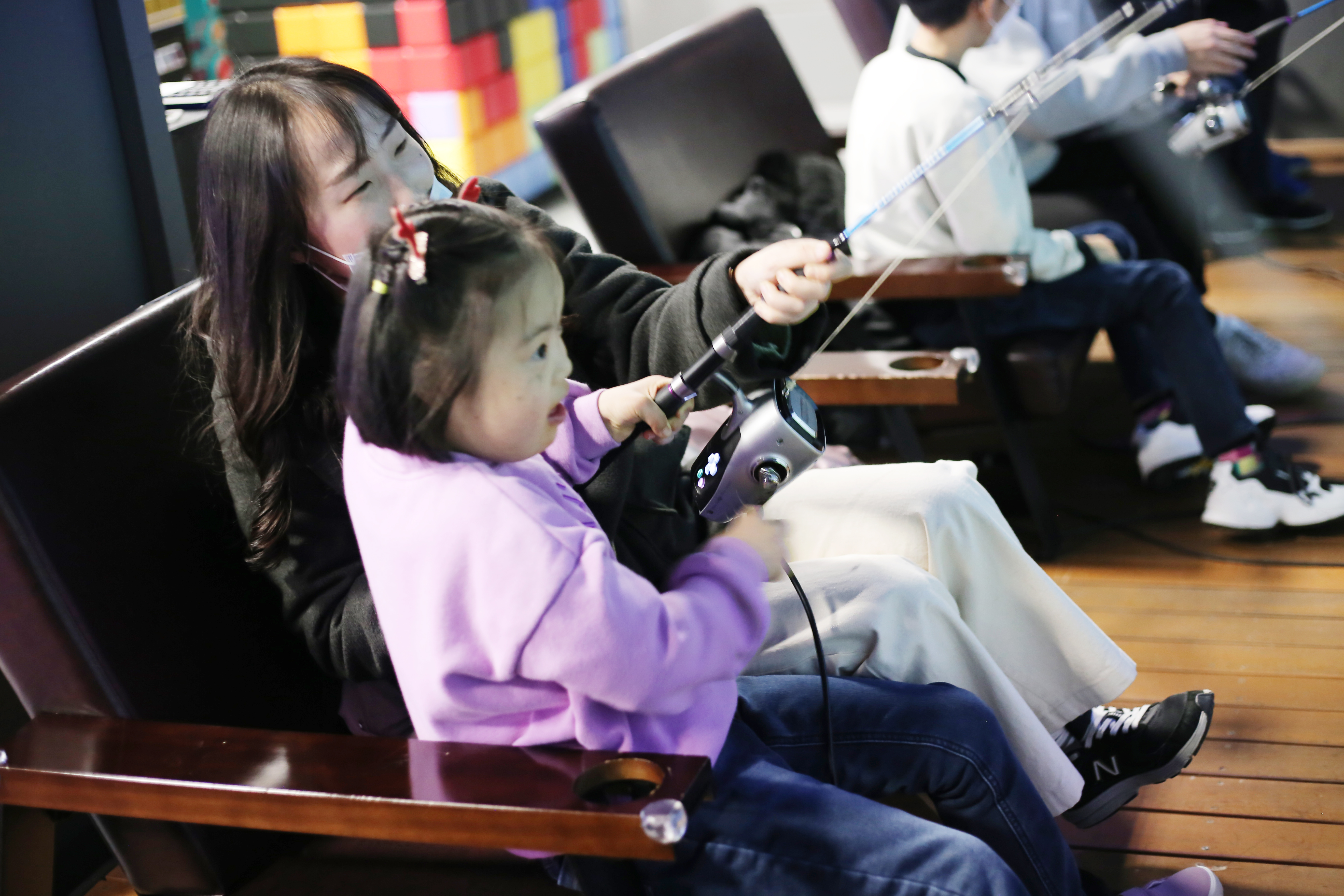 물고기가 잡힐 때마다 요리 조리 낚시대를 움직이며 신나는 시간을 보냈어요.