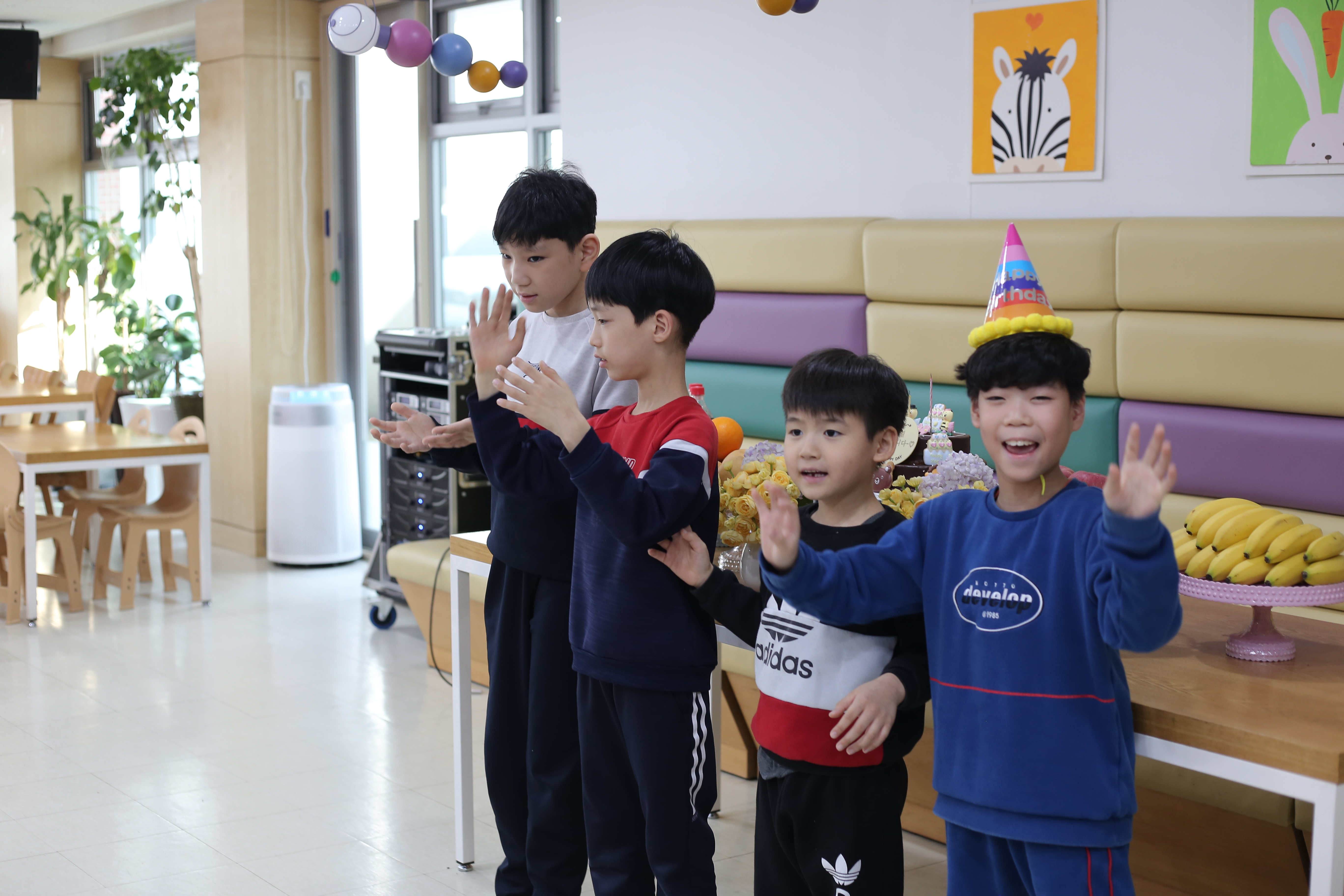 생일인 친구와 어우러져 노래를 부르는 모습이