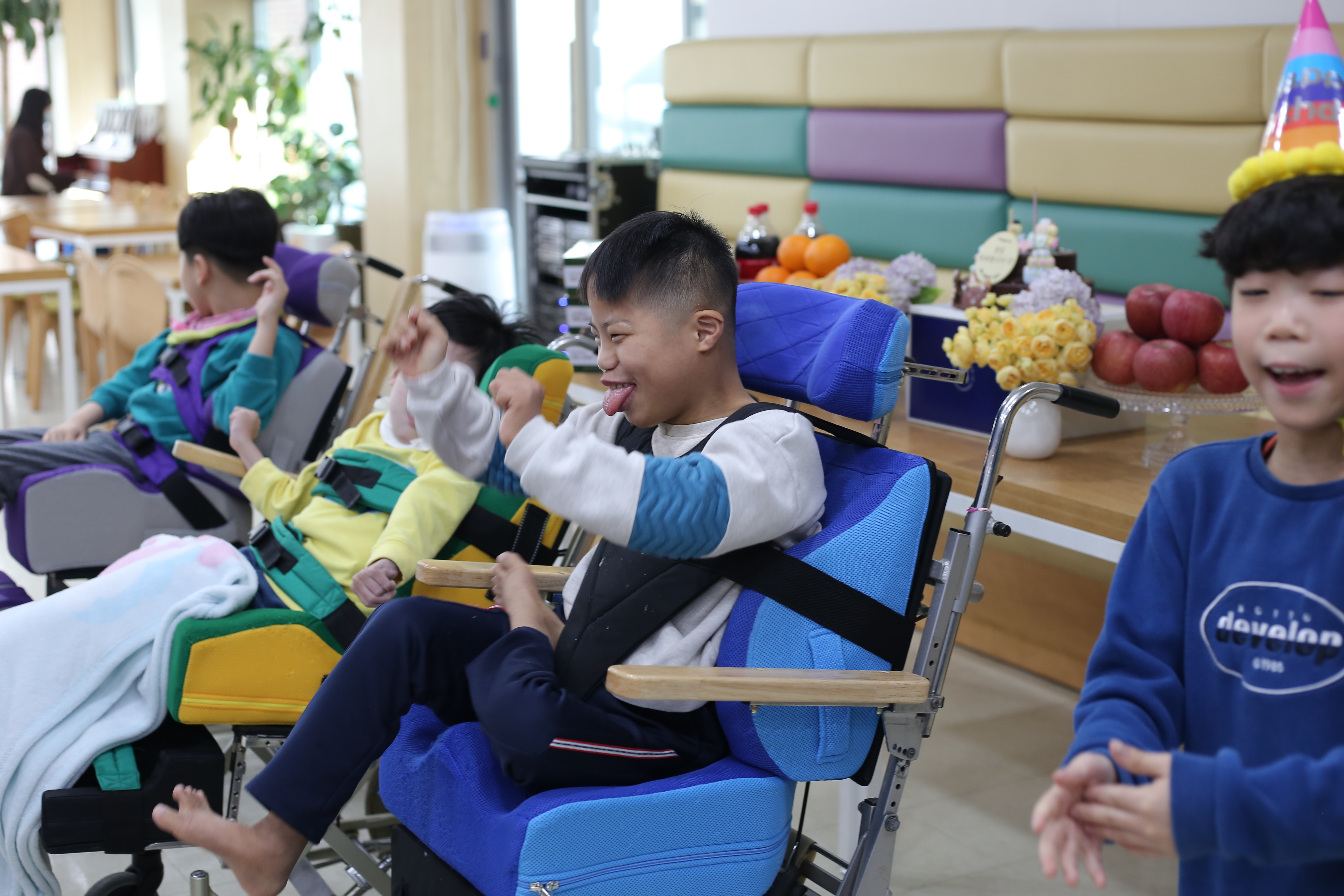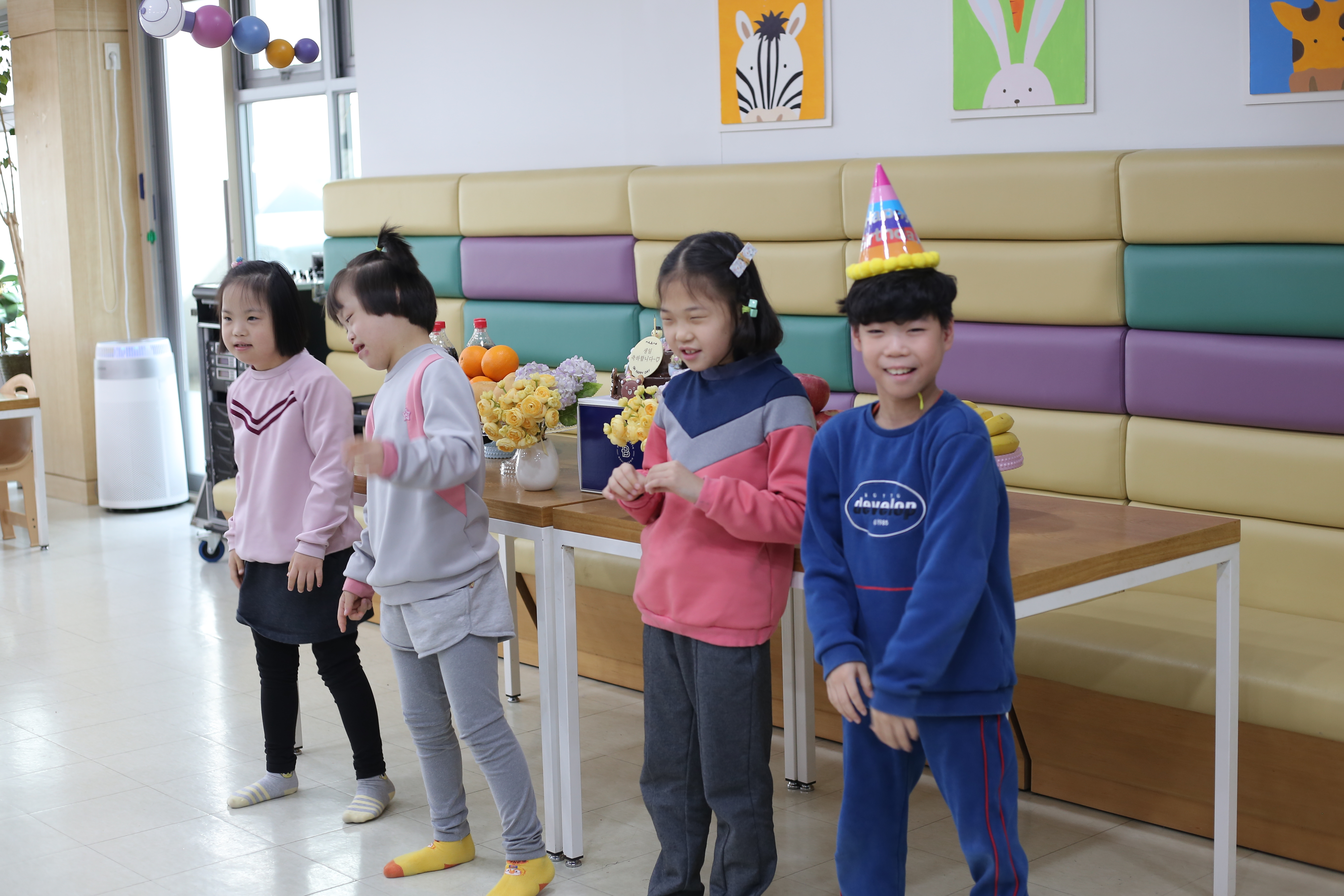 생일인 친구와 어우러져 노래를 부르는 모습이