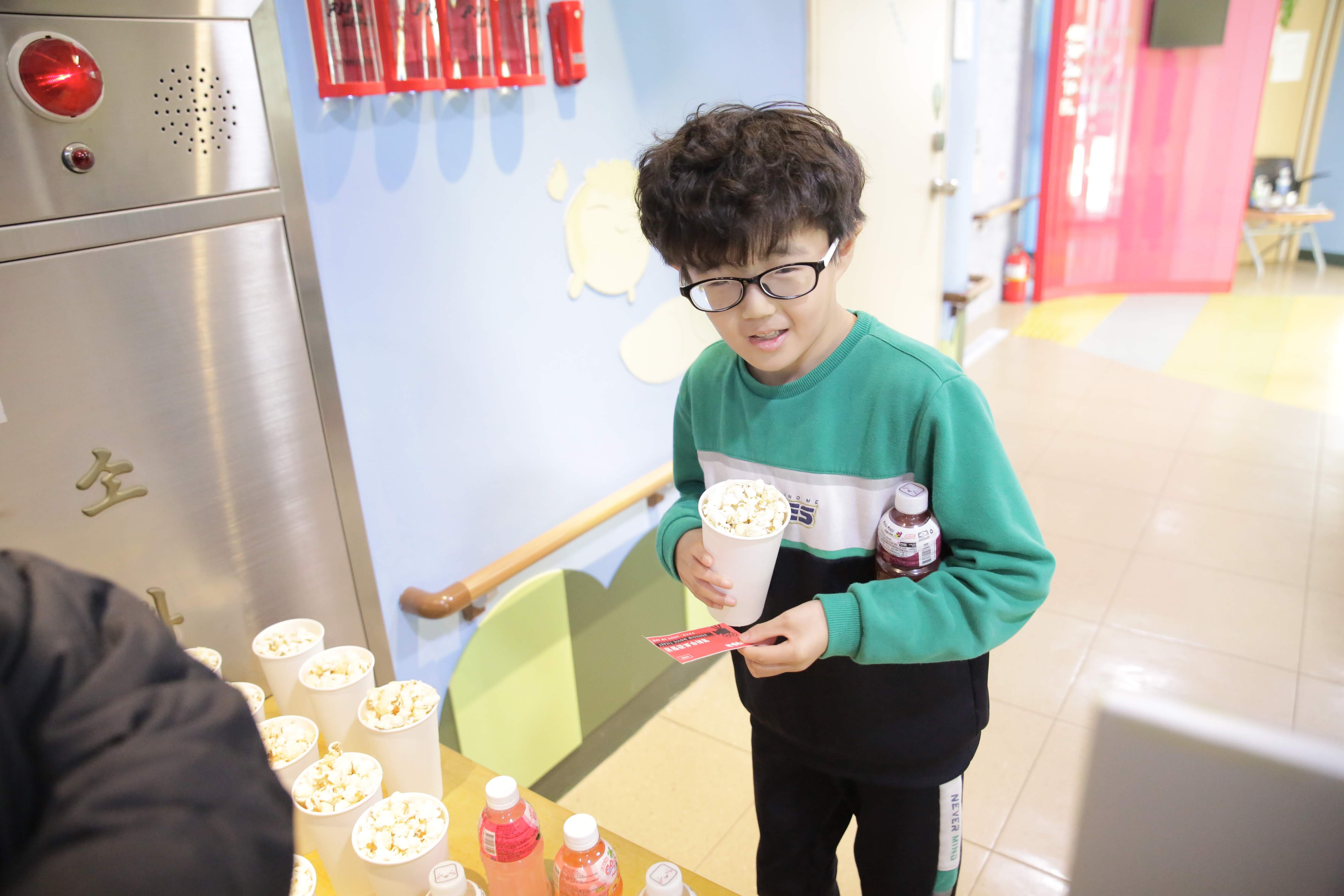 티켓팅을 하고 들어가는 아이들의 얼굴엔 미소가 가득,