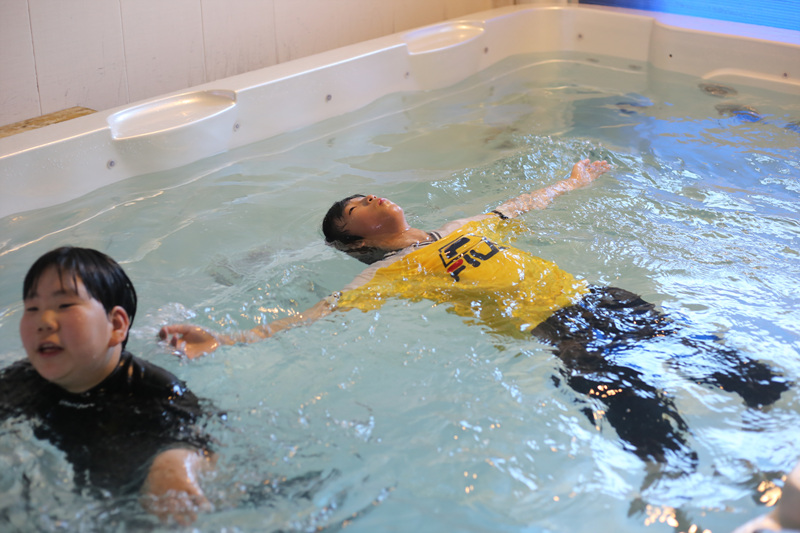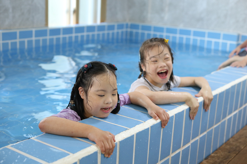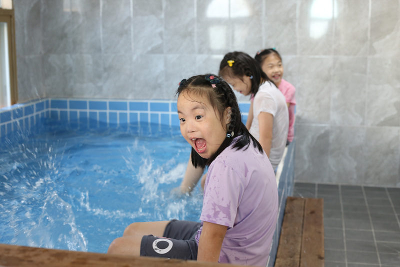 숙소의 온수풀장에서 물놀이도 실컷 즐기고,