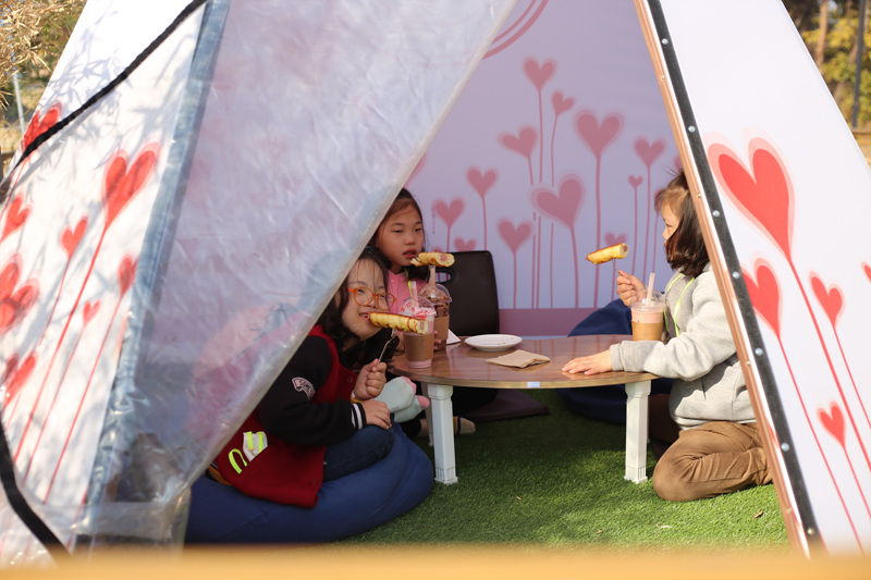 비대면 이용이 가능한 카페에선 귀여운 인디언 텐트 속에 쏘옥~