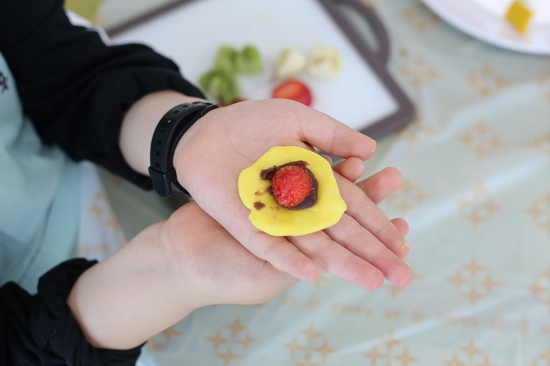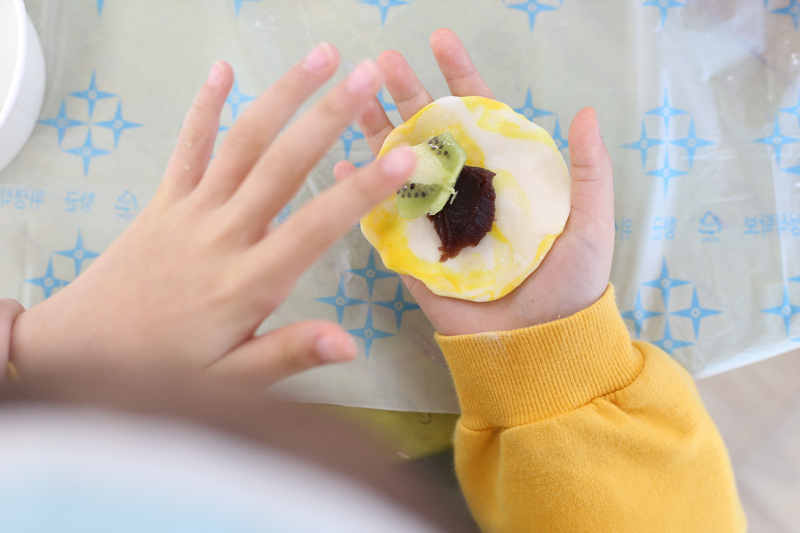 맛있는 과일을 쏘옥 넣어 찹쌀떡을 만들었어요!