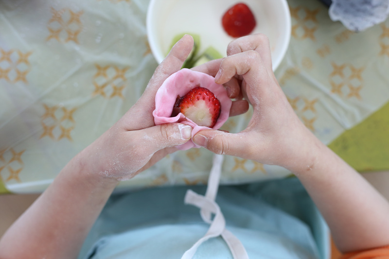 맛있는 과일을 쏘옥 넣어 찹쌀떡을 만들었어요!