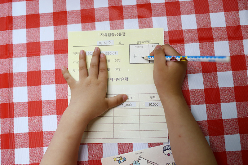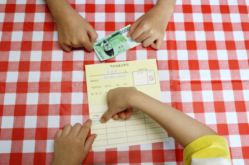 은행원이 하는 일을 알아보고, 예쁜 지갑 만들기와 통장 발급을 체험해 보았어요.