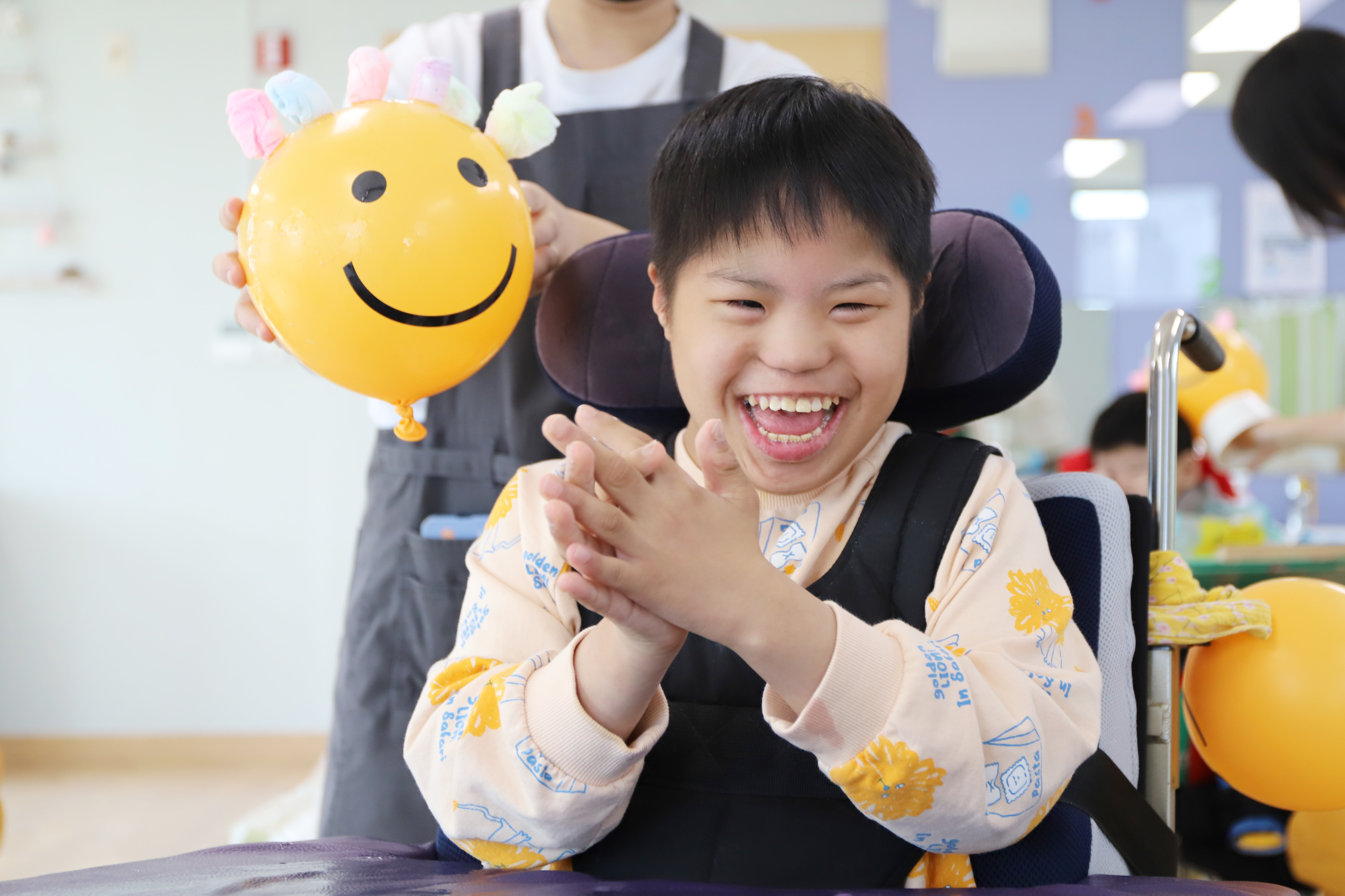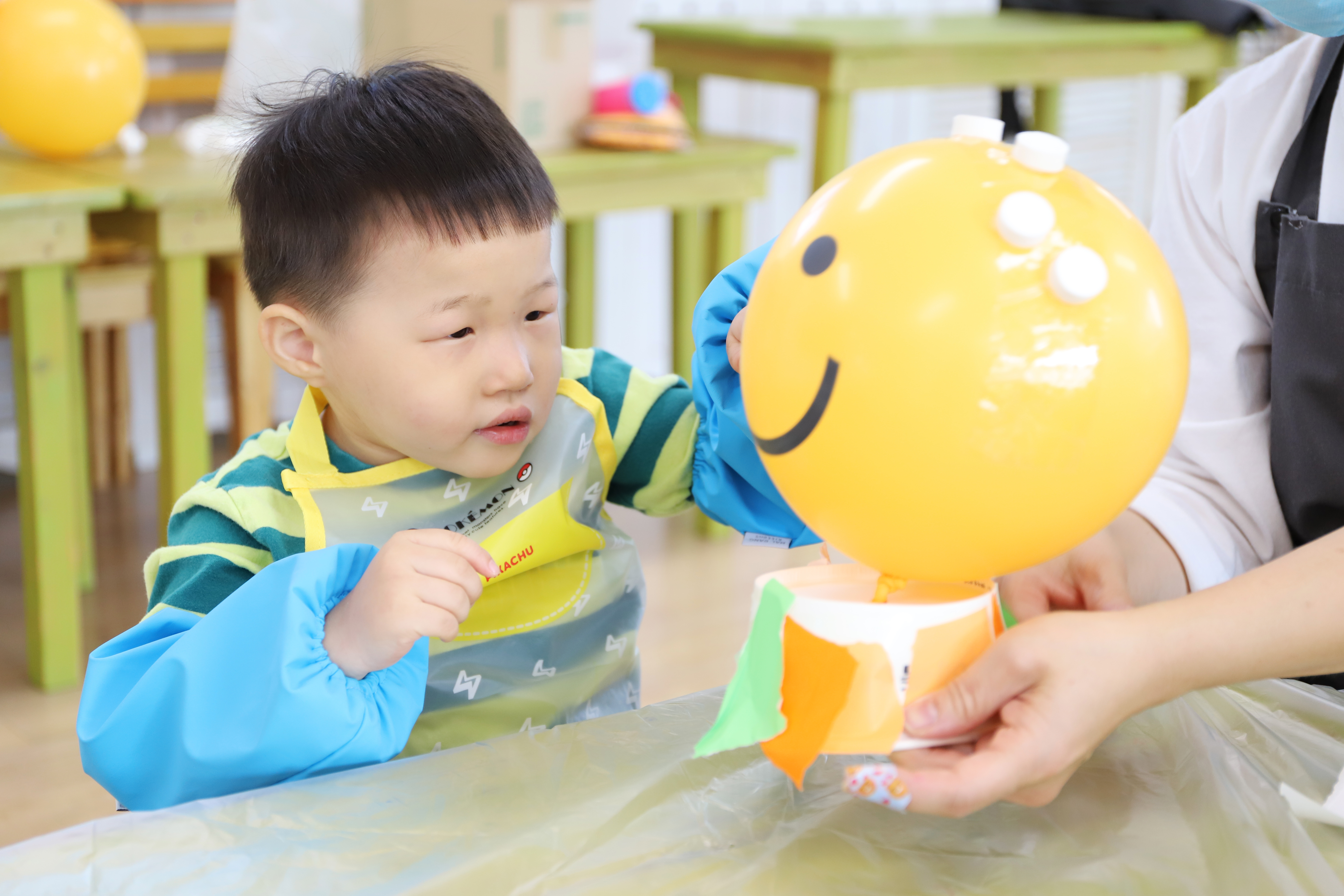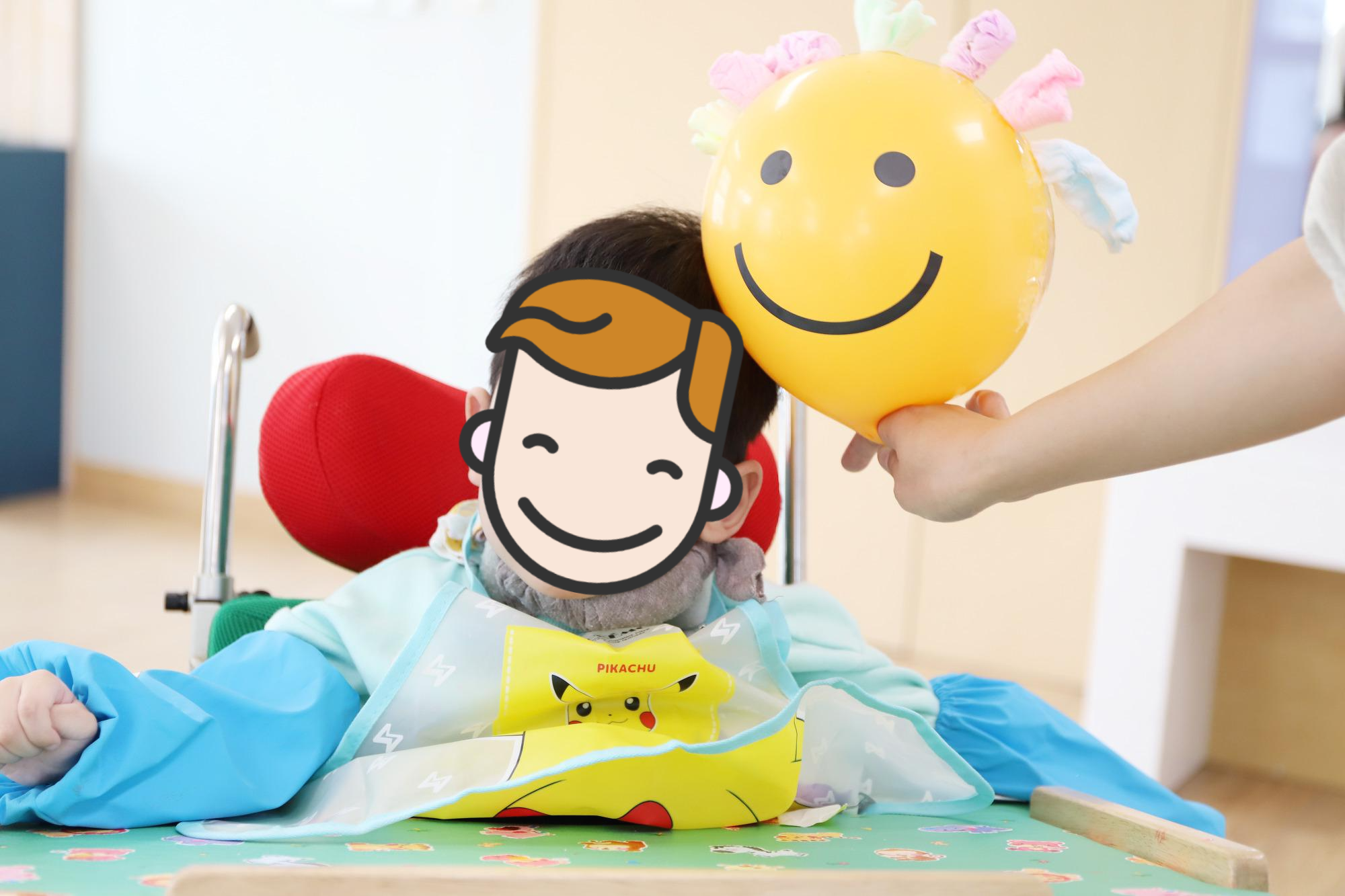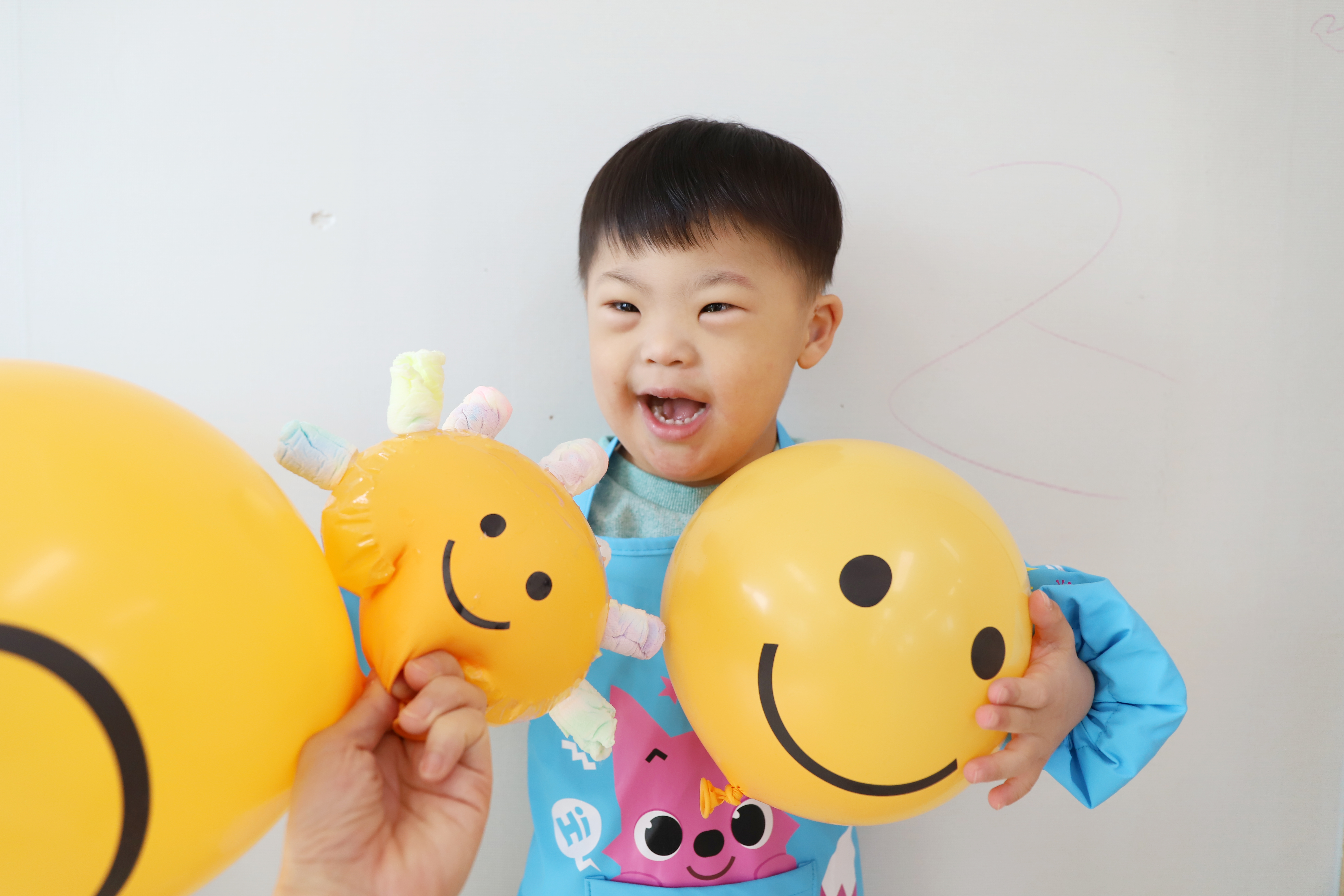 예쁜 스마일 풍선에 머리가 자라나는 마술을 부렸어요.