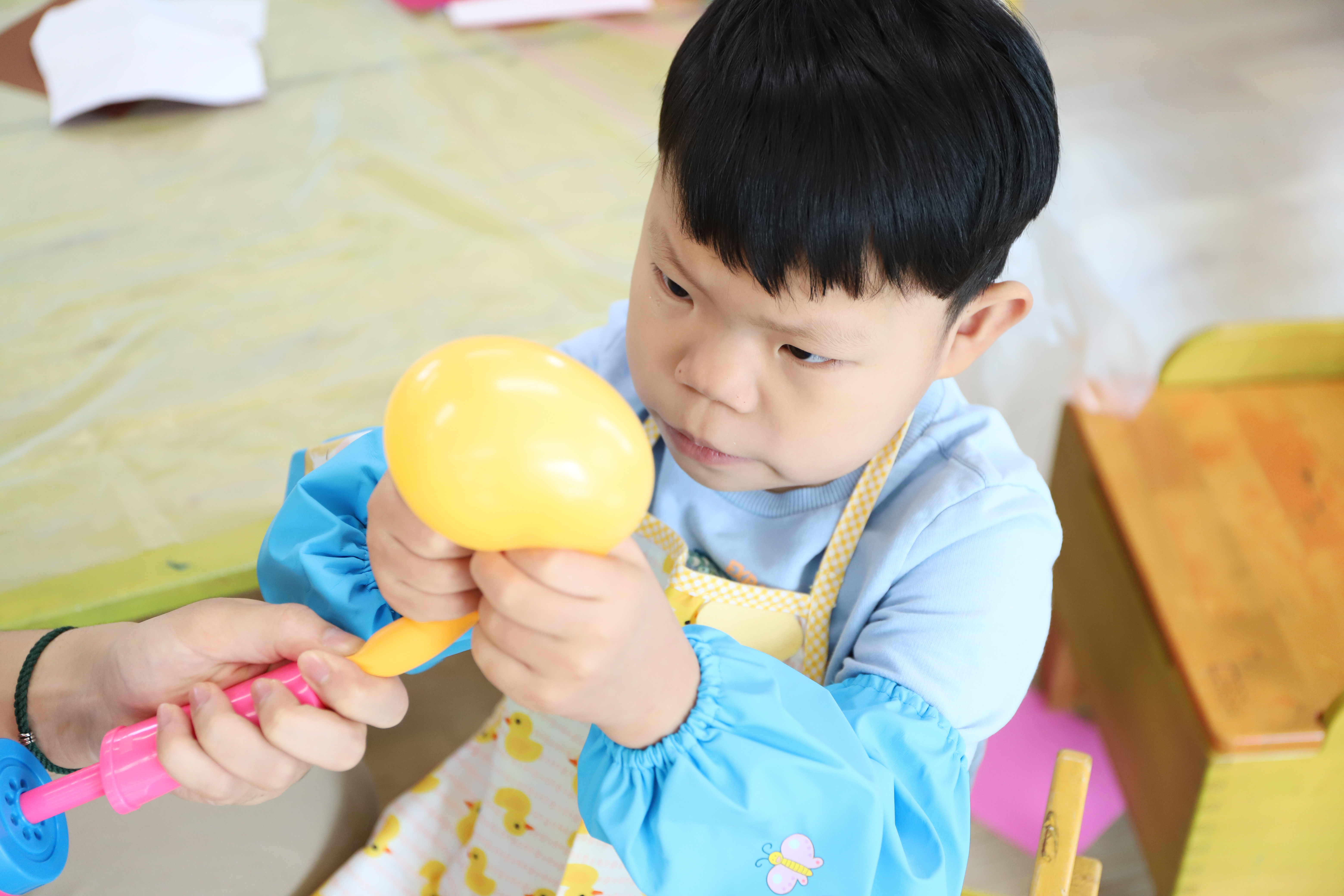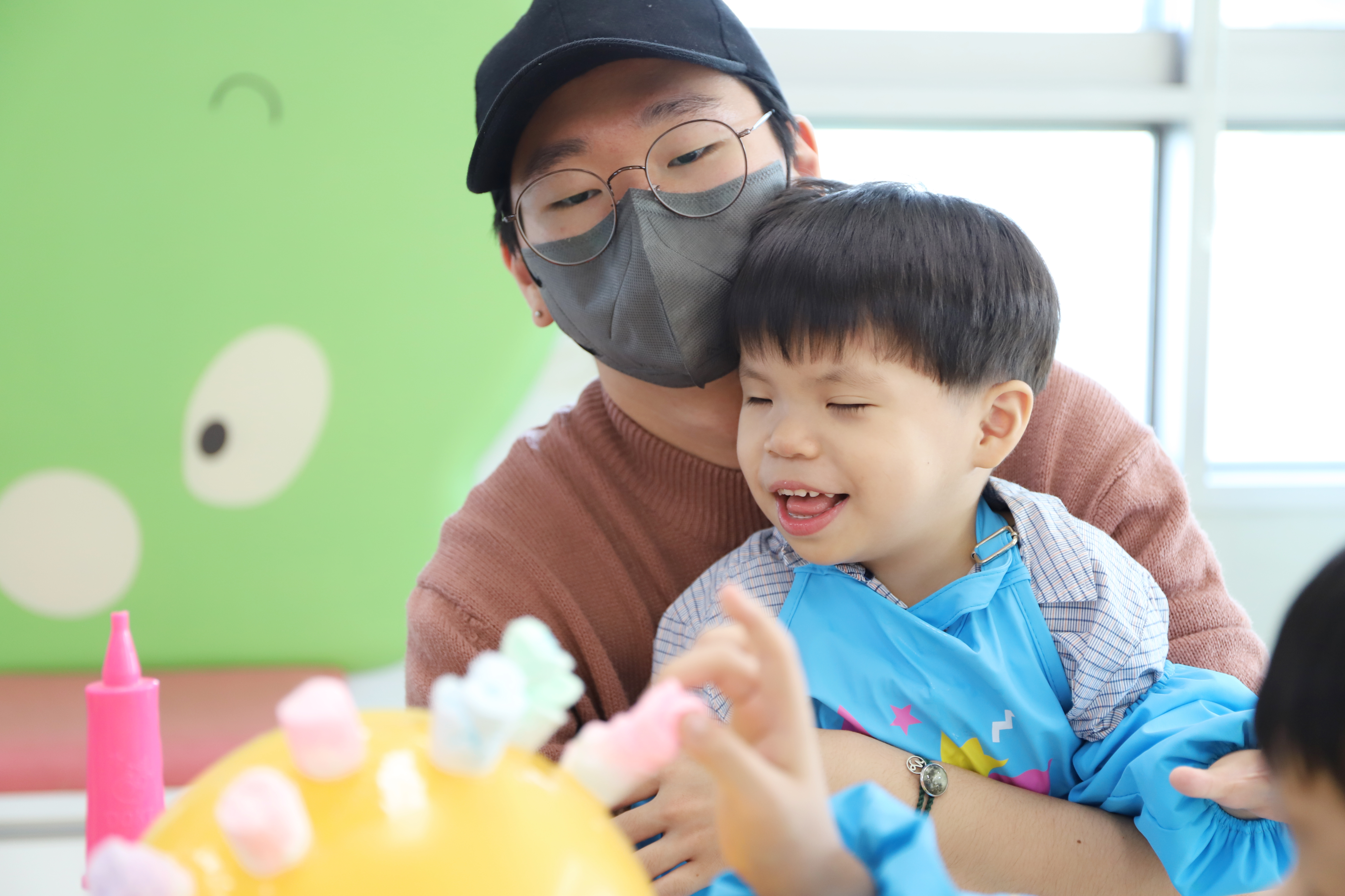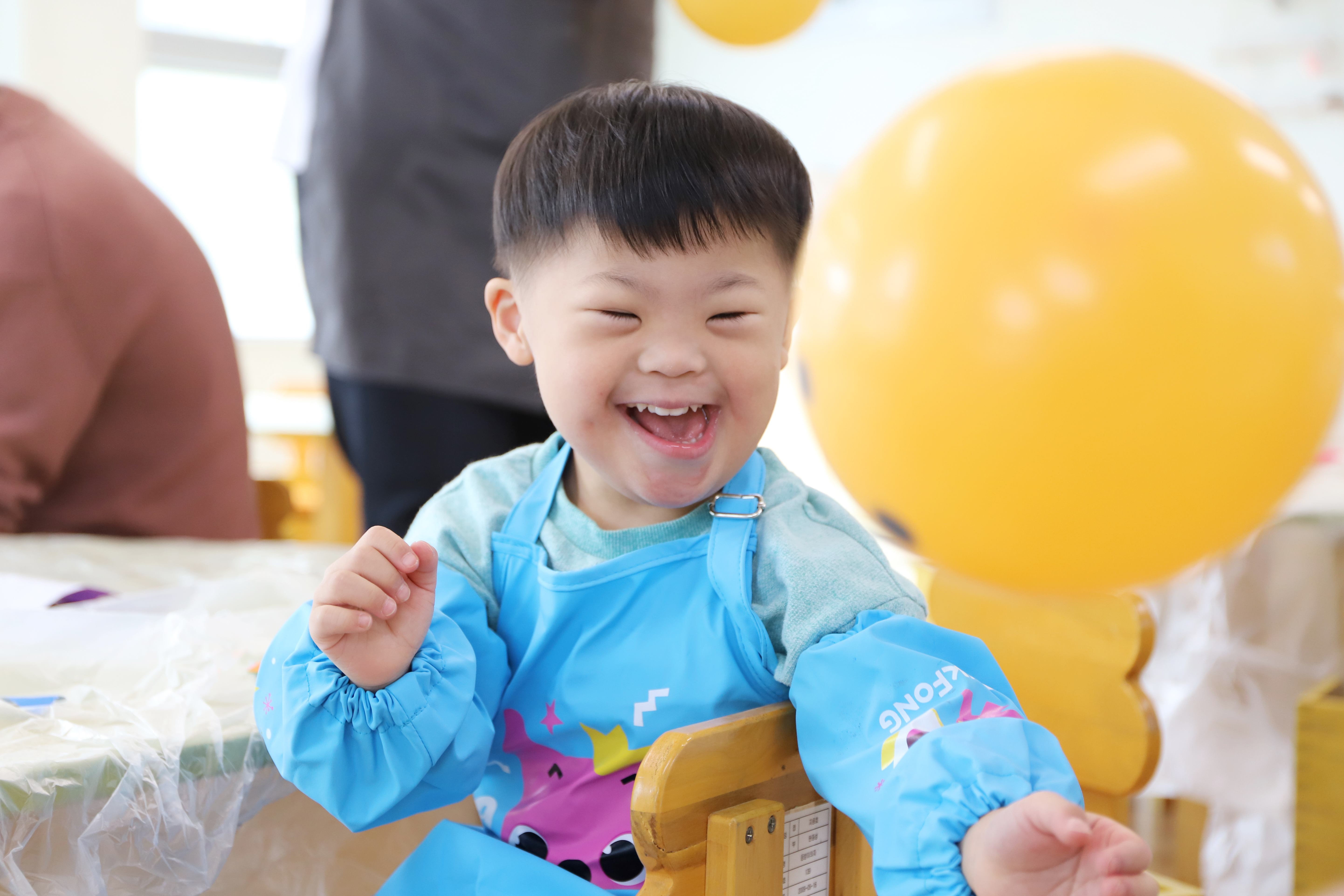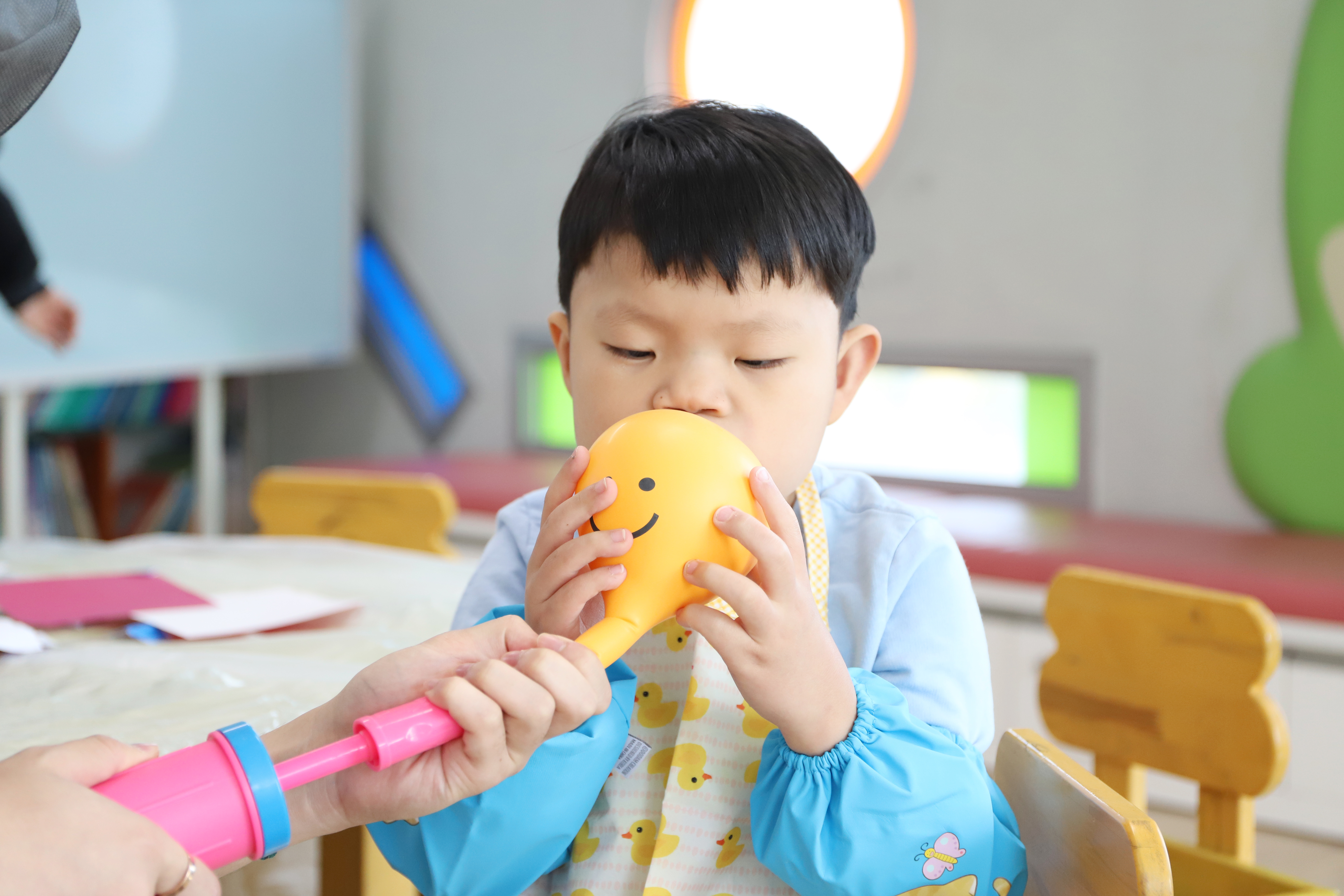 예쁜 스마일 풍선에 머리가 자라나는 마술을 부렸어요.