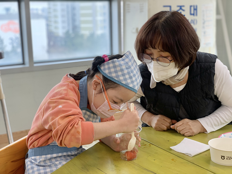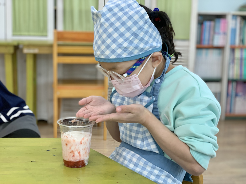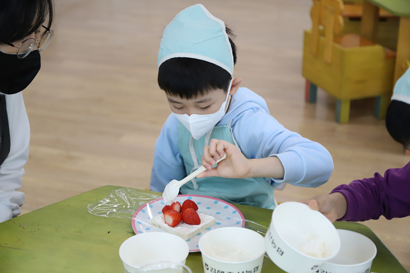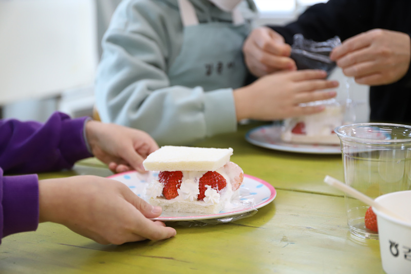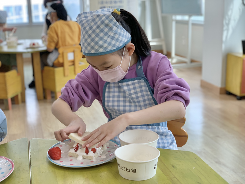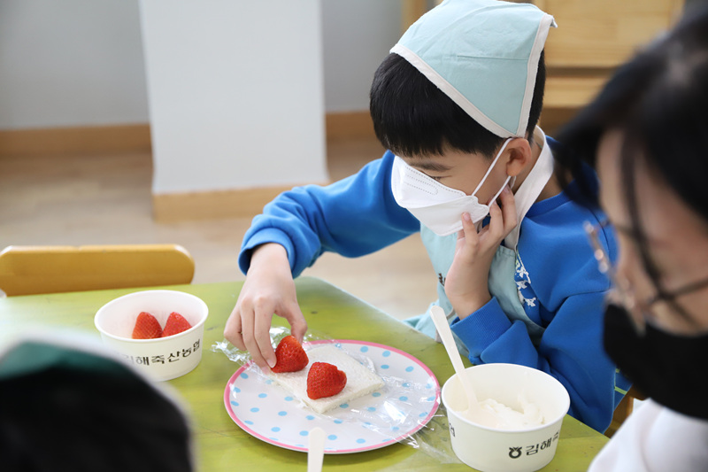 딸기를 이용해 맛있는 디저트를 만들었어요.