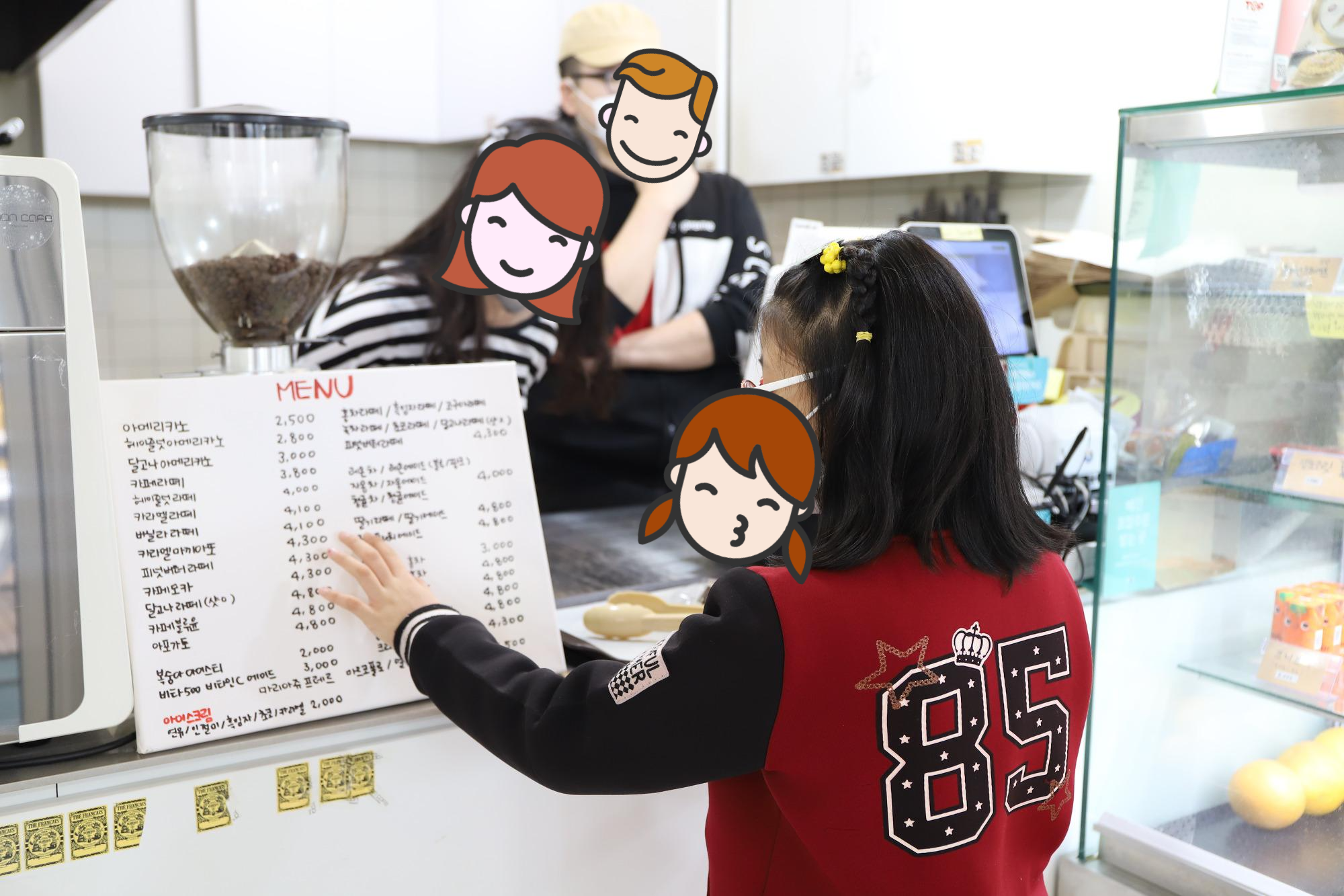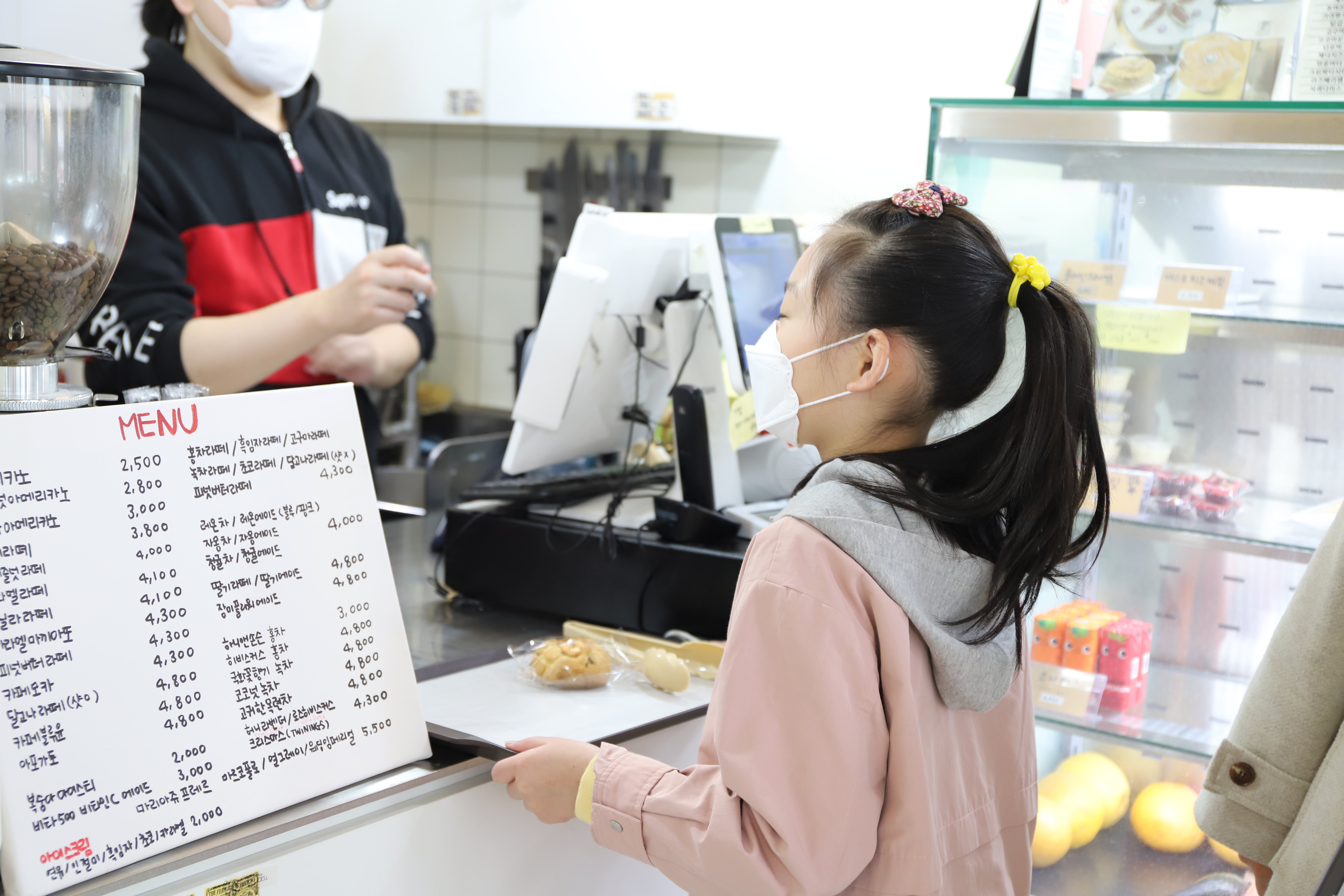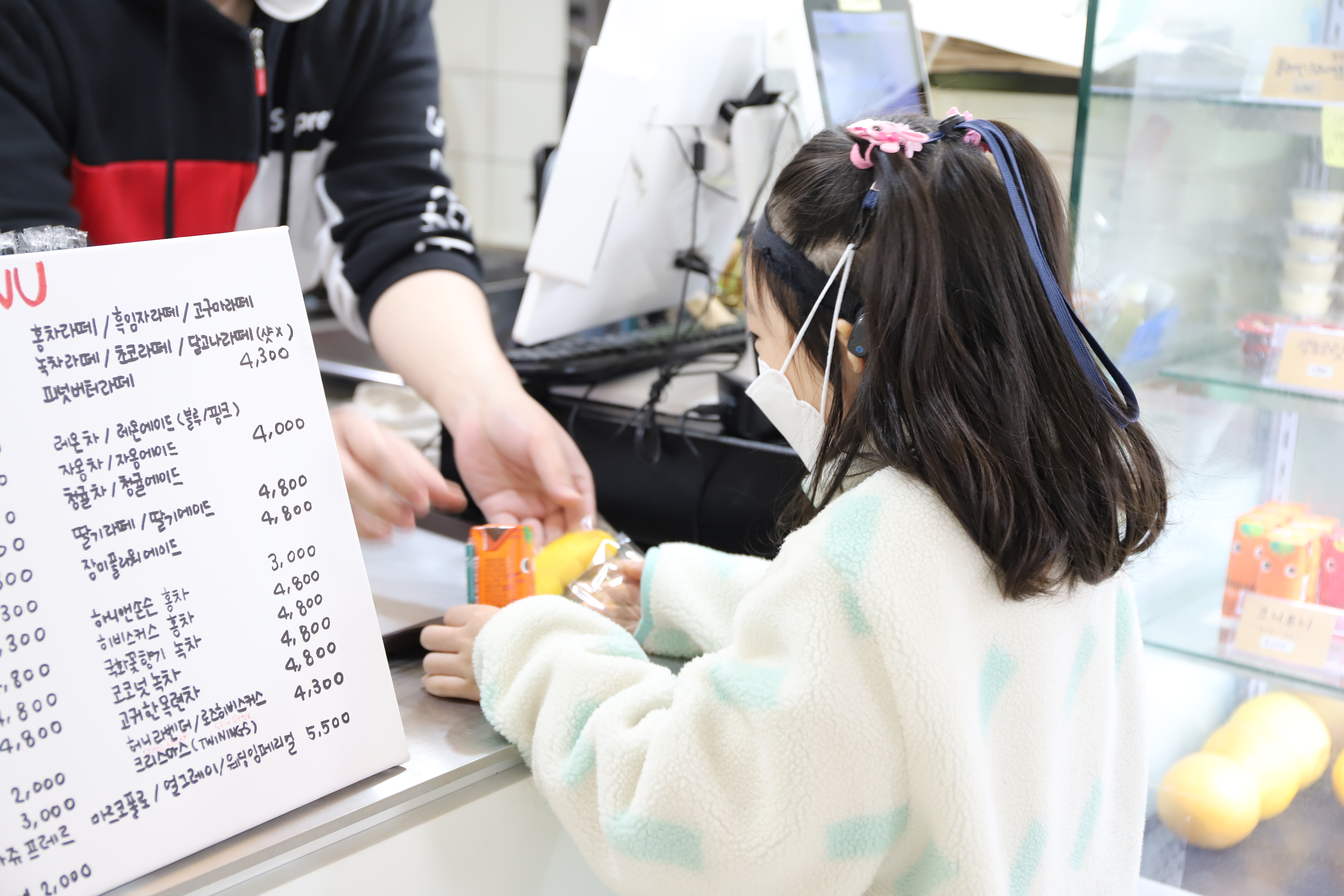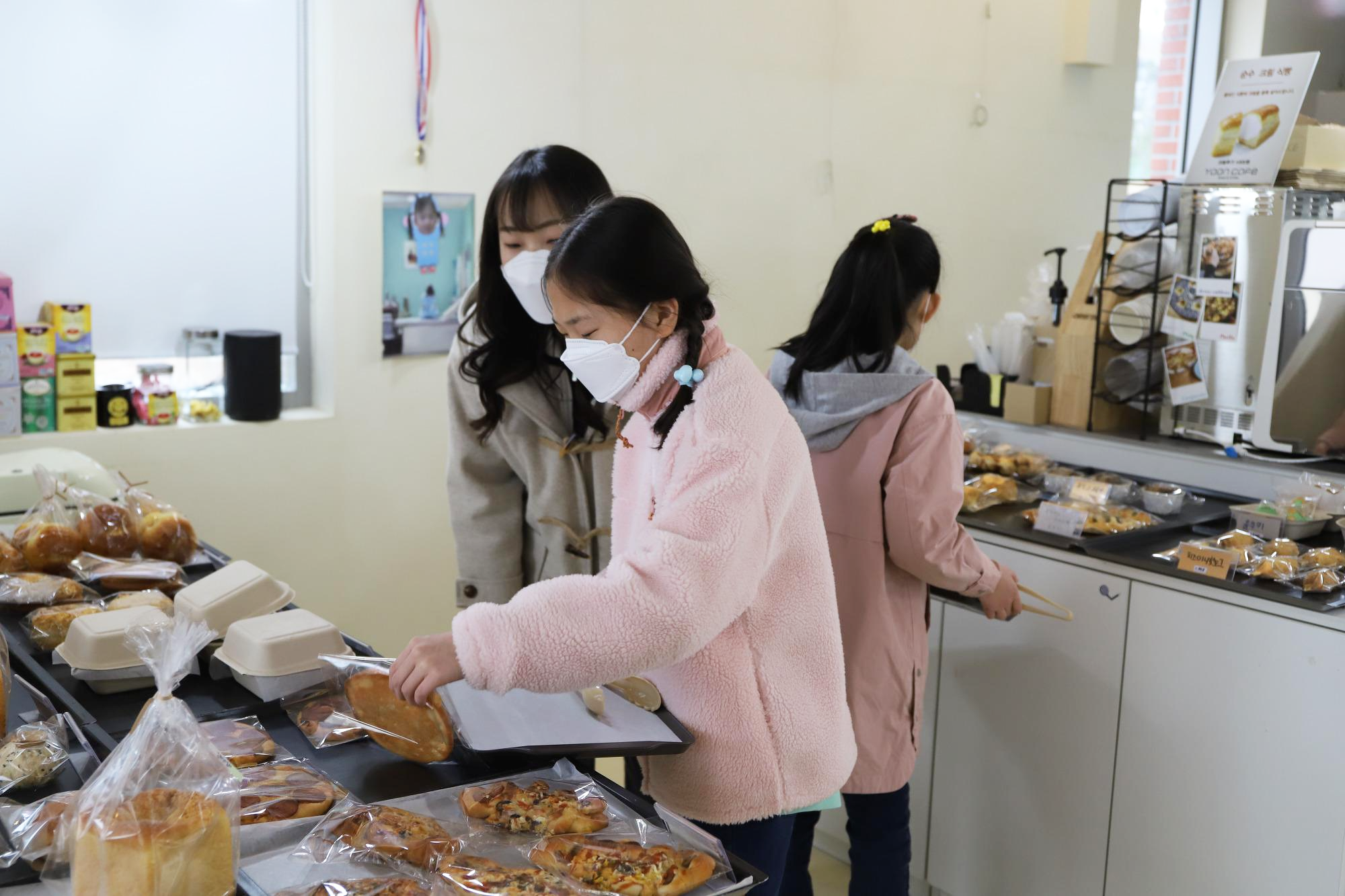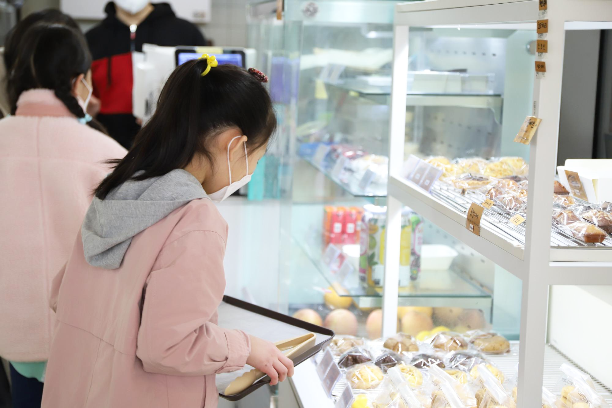 차례차례 질서를 잘 지켜 원하는 빵과 음료를 고른 후