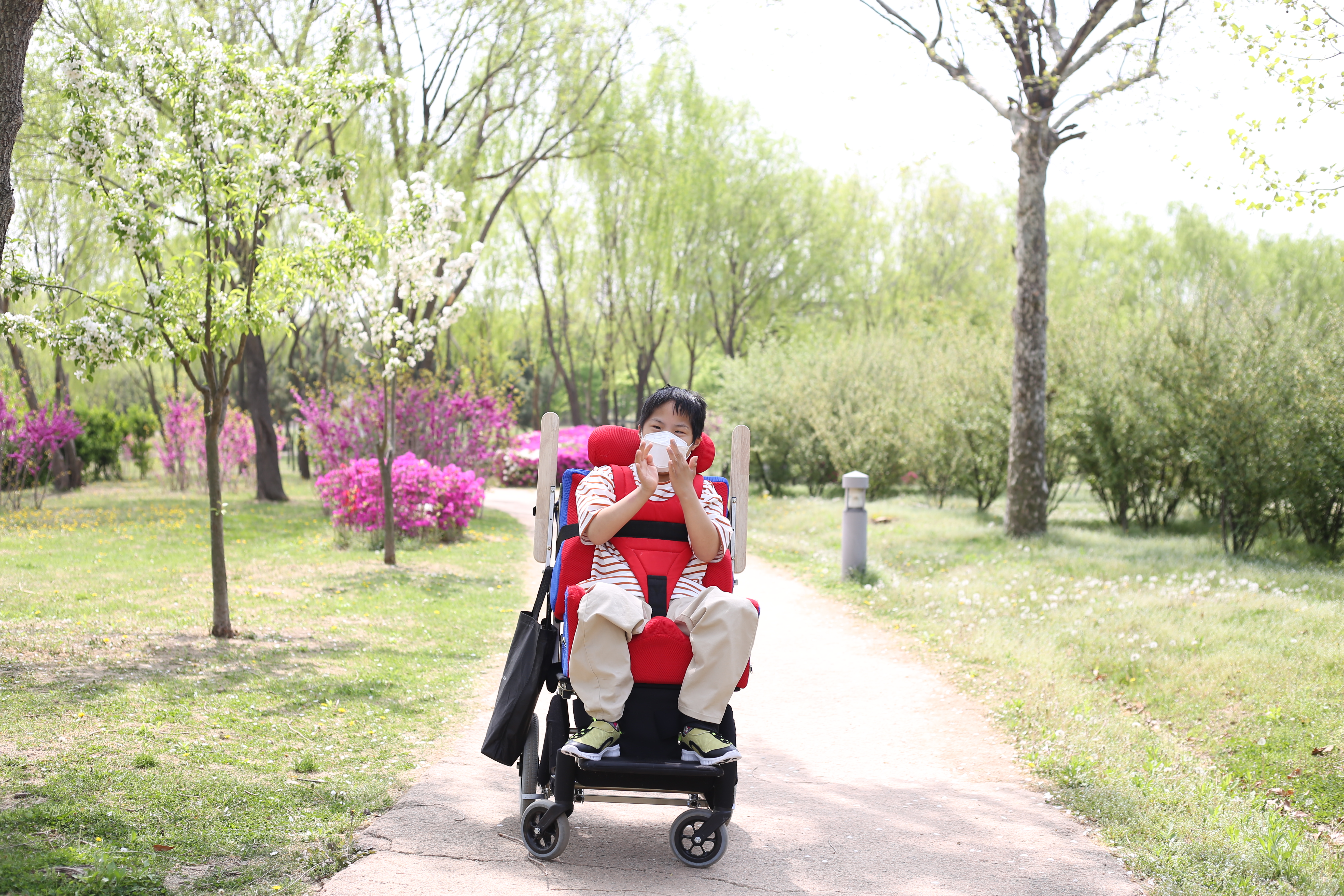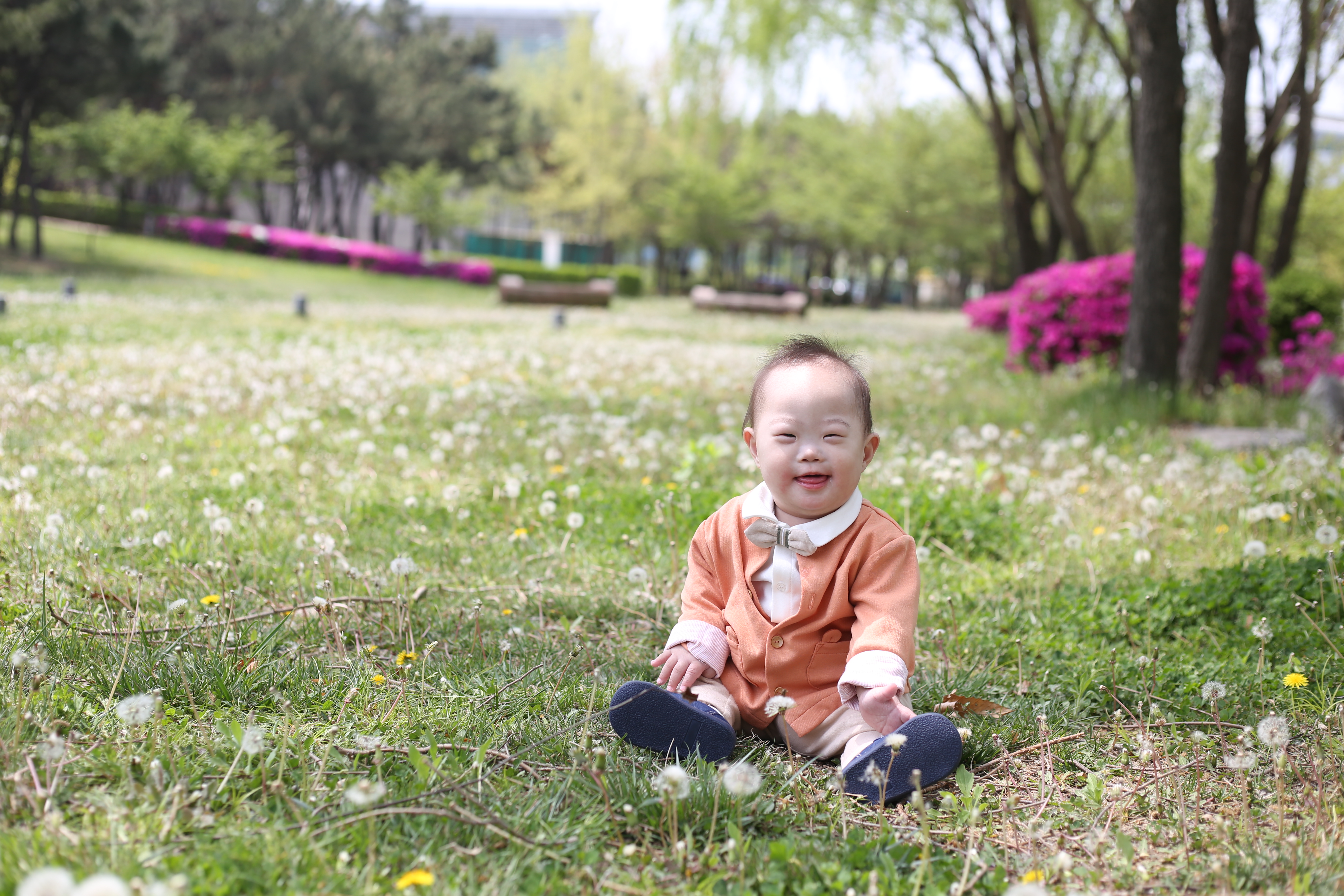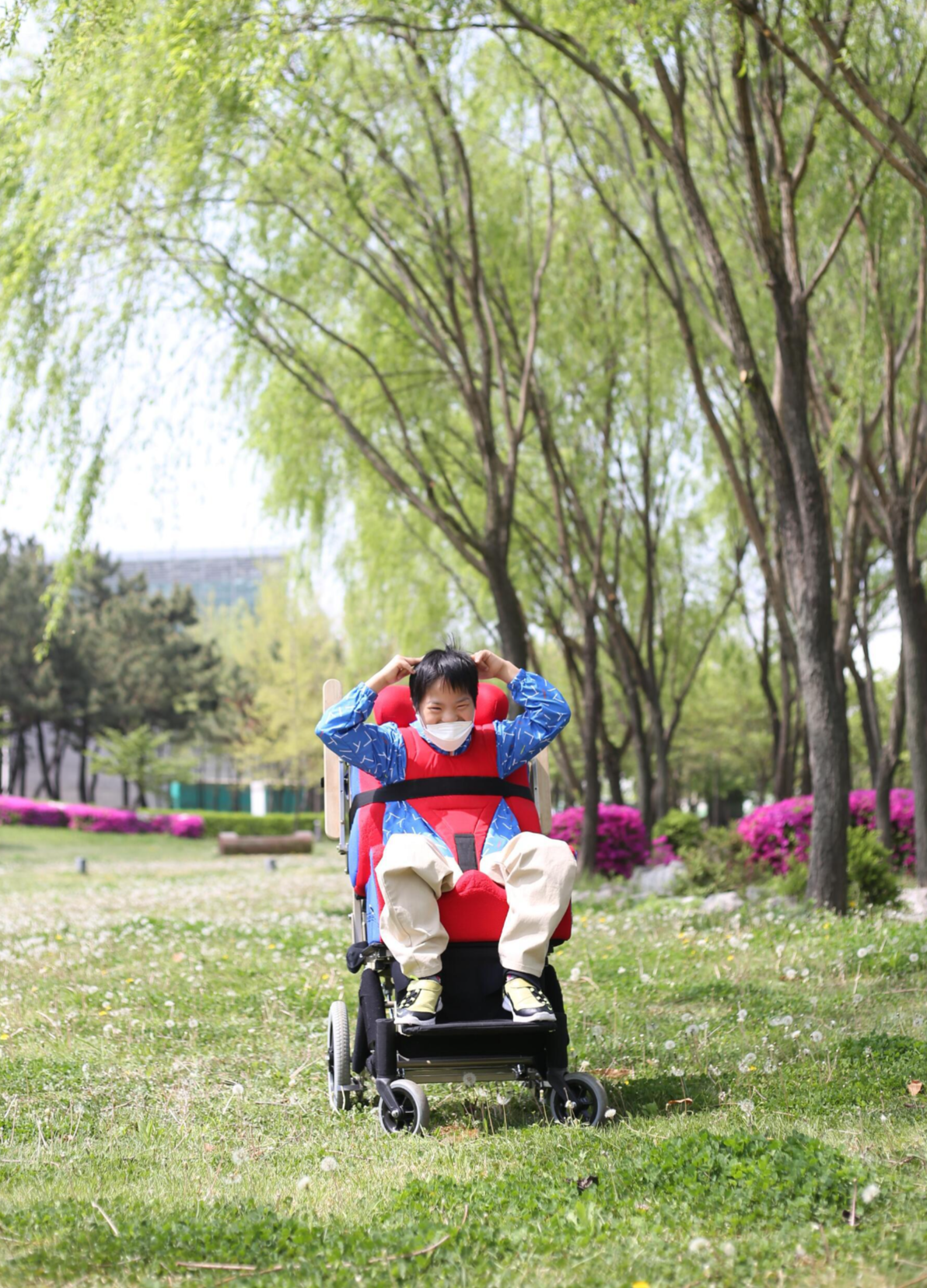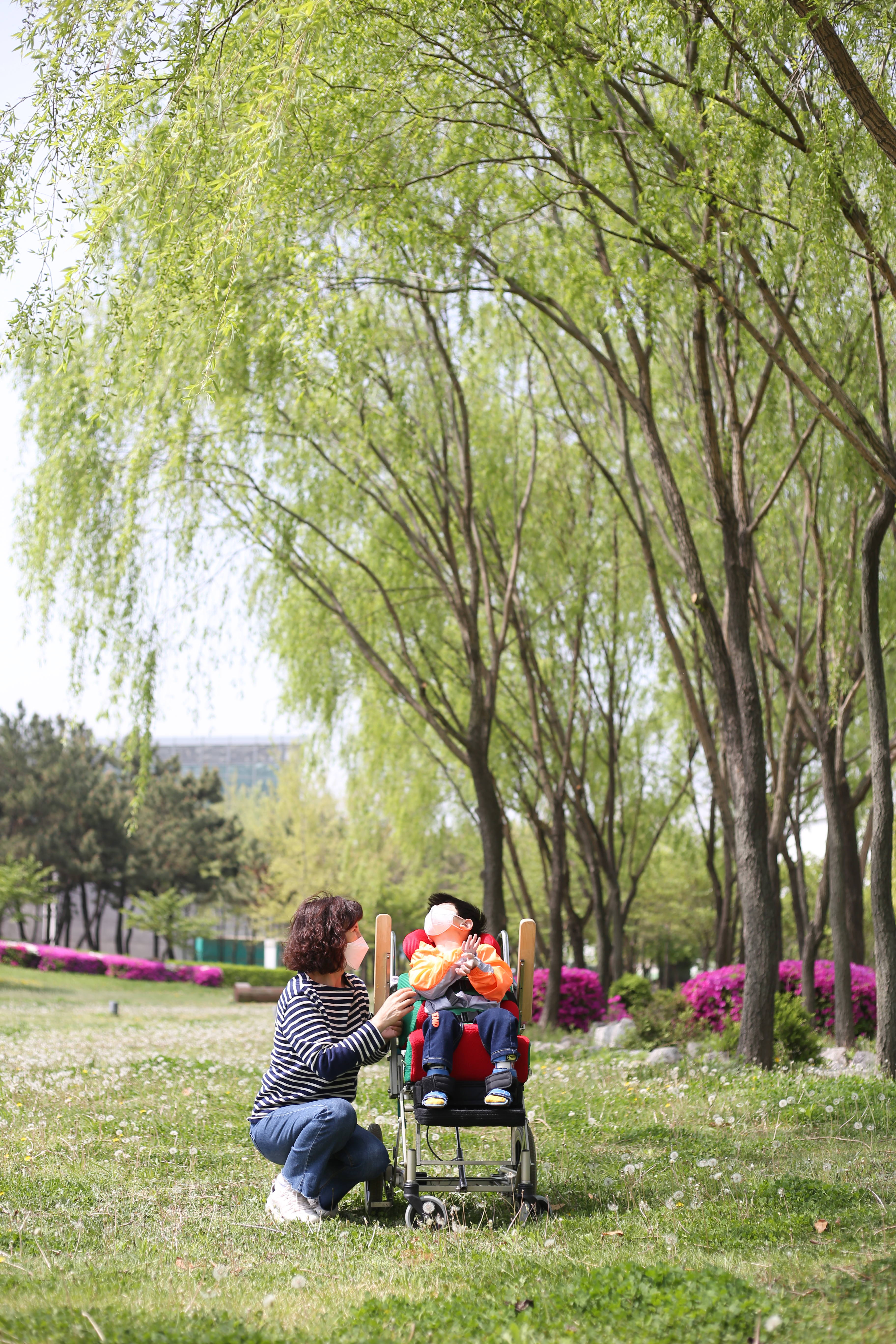 꽃이 가득한 공원을 거닐며 행복한 시간을 보내고
