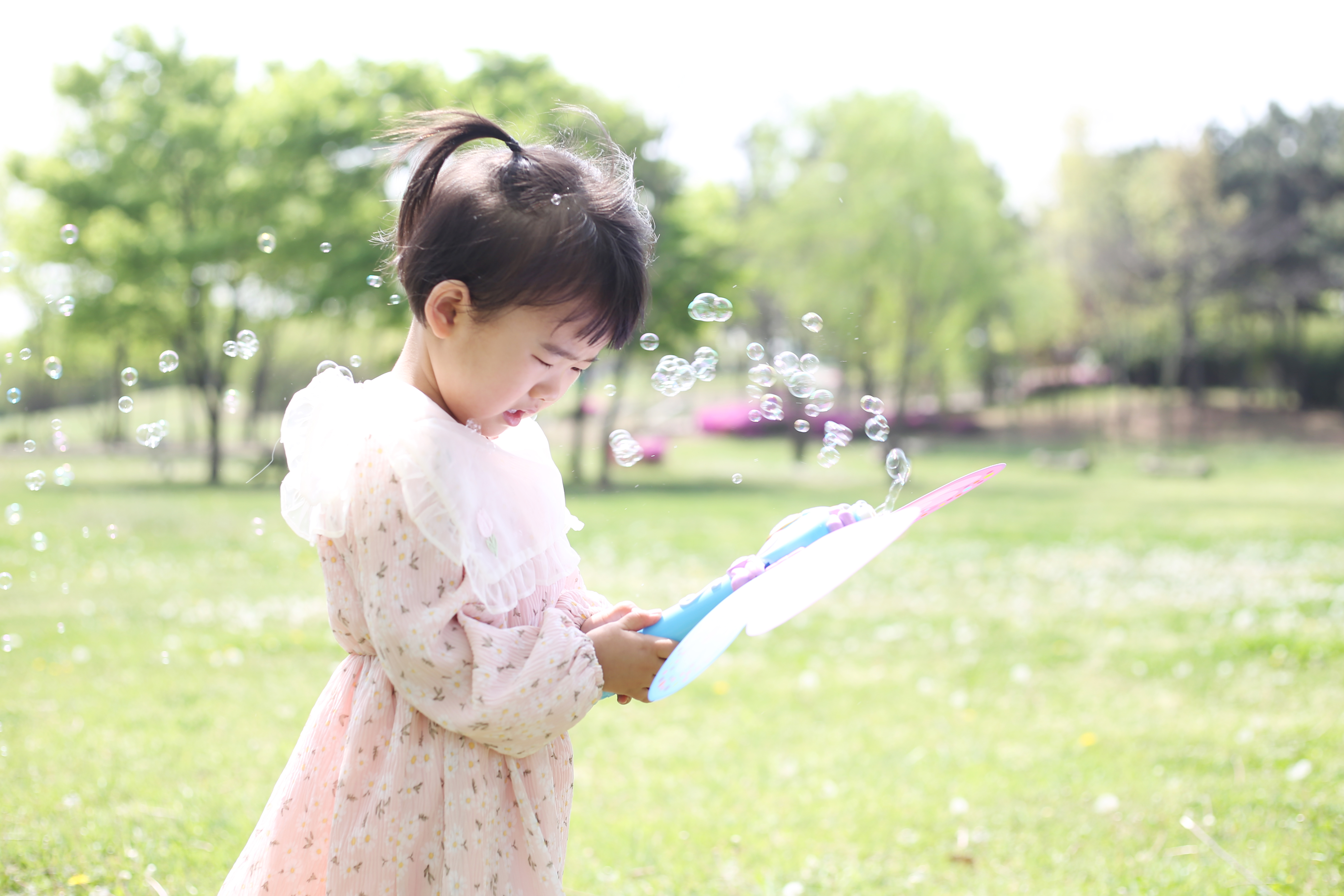 꽃이 가득한 공원을 거닐며 행복한 시간을 보내고