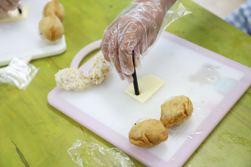 조물조물 밥을 뭉치고, 유부로 모자를 씌워 귀엽게 완성했답니다~