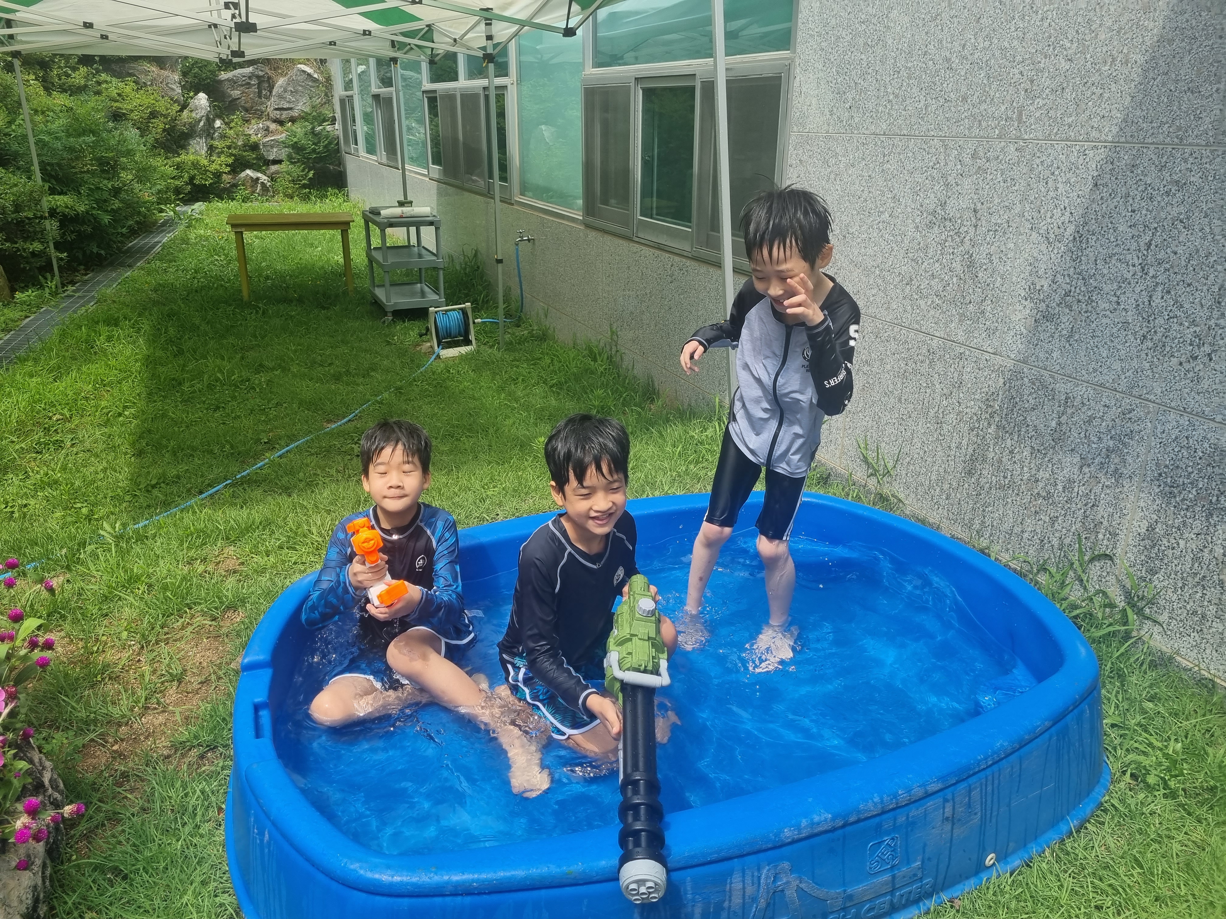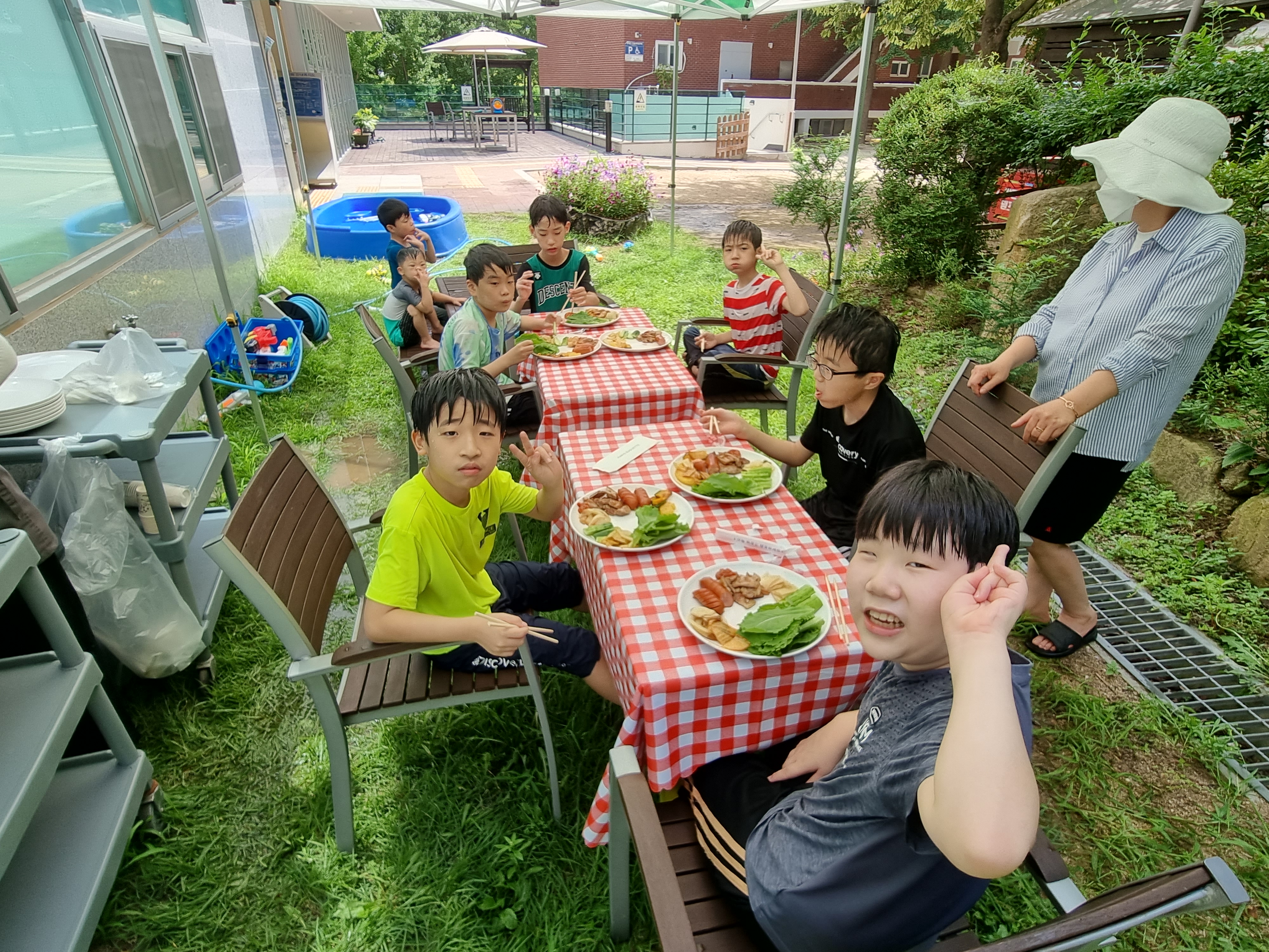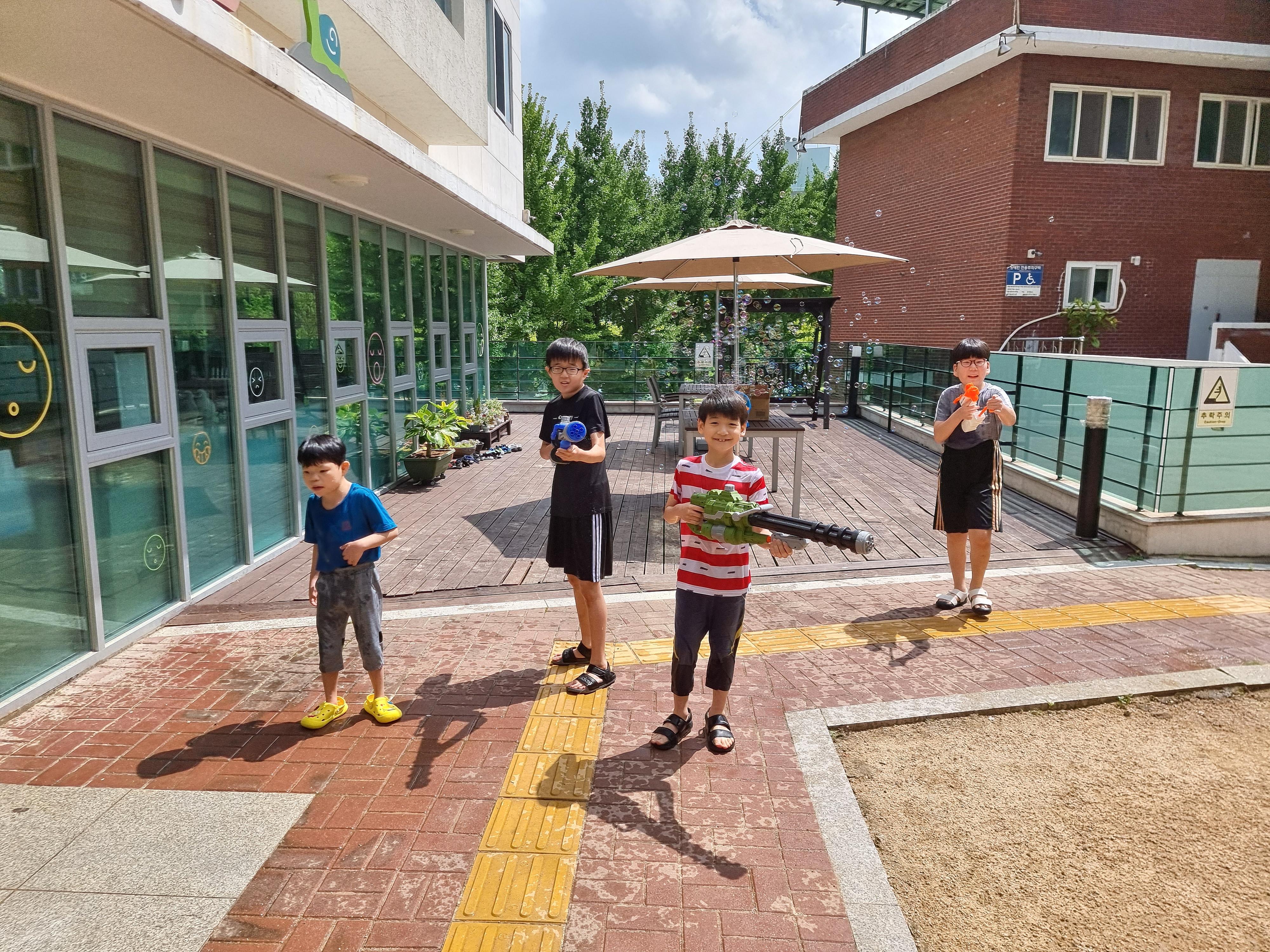 무더운 여름, 물총 놀이와 함께 BBQ파티가 열렸어요.