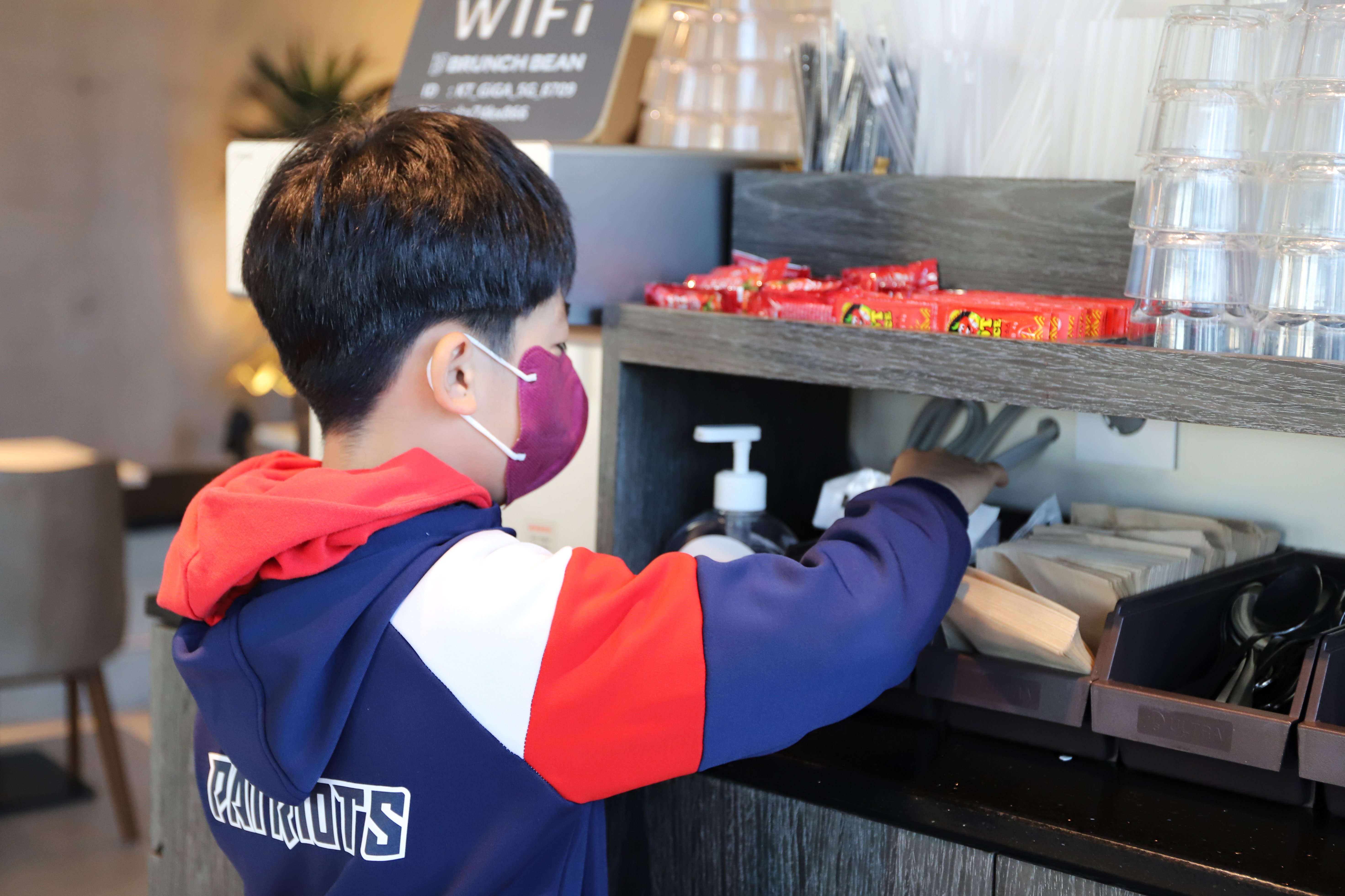 셀프서비스 코너에서 식기류와 냅킨, 수저도 척척 챙겨보았답니다.