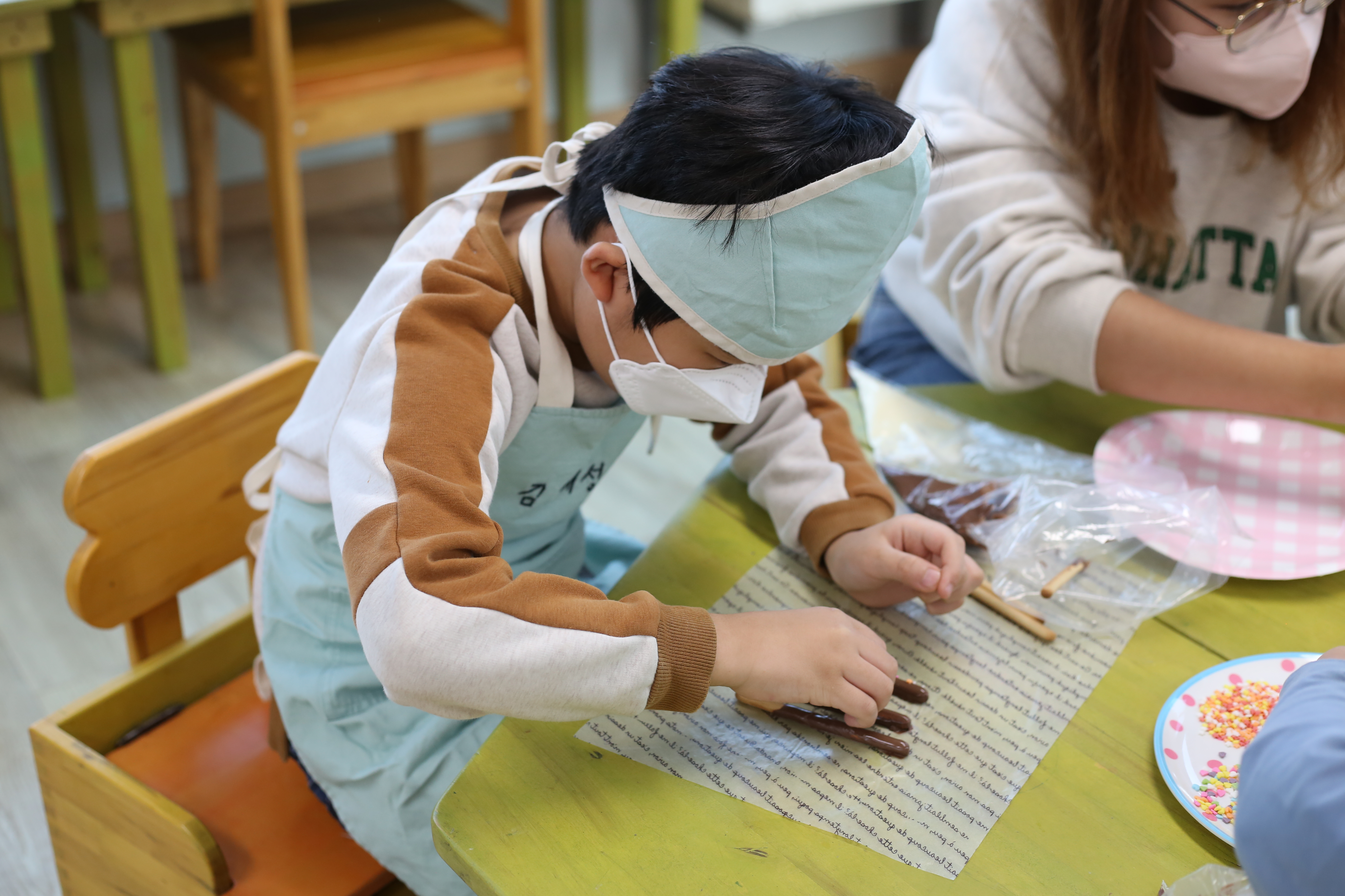 갖가지 스프링클과 다른 색의 초콜릿으로 예쁘게 장식하고
