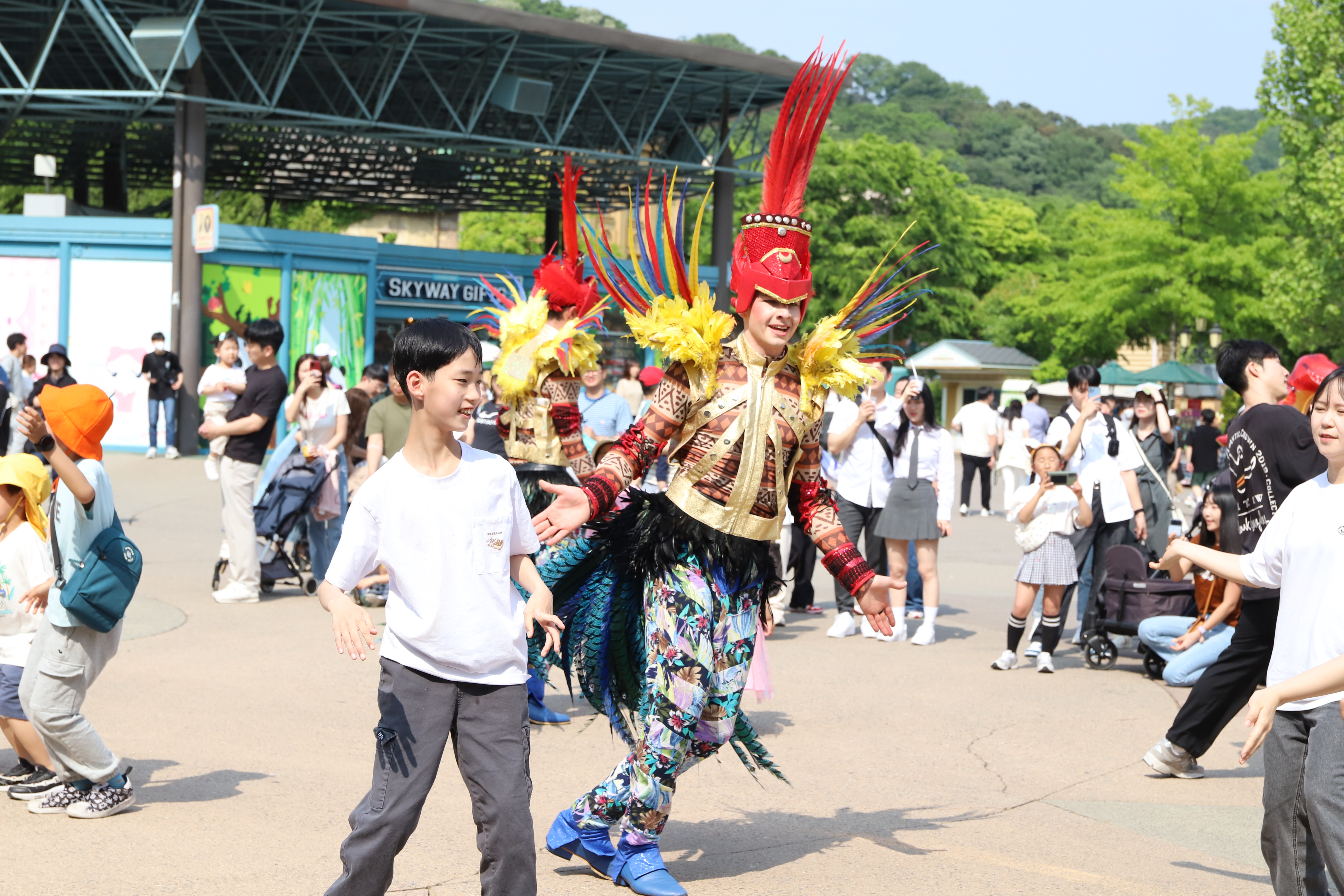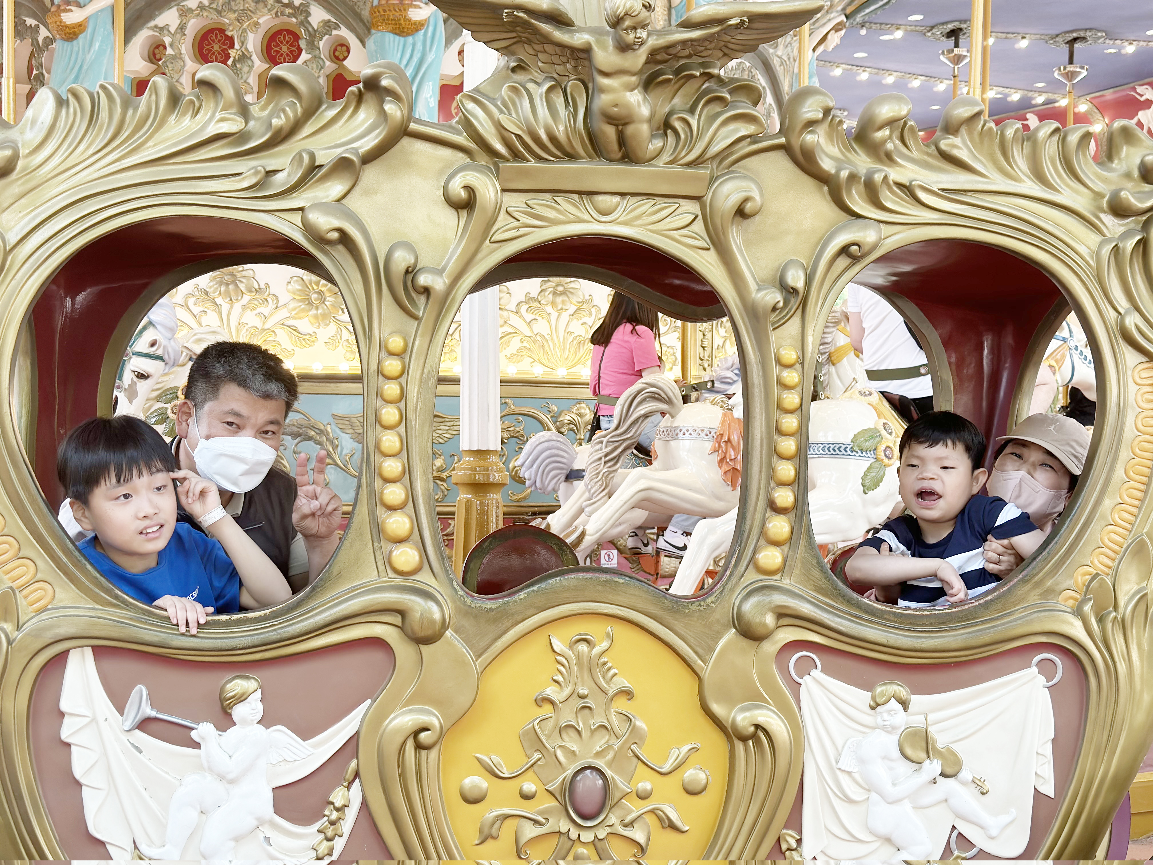 신나는 놀이기구도 타고 예쁜 꽃들과 멋진 퍼레이드도 구경했어요.