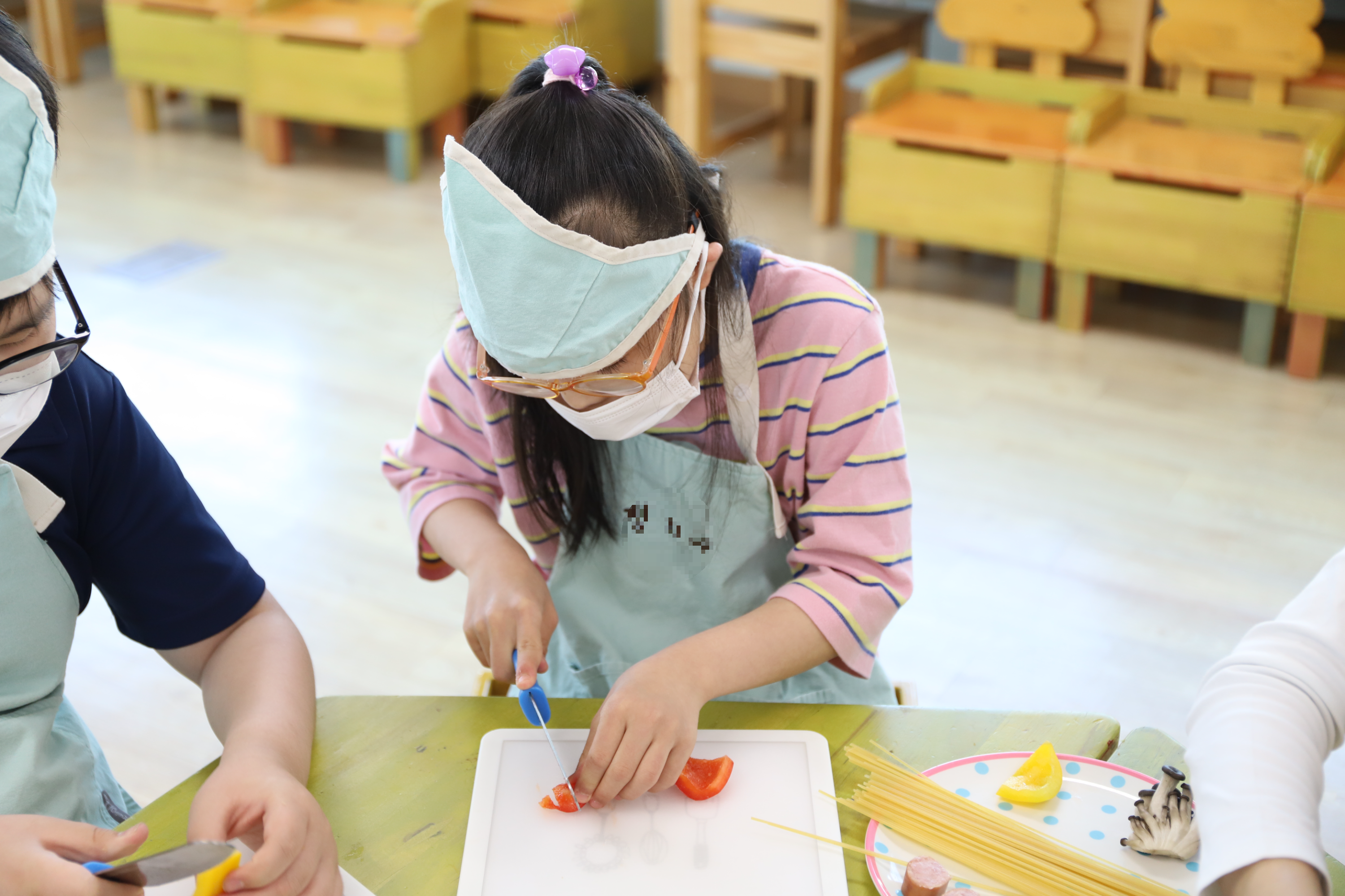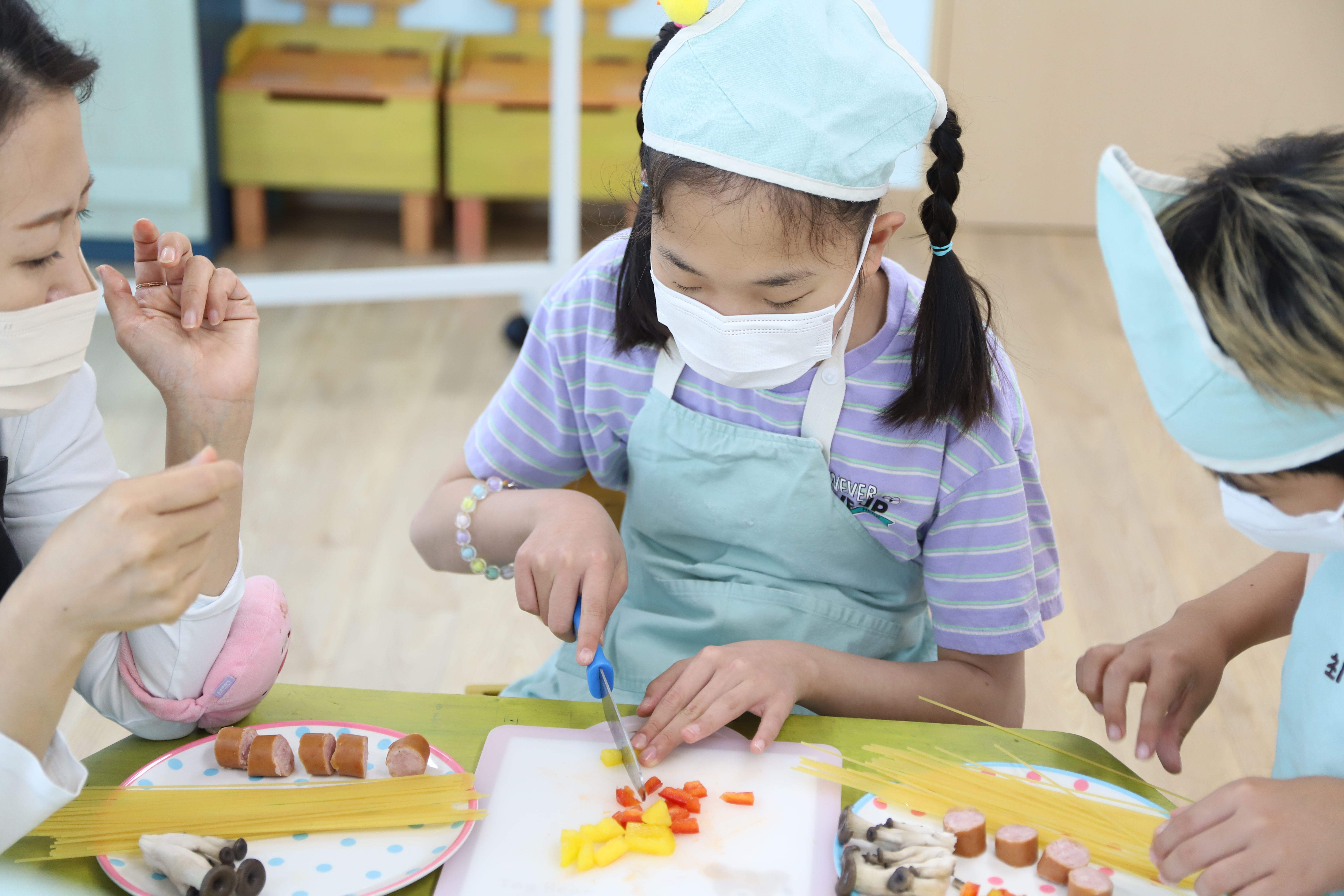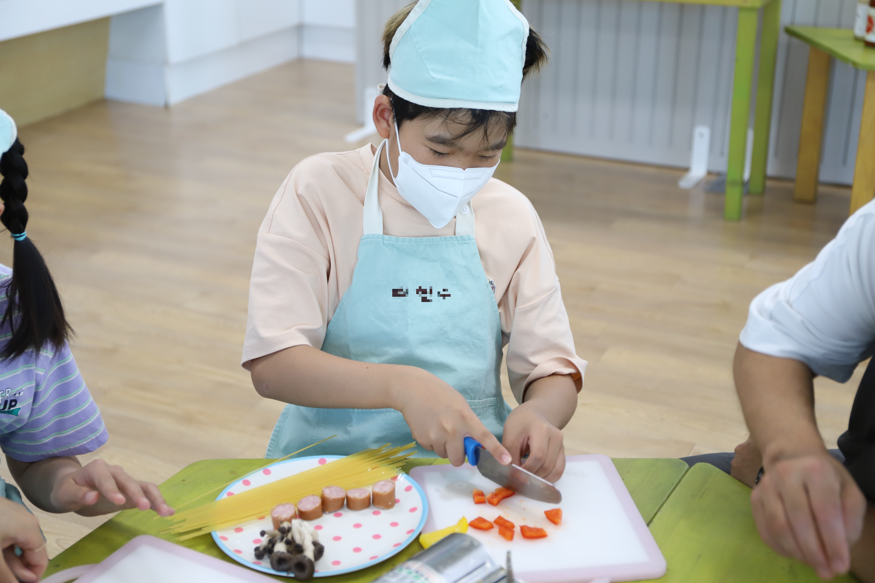 야채도 다듬고 소스와 함께 섞으니 스파게티가 뚝딱!