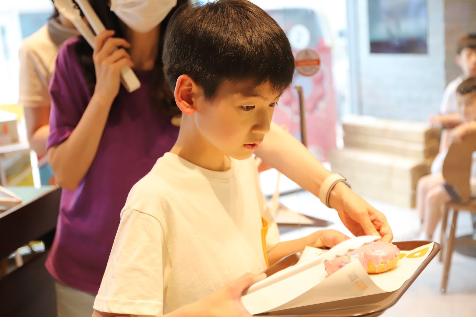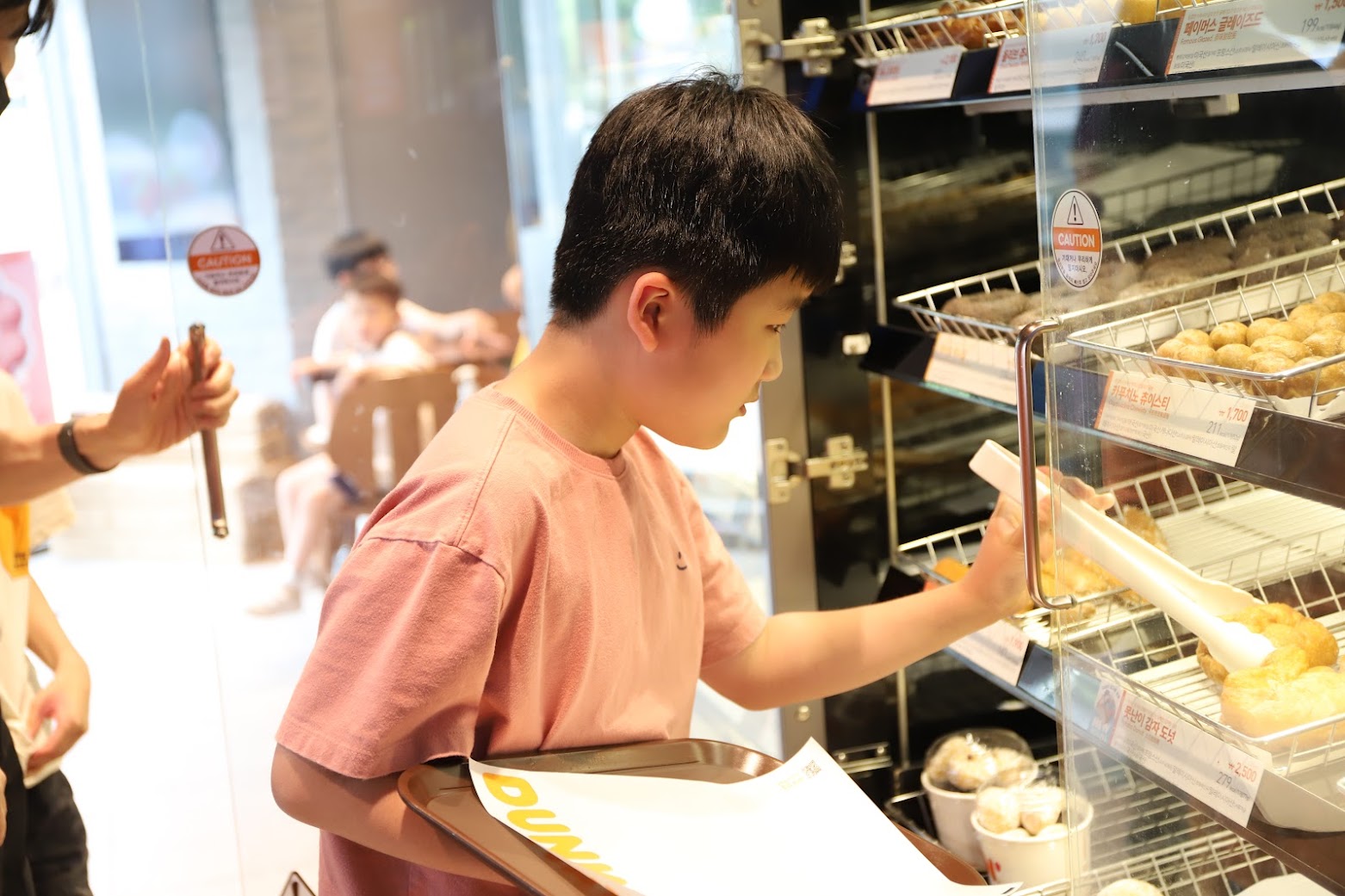 원하는 도너츠와 음료를 직접 골라 맛있게 먹었어요~
