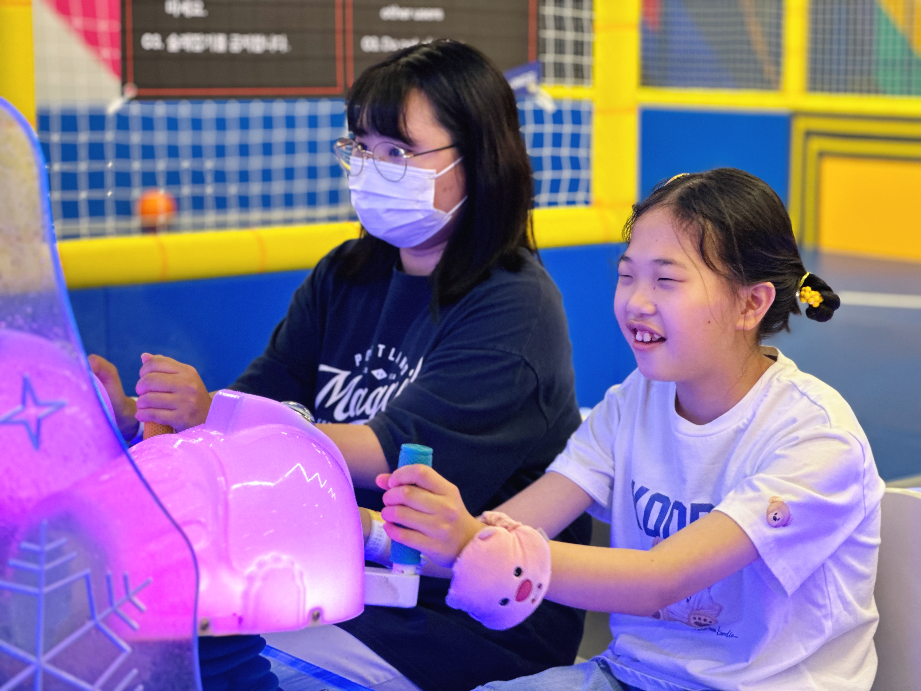 방방이에서 실컷 뛰어도 보고, 정글짐을 이용하여 몸을 움직여보고