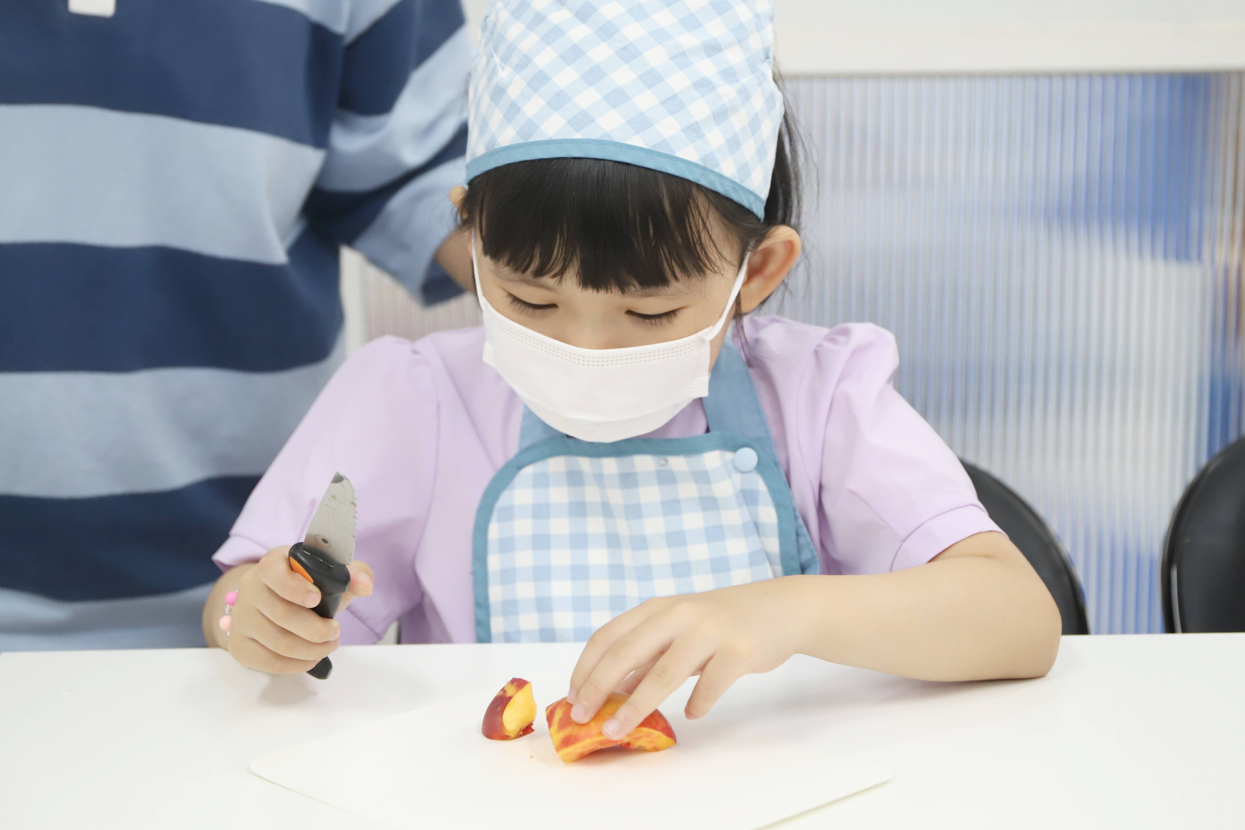 아이키친 사장님이 준비해오신 과일을 강아지칼로 직접 잘라보고
