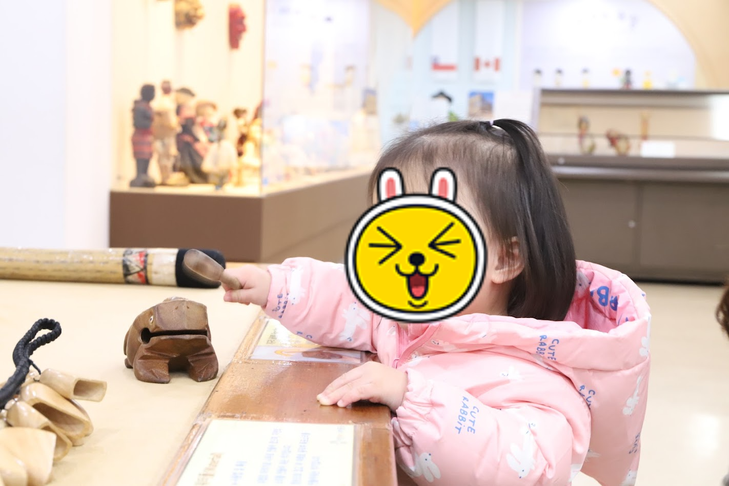 전시되어 있는 옛날 장난감과 가면들을 구경하고