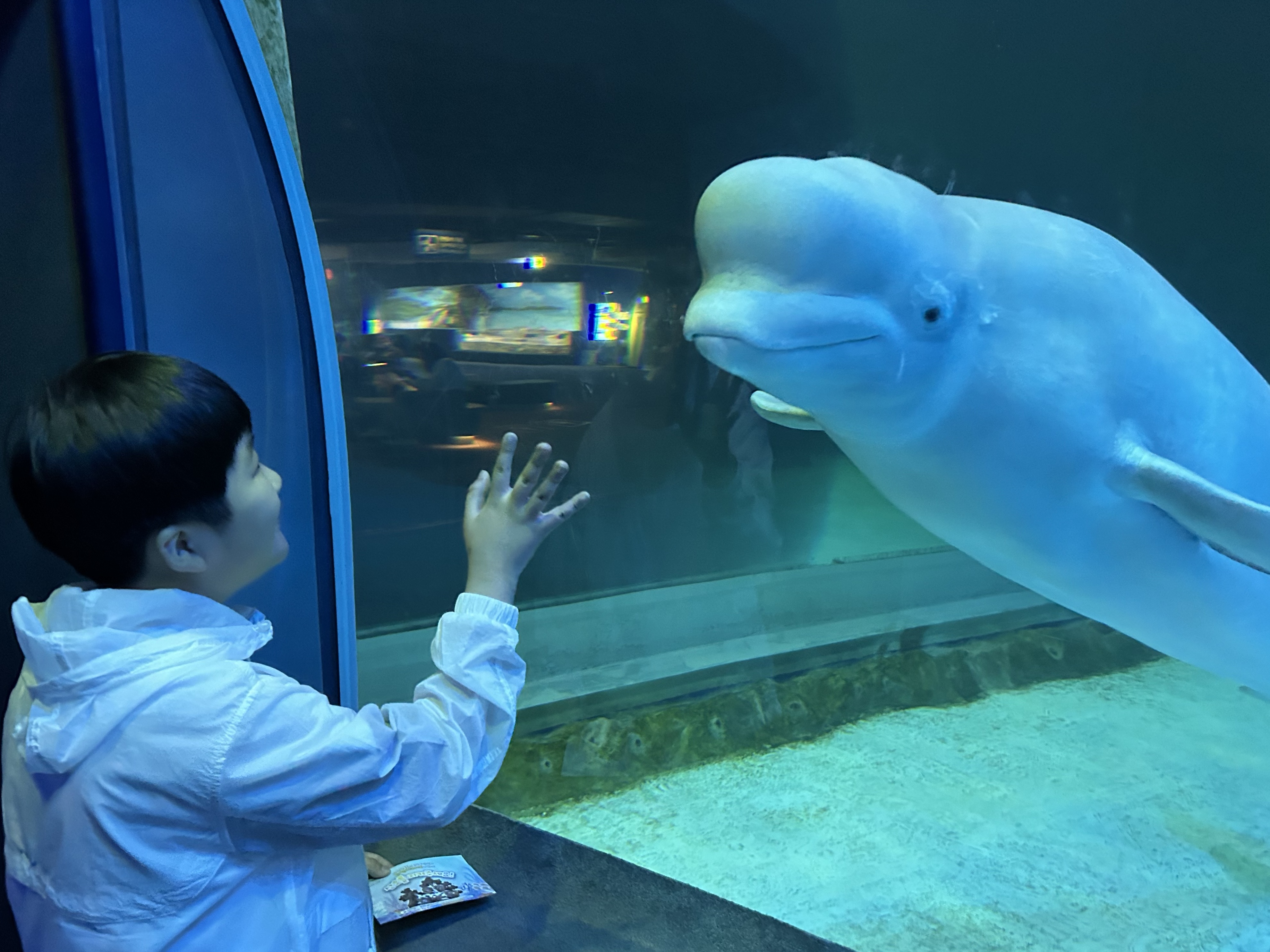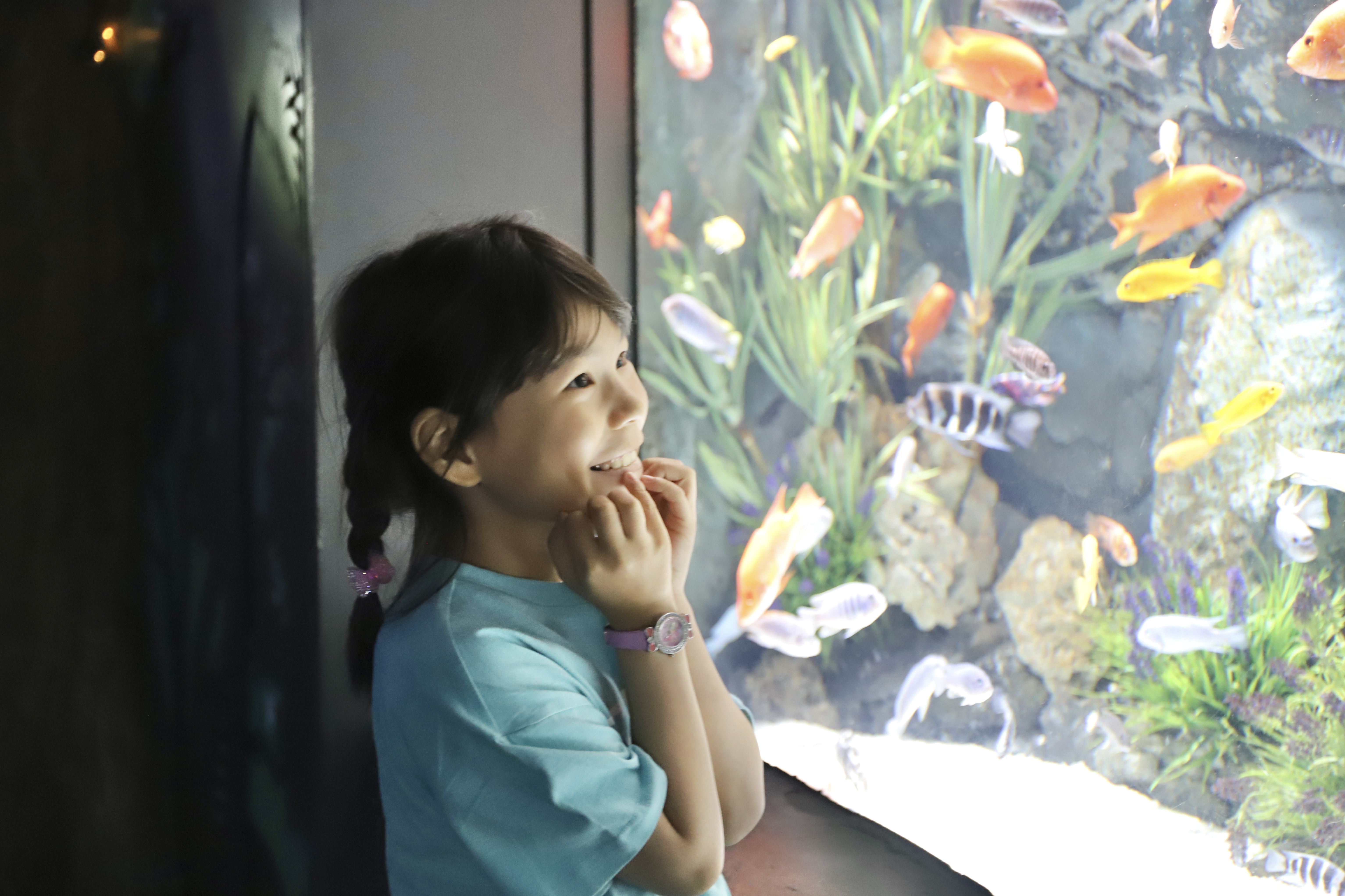 가장 기대하던 대형 아쿠아리움에서 물고기, 상어, 가오리 등의
