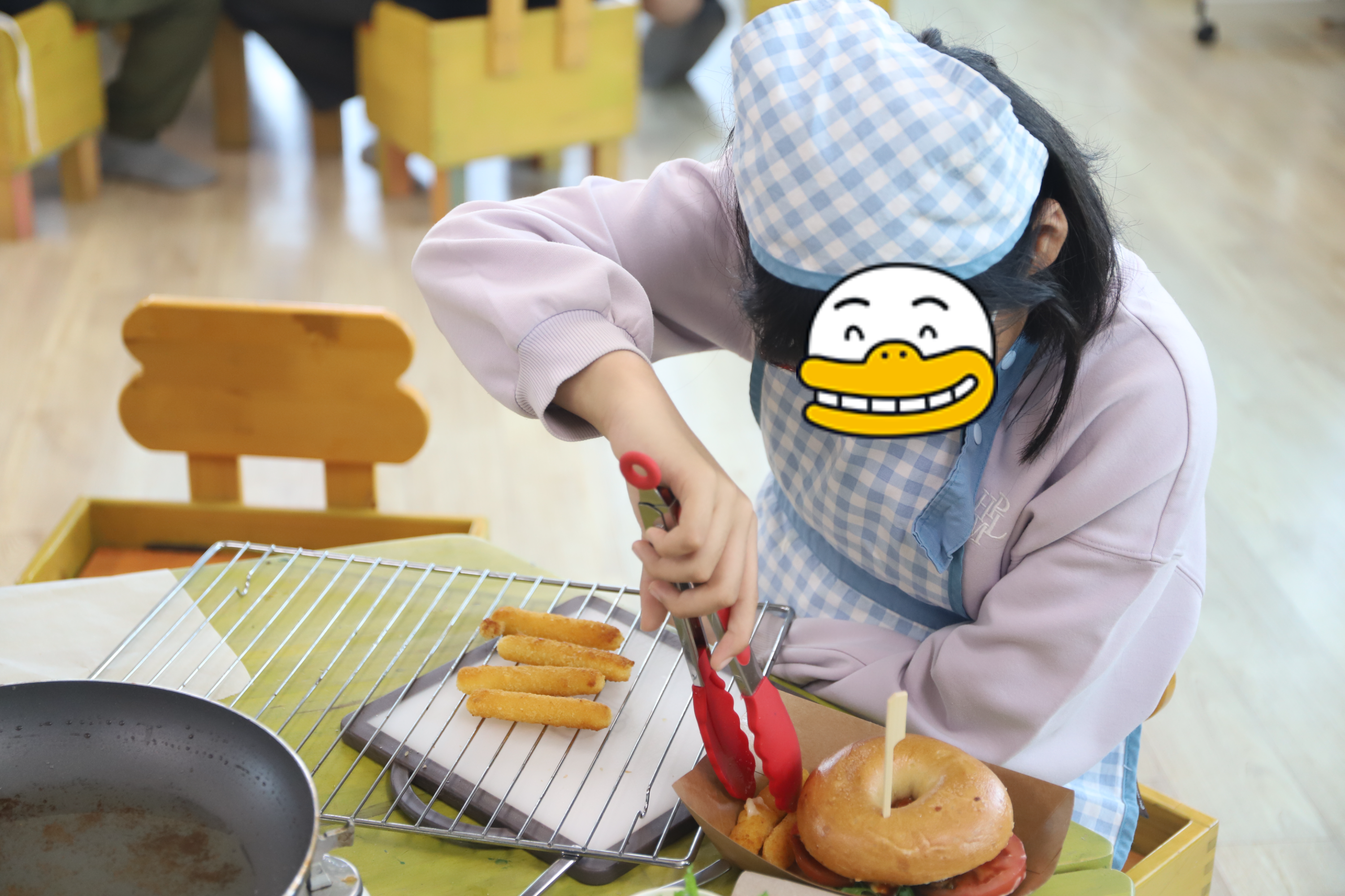 직접 베이글과 떡갈비를 구워보고, 예쁘게 베이글 위에 쌓아