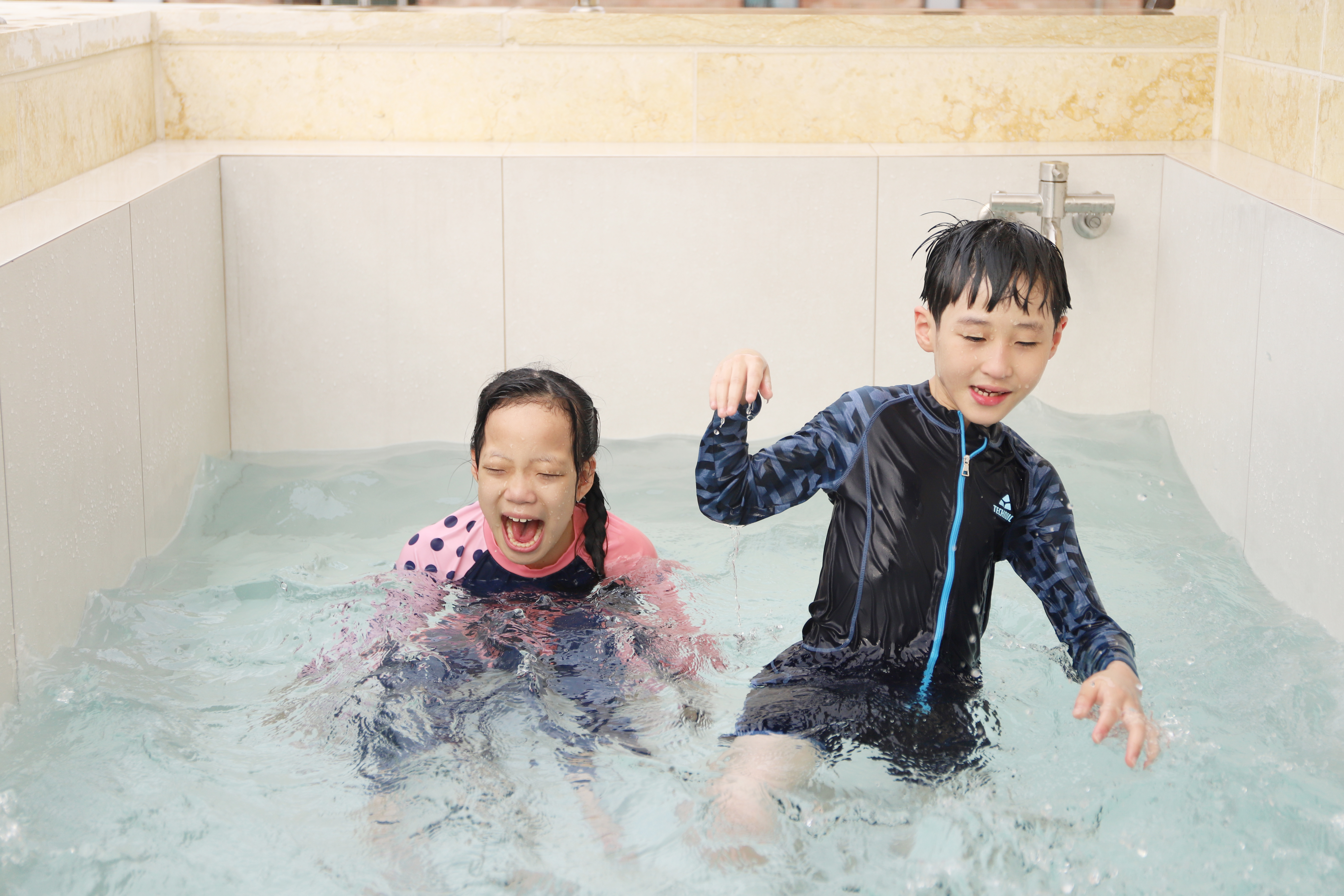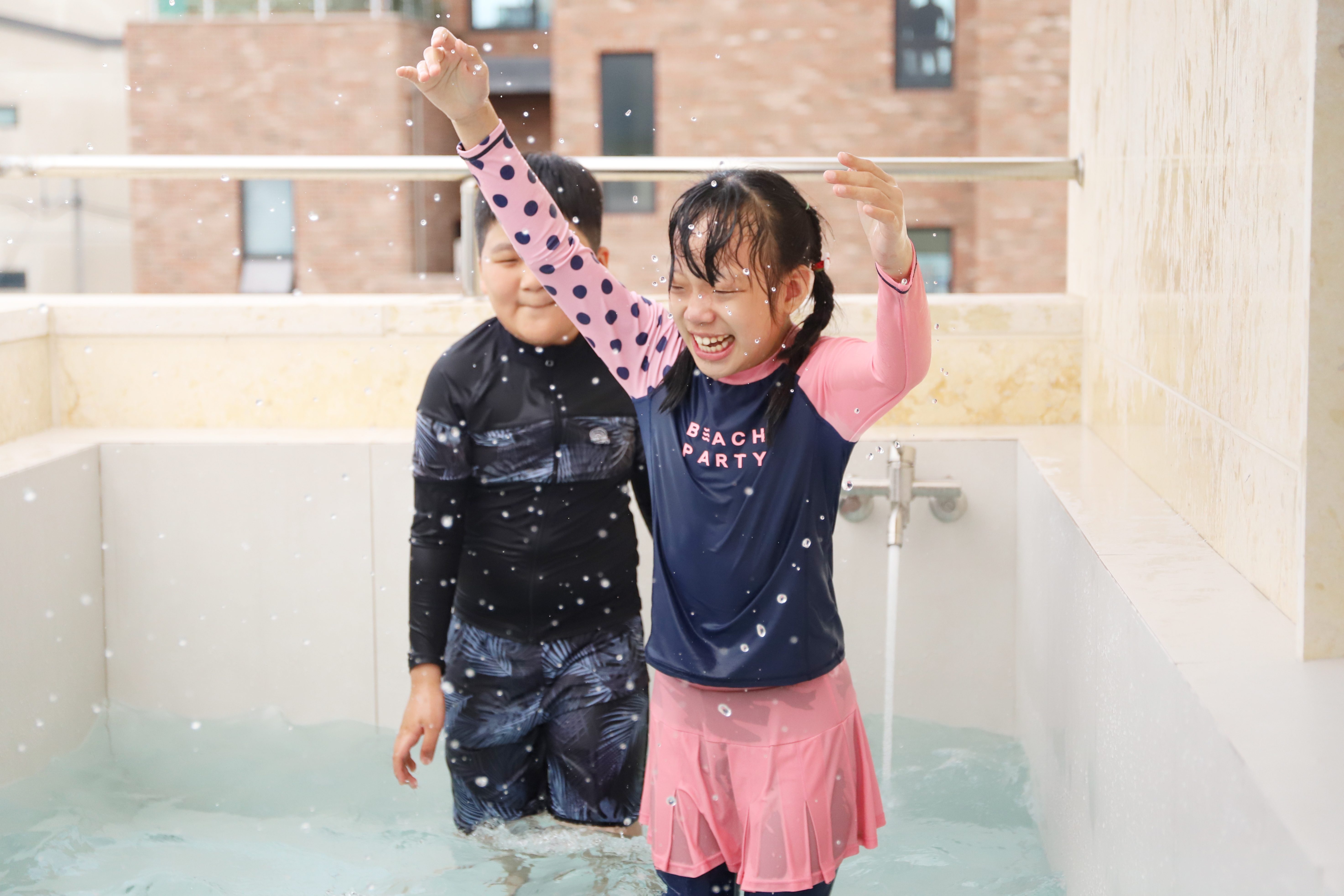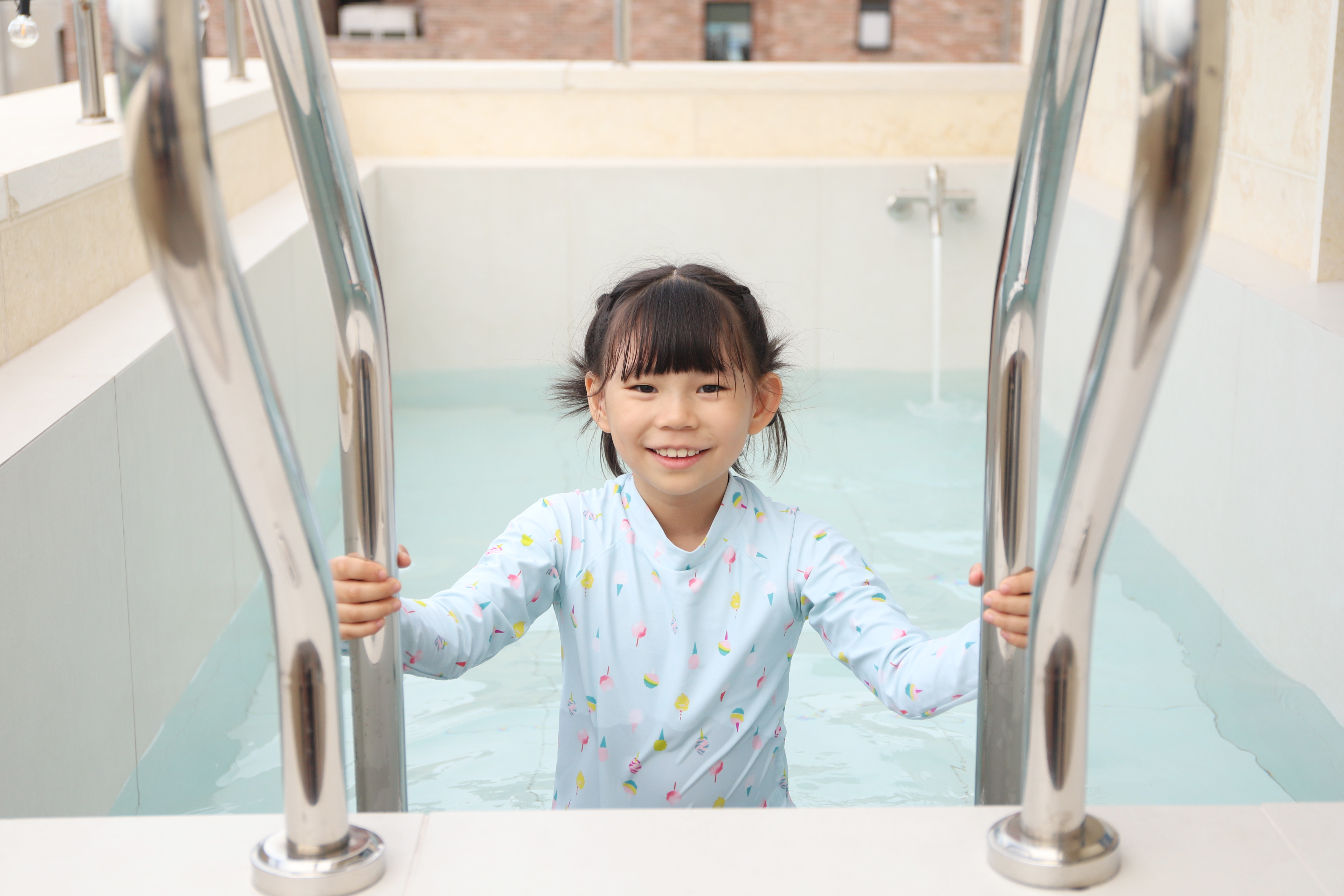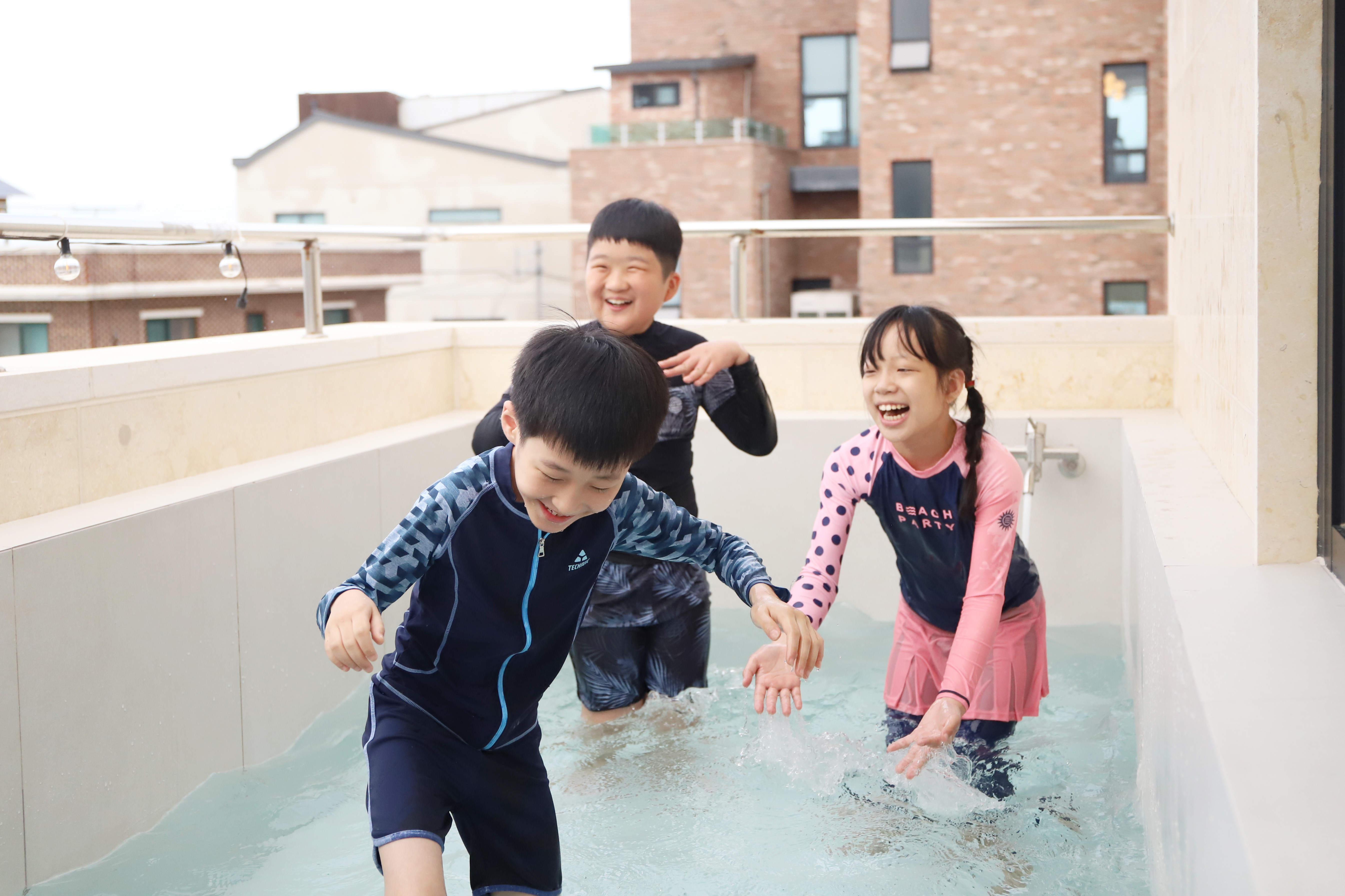 숙소의 작은 수영장에서 물놀이도 첨벙~