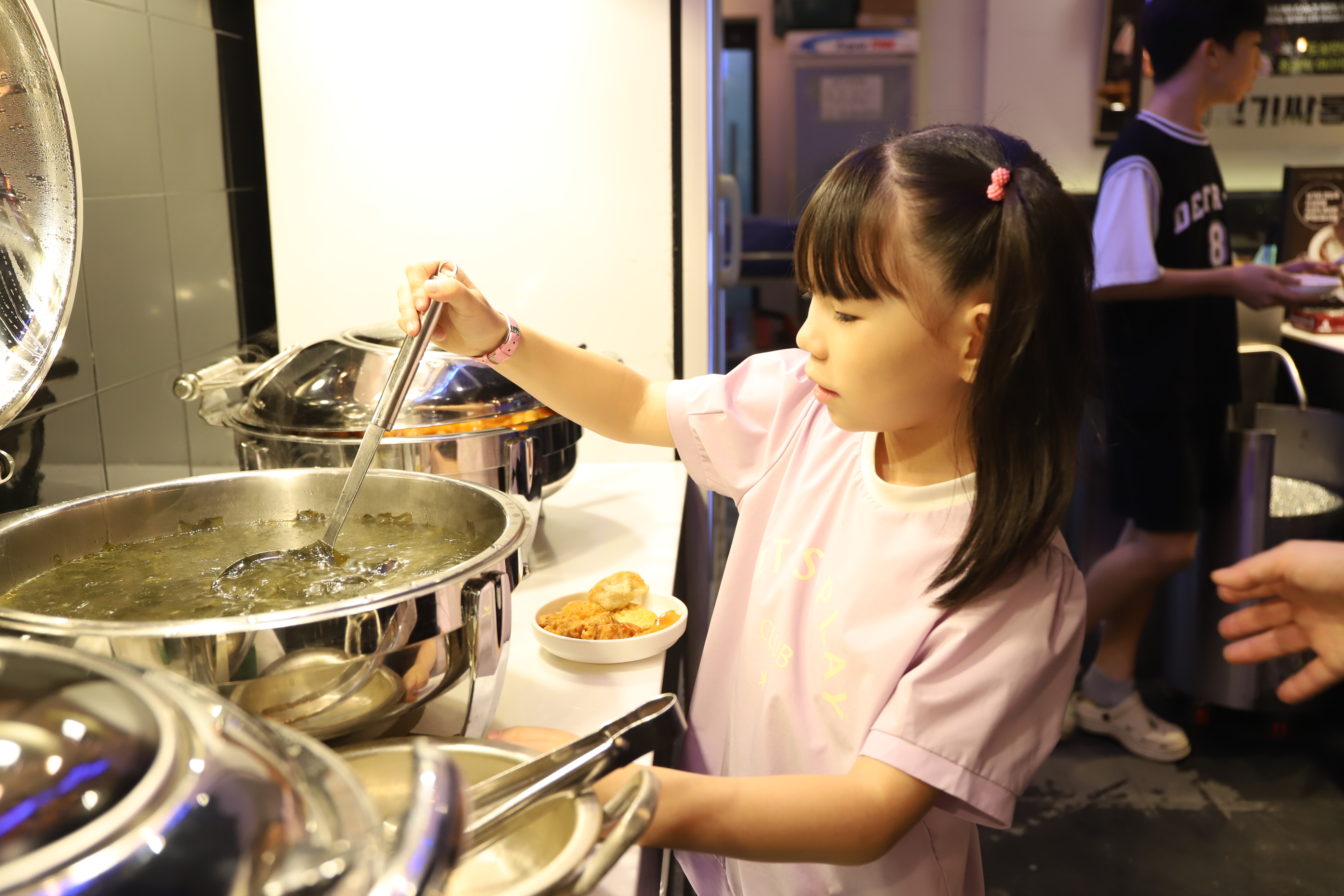 저녁을 먹기 위해 다양한 메뉴를 직접 담아보고,