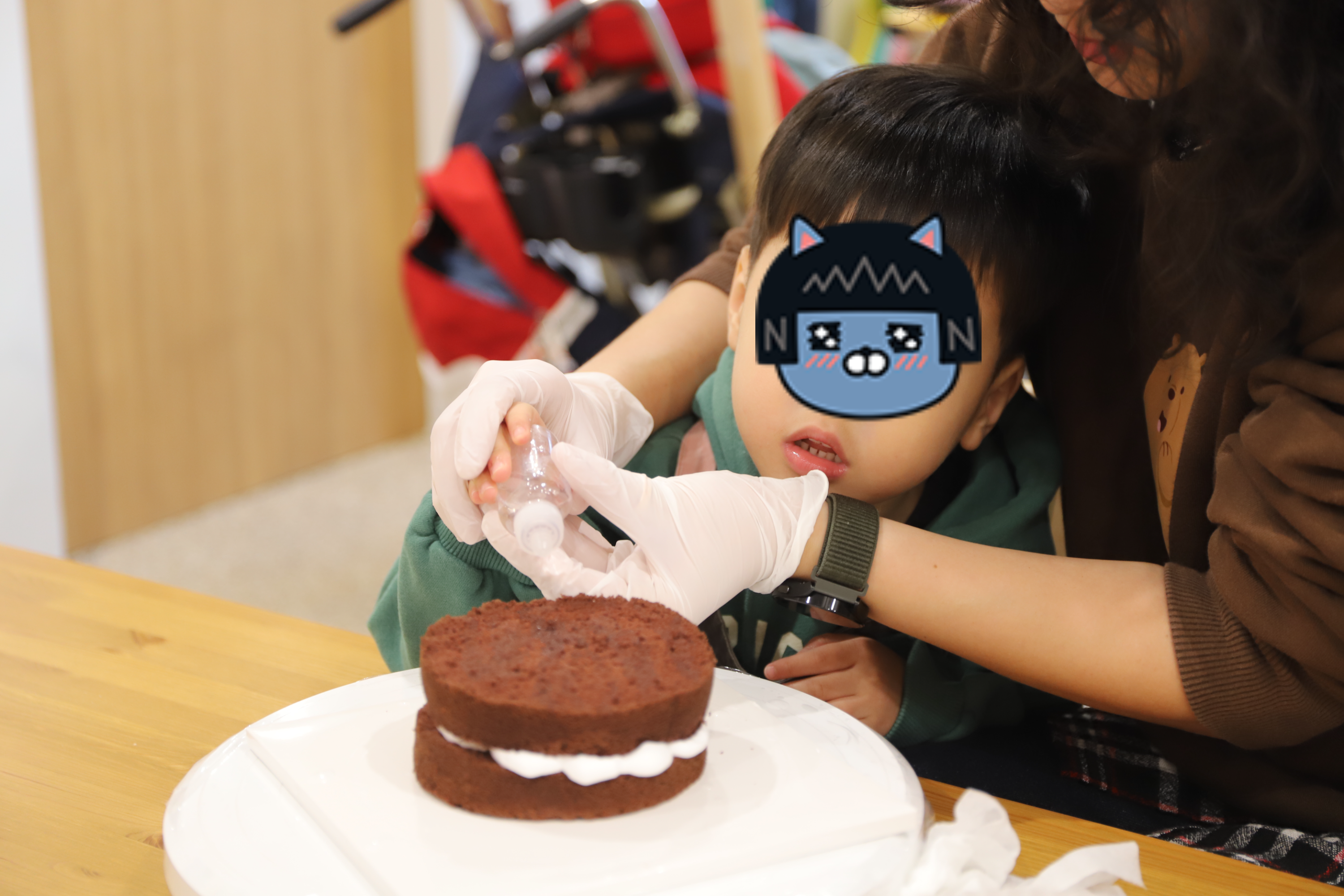 초코시트 위에 생크림을 짜보고 예쁘게 모양을 잡은 뒤