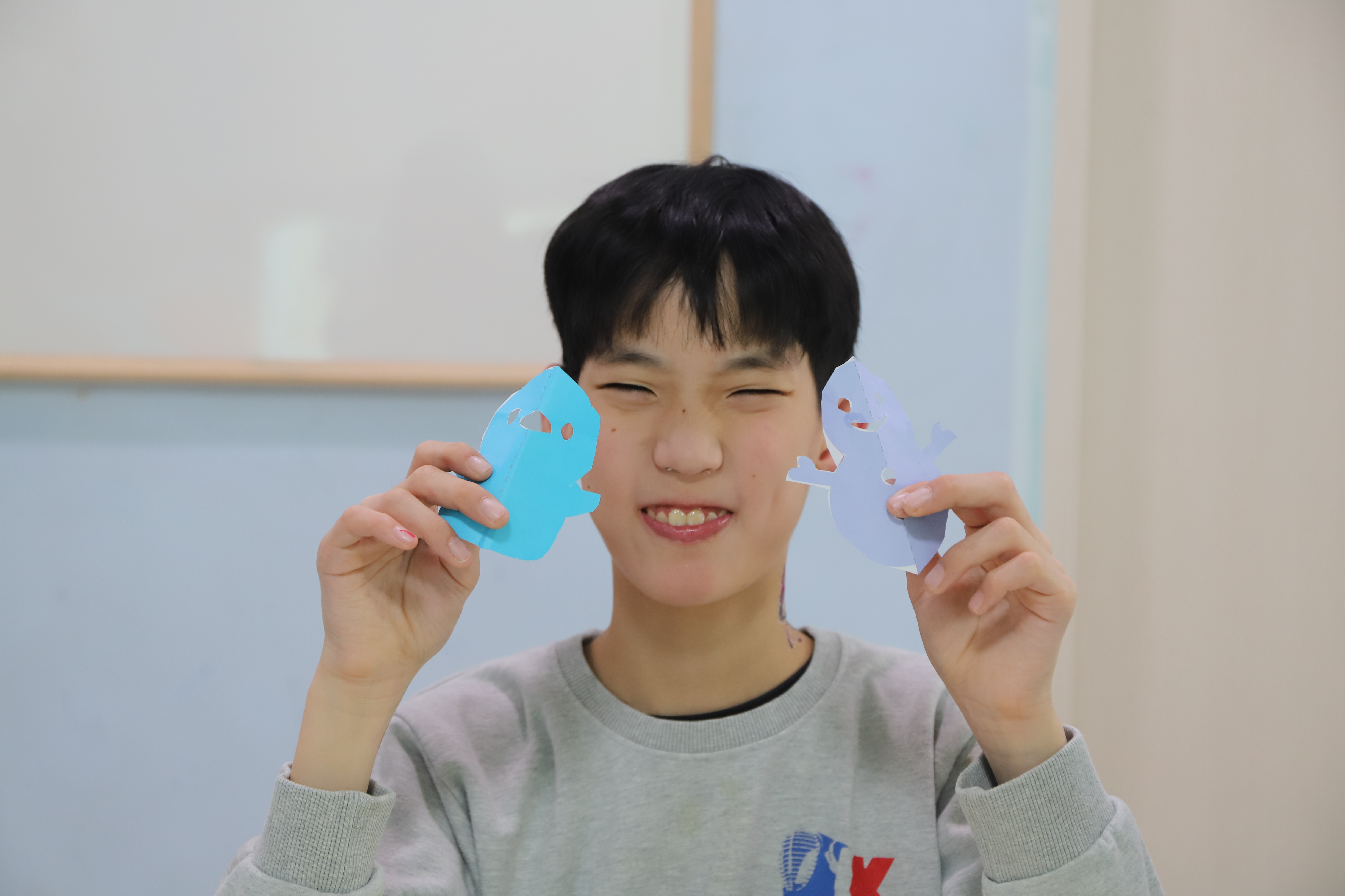 색종이의 반을 접고 오려 예쁜 모양을 만들어보았습니다~