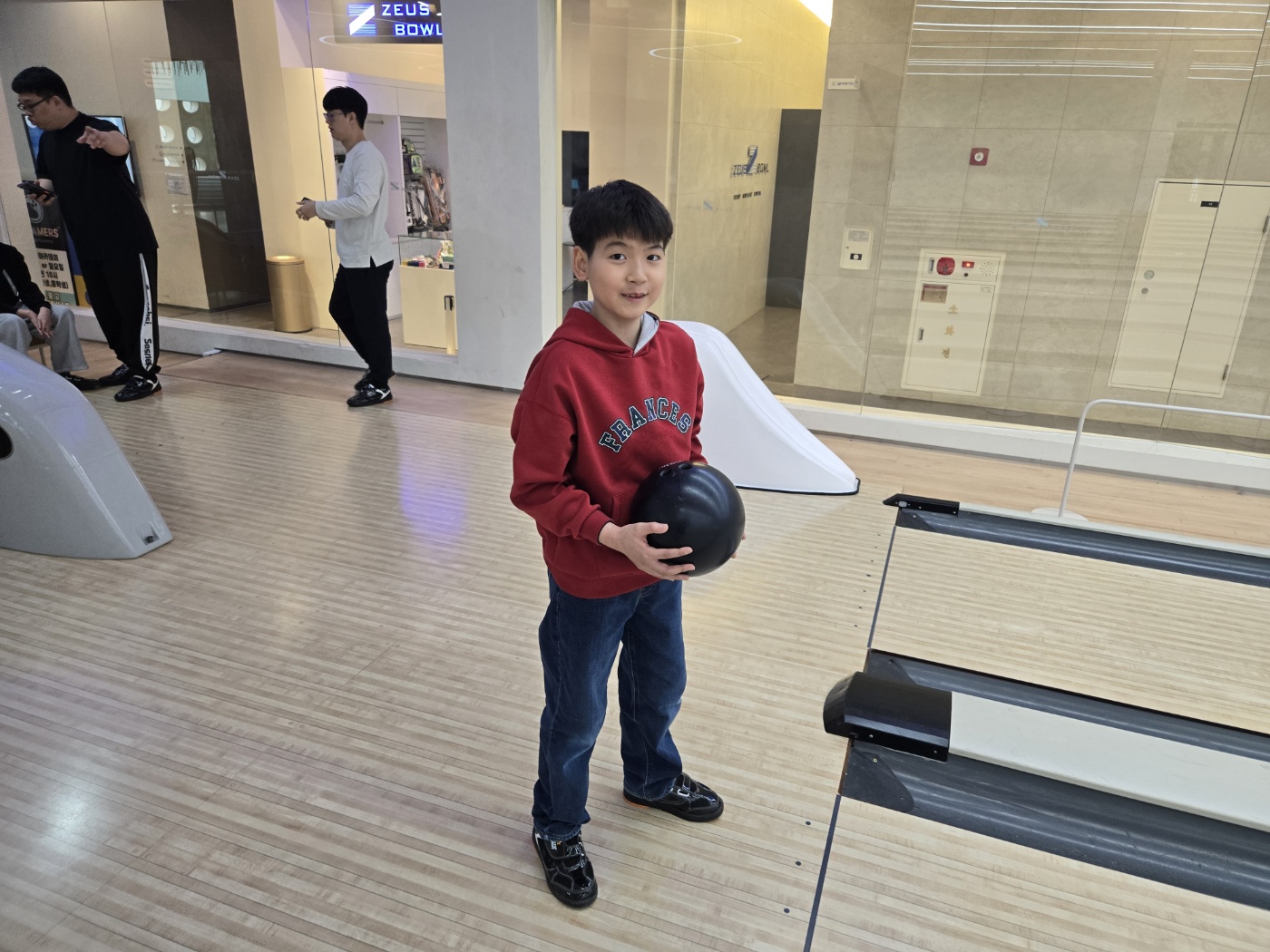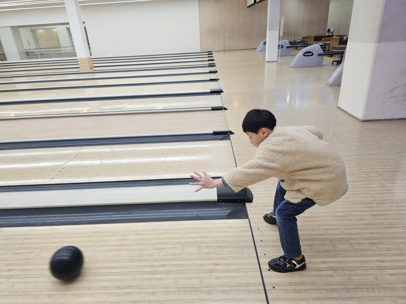 처음으로 볼링장에 방문한 우리 친구들.