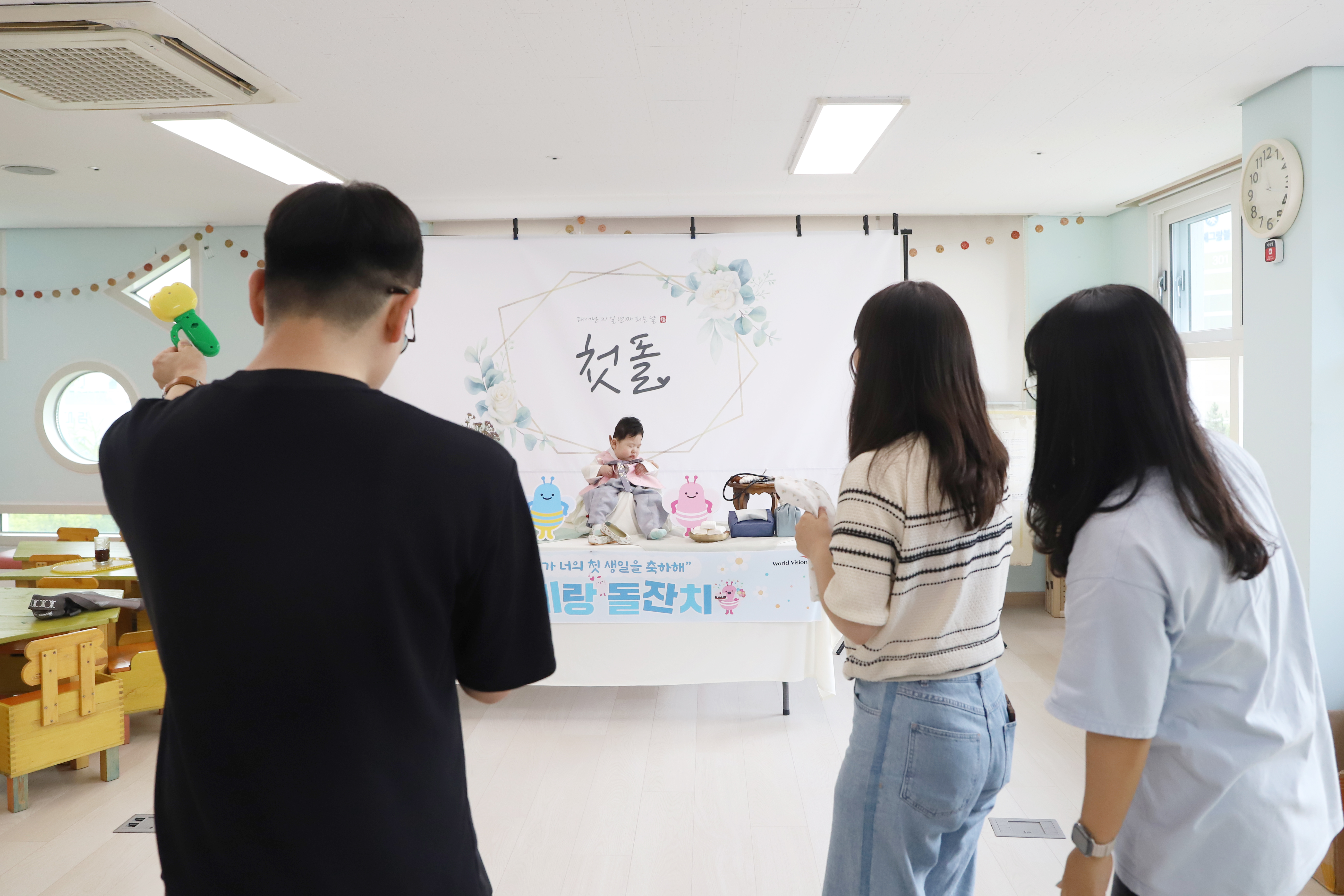 월드비젼&우리금융재단의 지원으로 첫 생일을 맞은 아가의 돌사진 촬영이 진행되었어요.