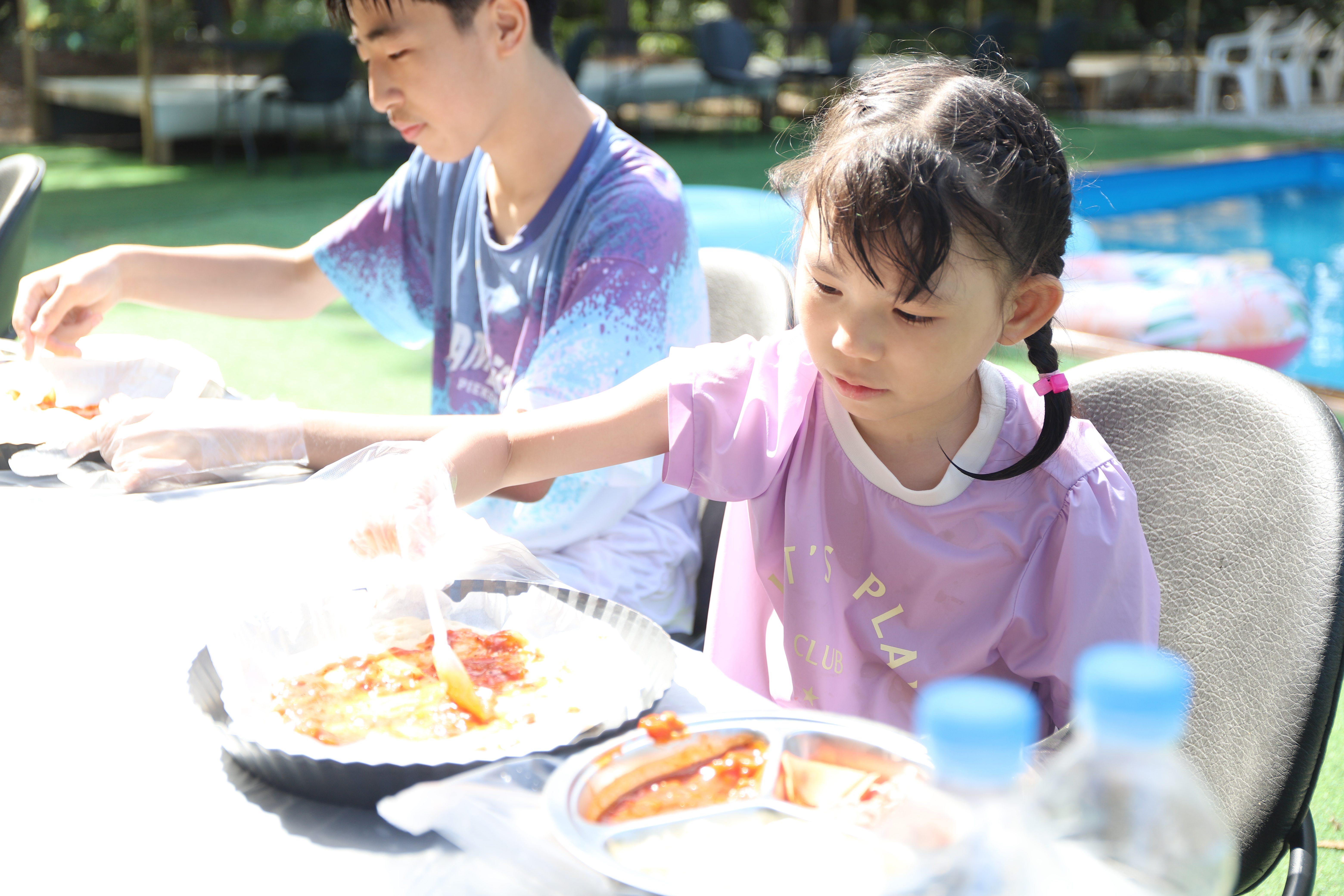 맛있는 바베큐와 직접 만든 피자를 먹었답니다.