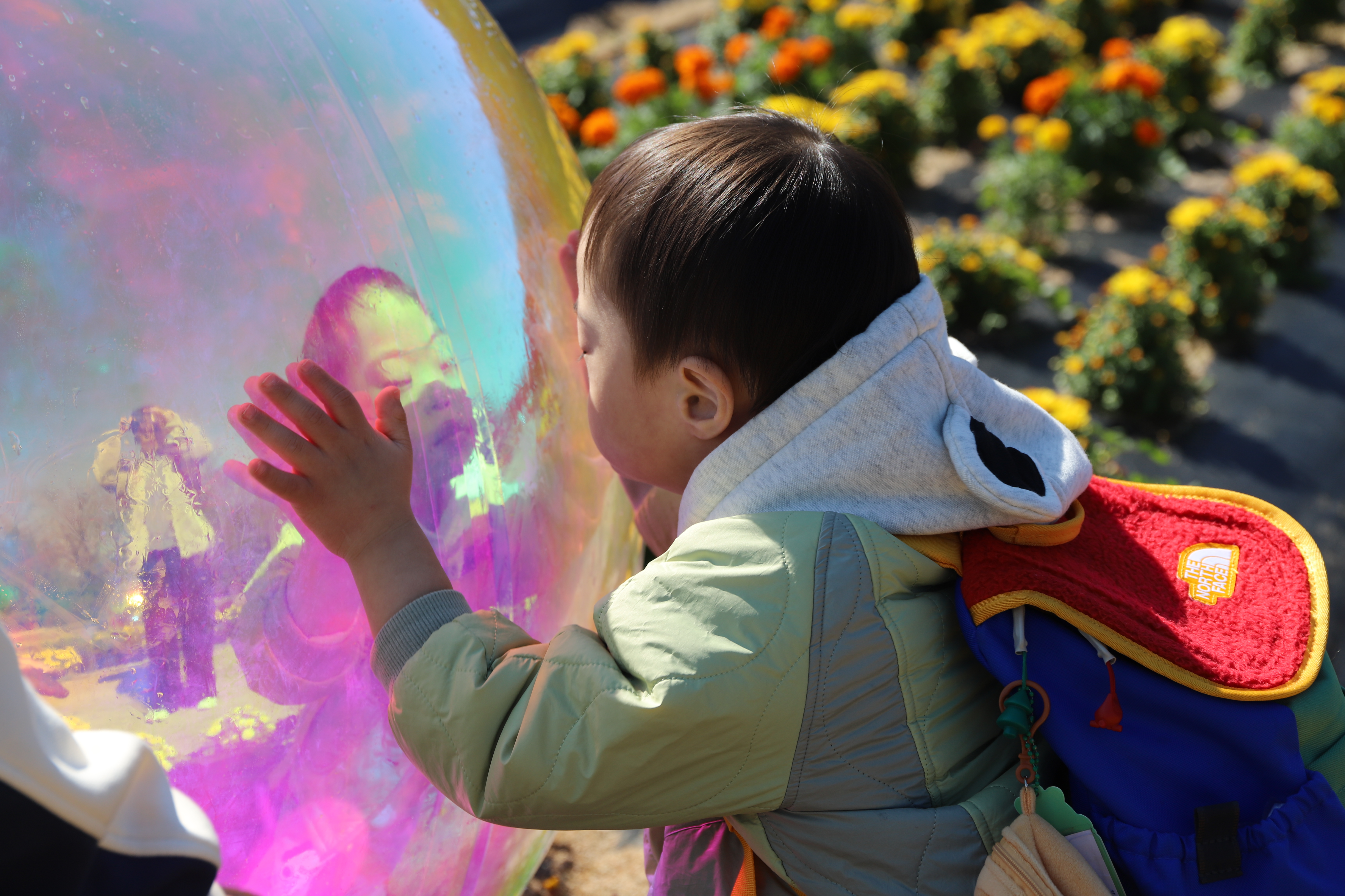 예쁜 꽃들이 활짝 펴있어서 함께 사진도 찍고