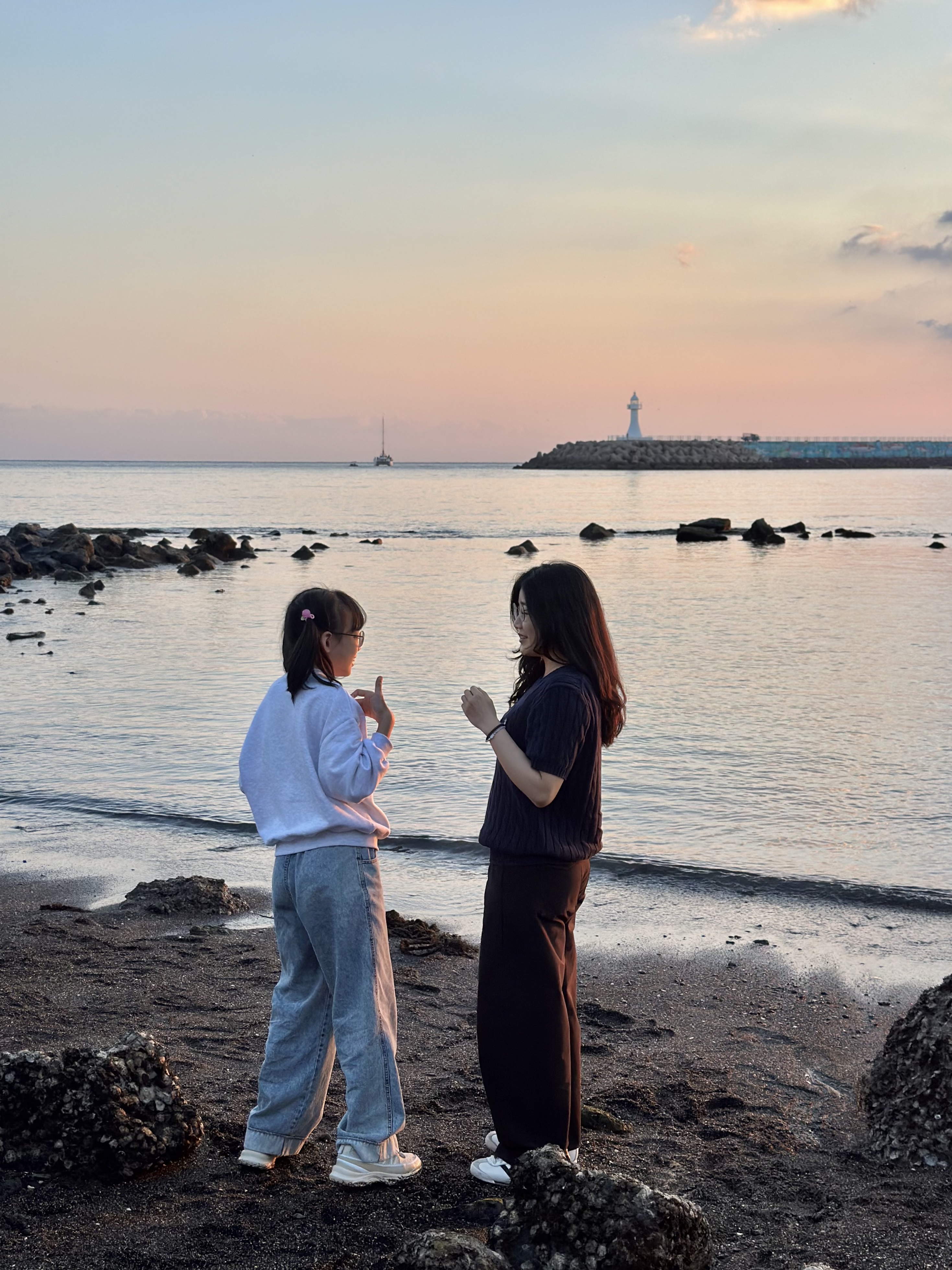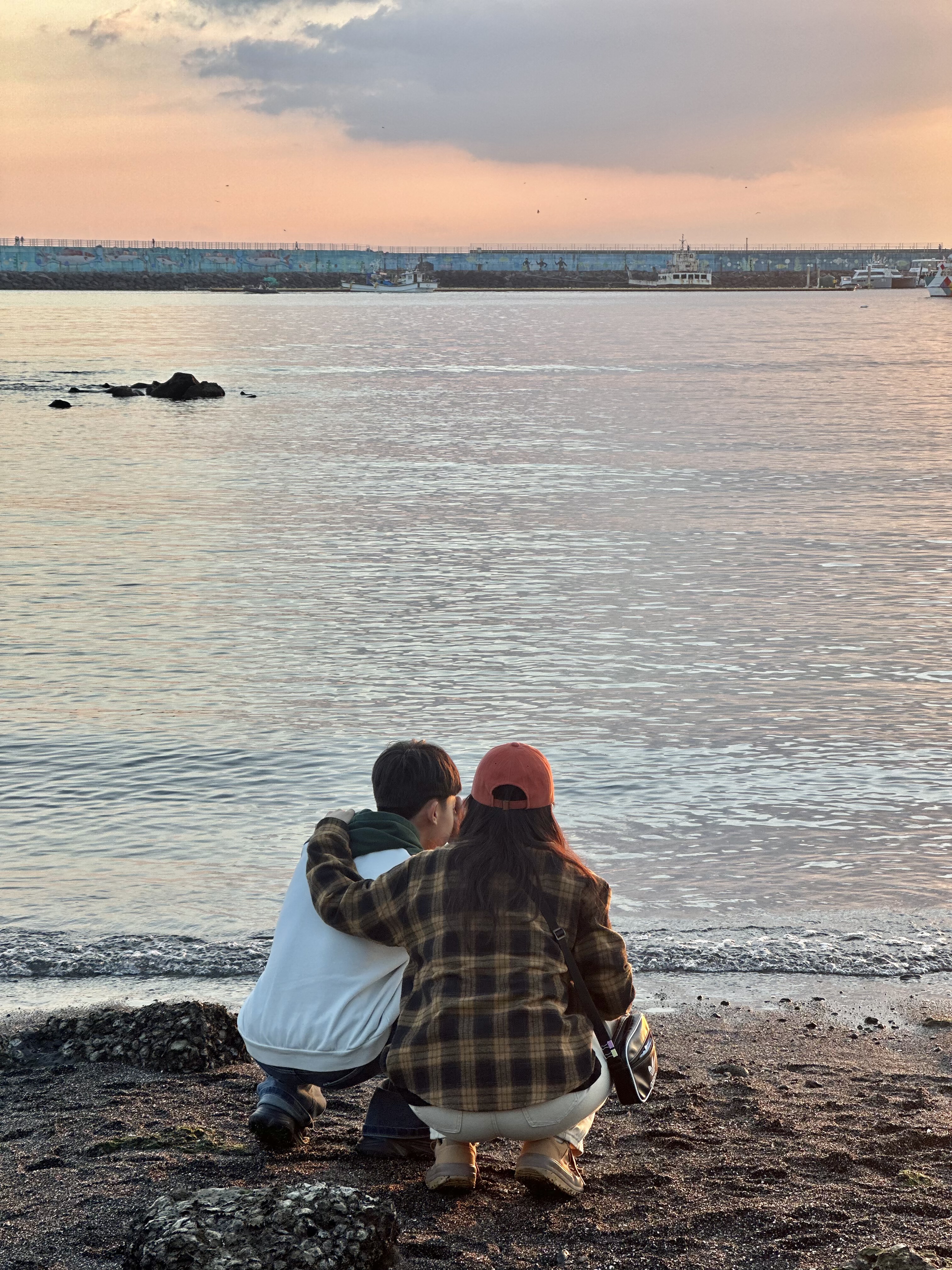 우리만의 바닷가에서 멋진 노을도 감상했어요.