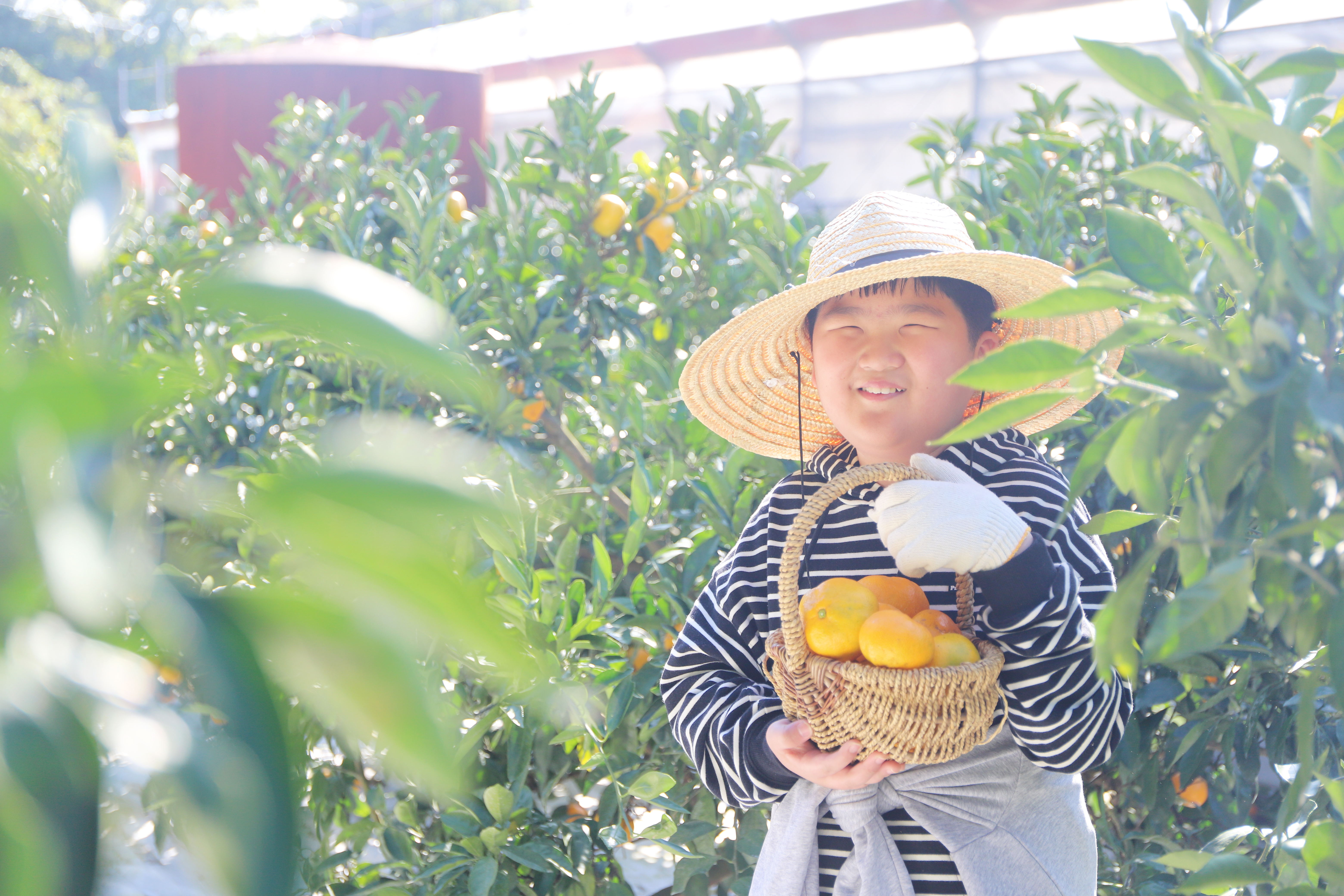 귀여운 모자를 쓰고 감귤도 잔뜩 따보고