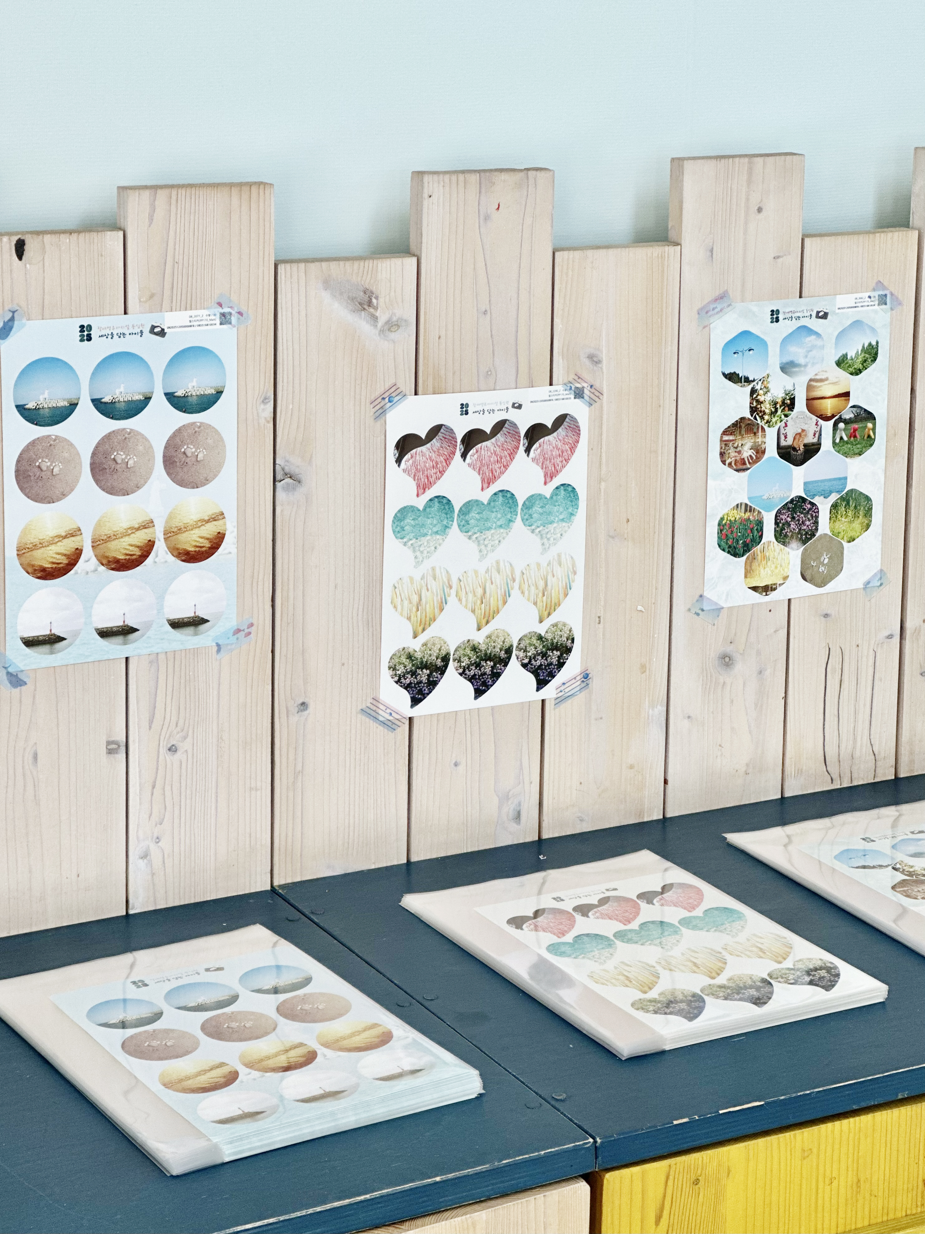 어린이작가들의 대표 사진 16점과, 서브사진들을 다양한 방식으로 전시했답니다.