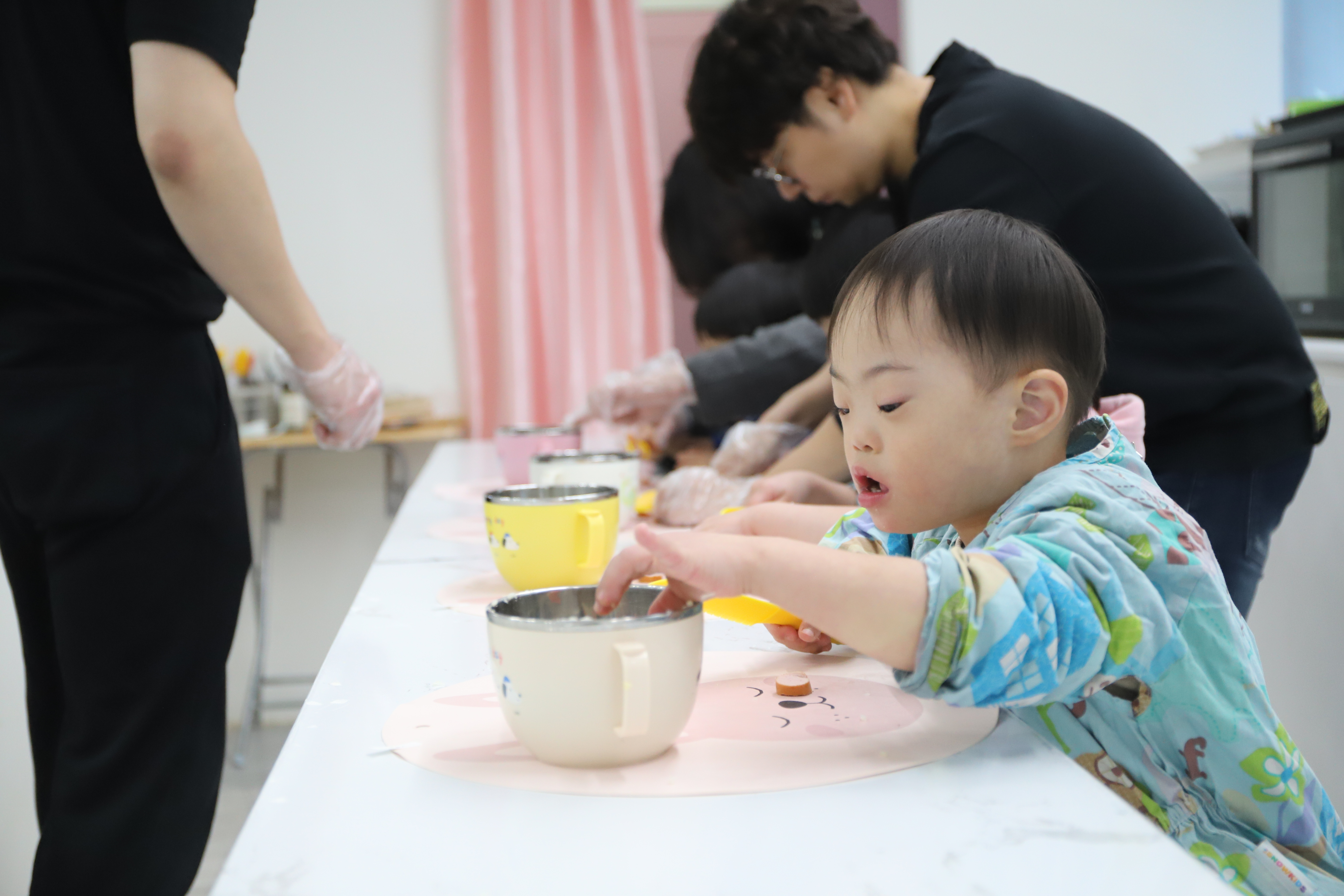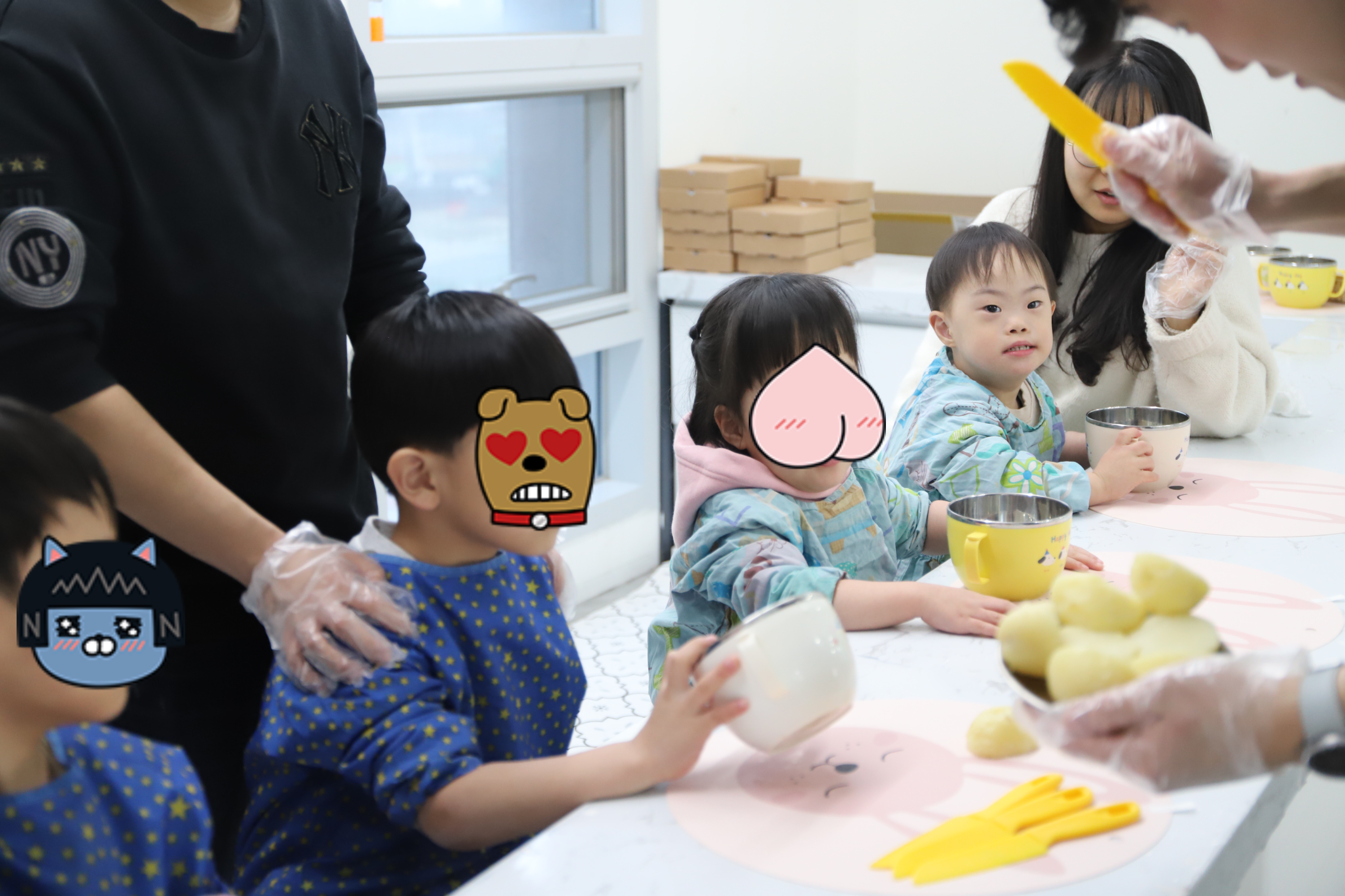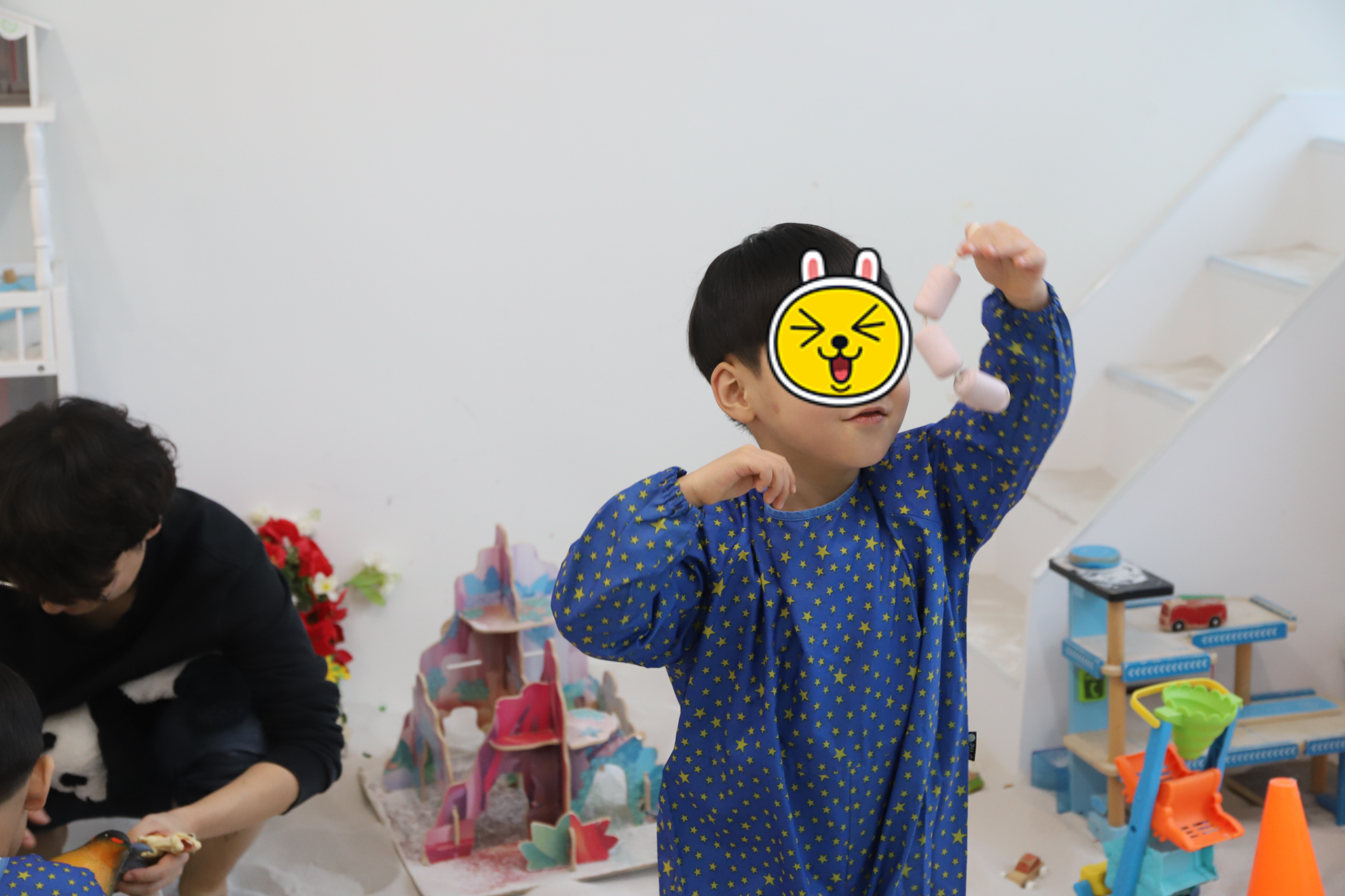 선생님의 설명을 듣고 열심히 따라하는 꼬맹이들
