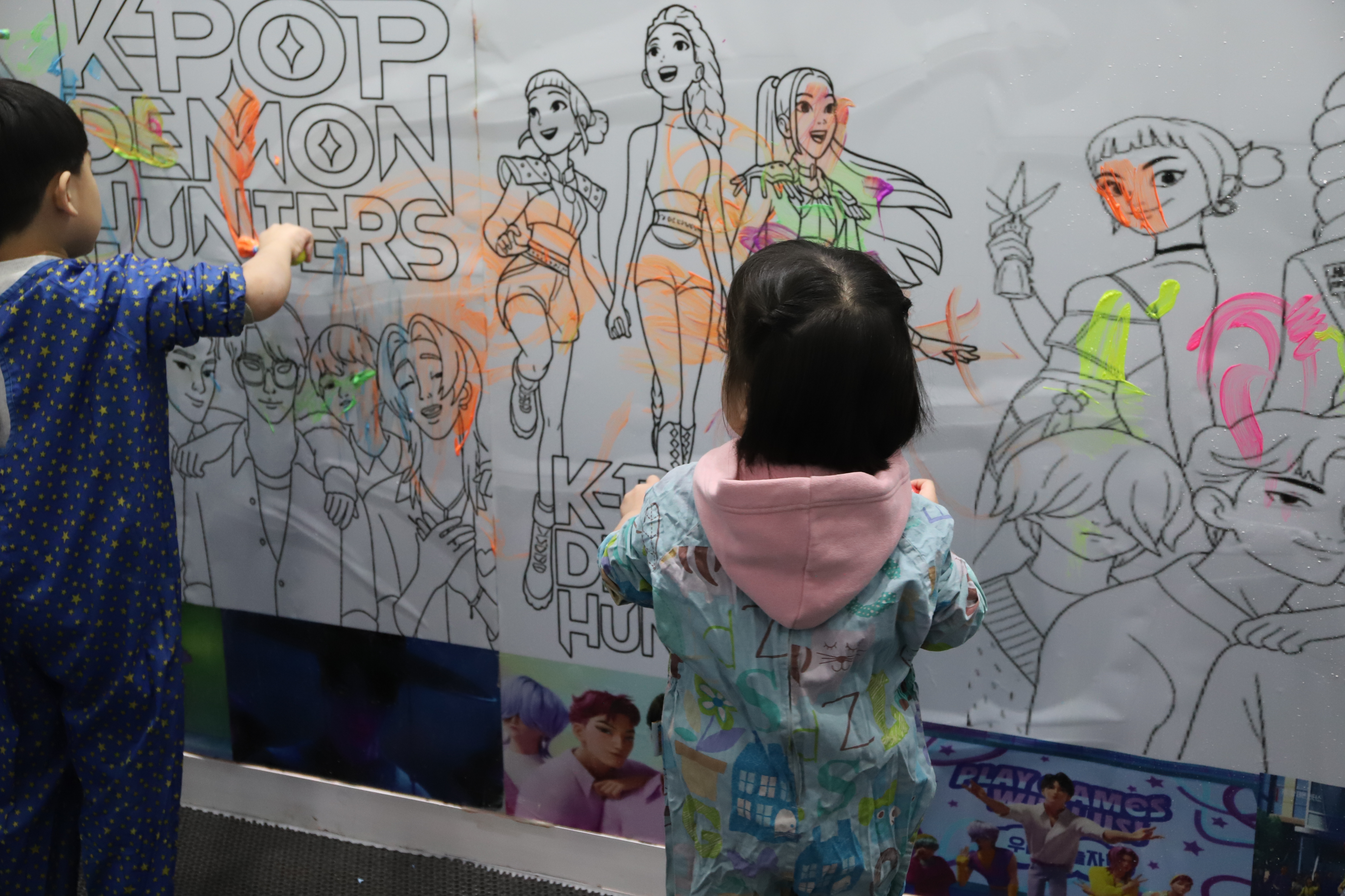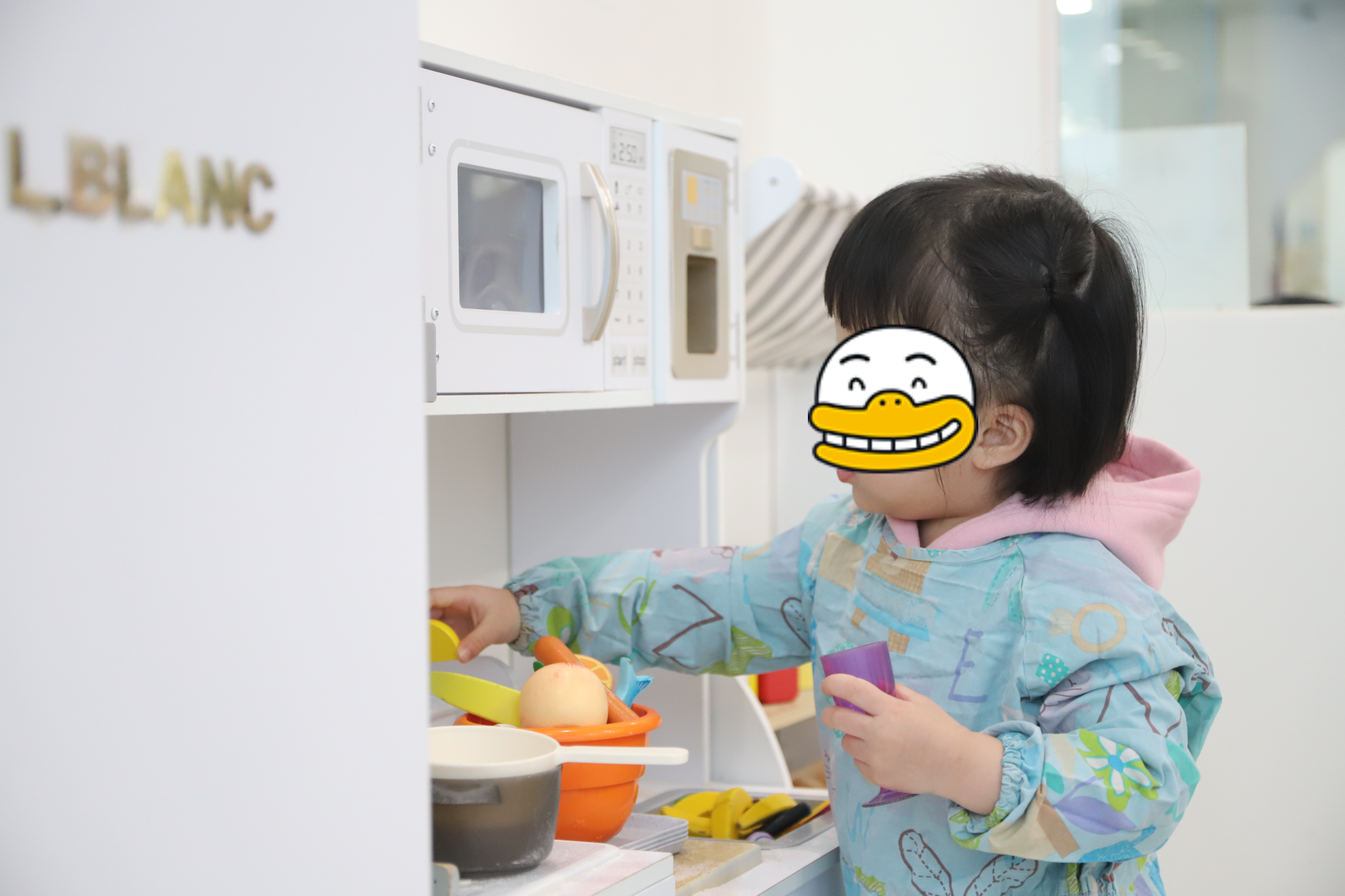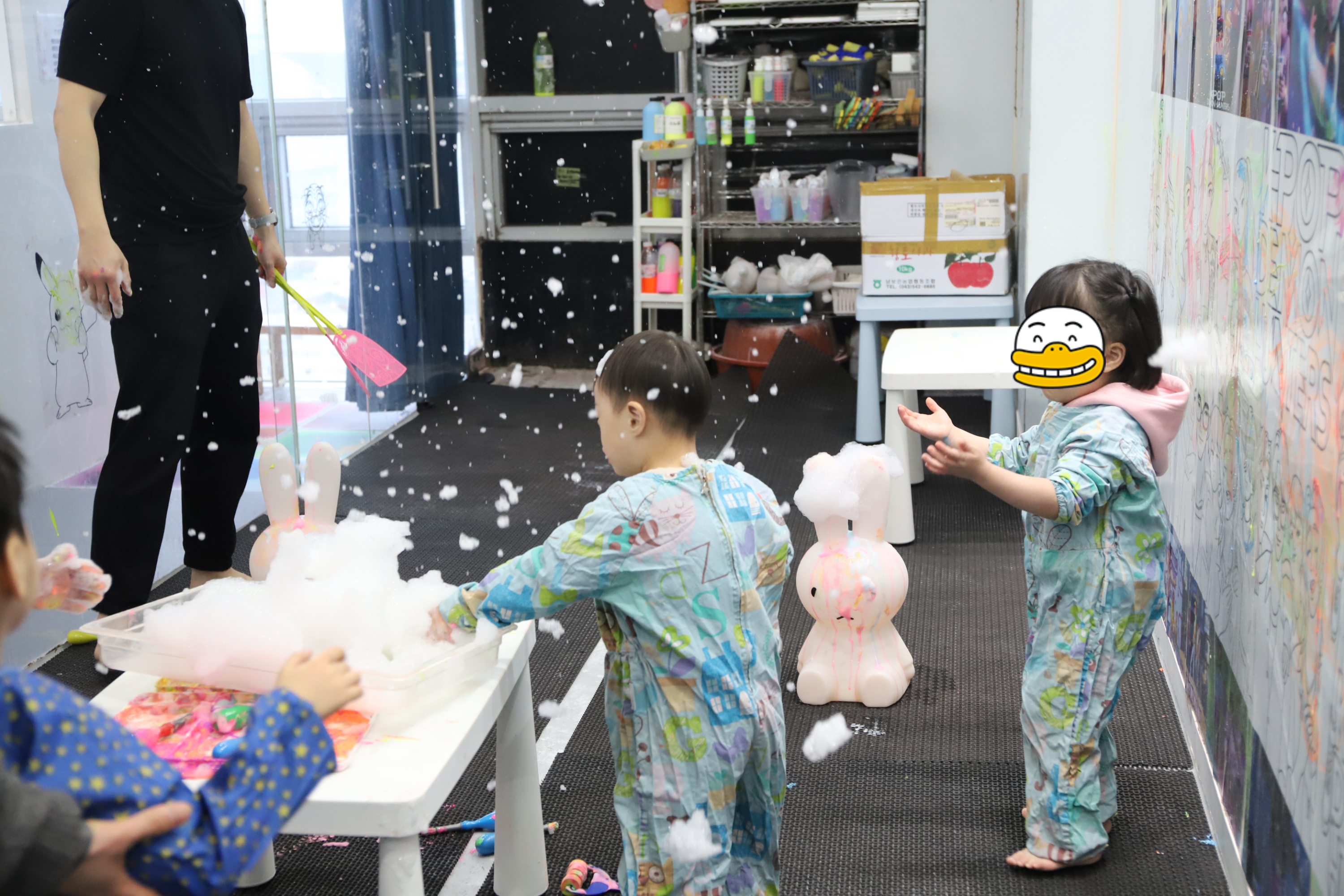 선생님의 설명을 듣고 열심히 따라하는 꼬맹이들