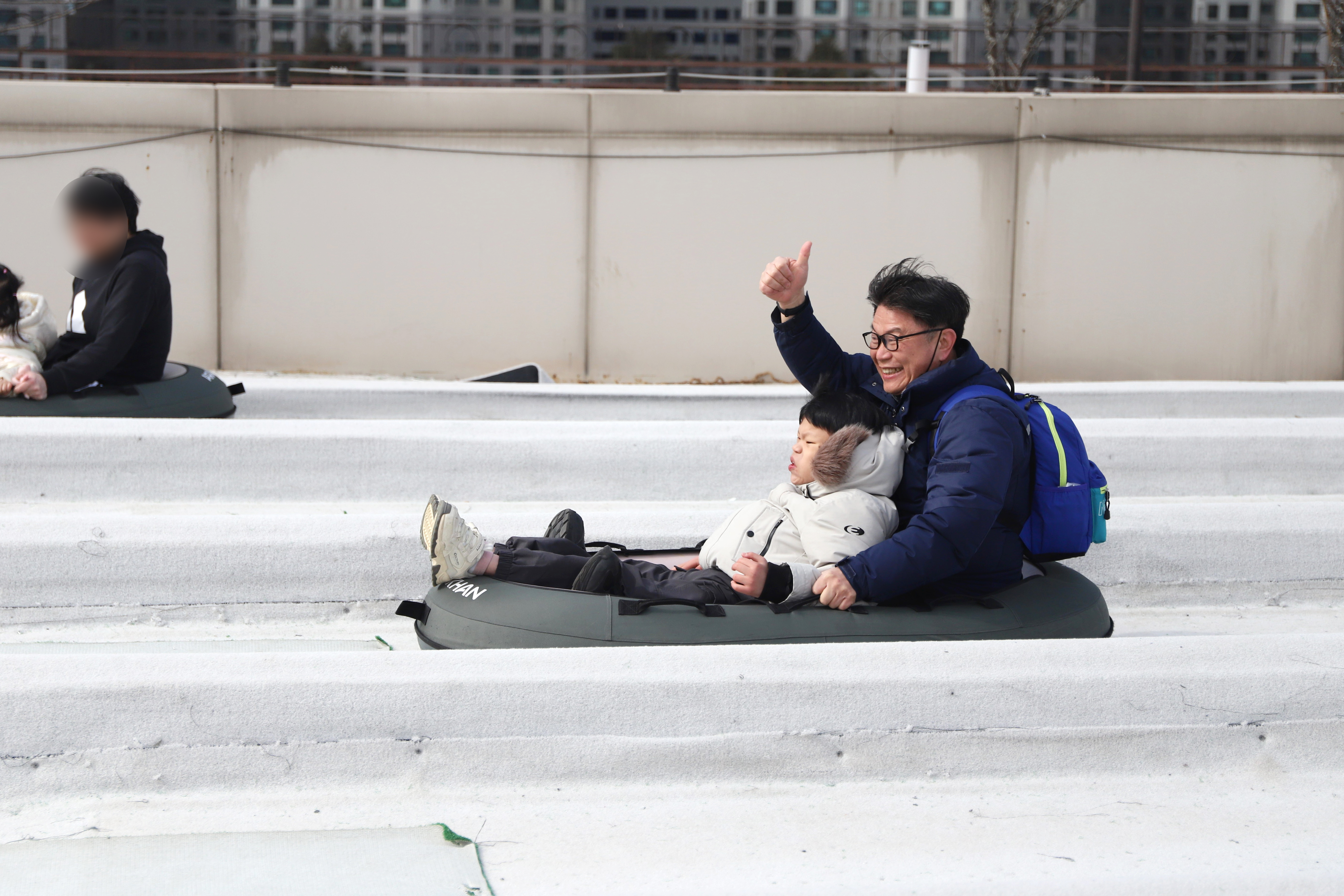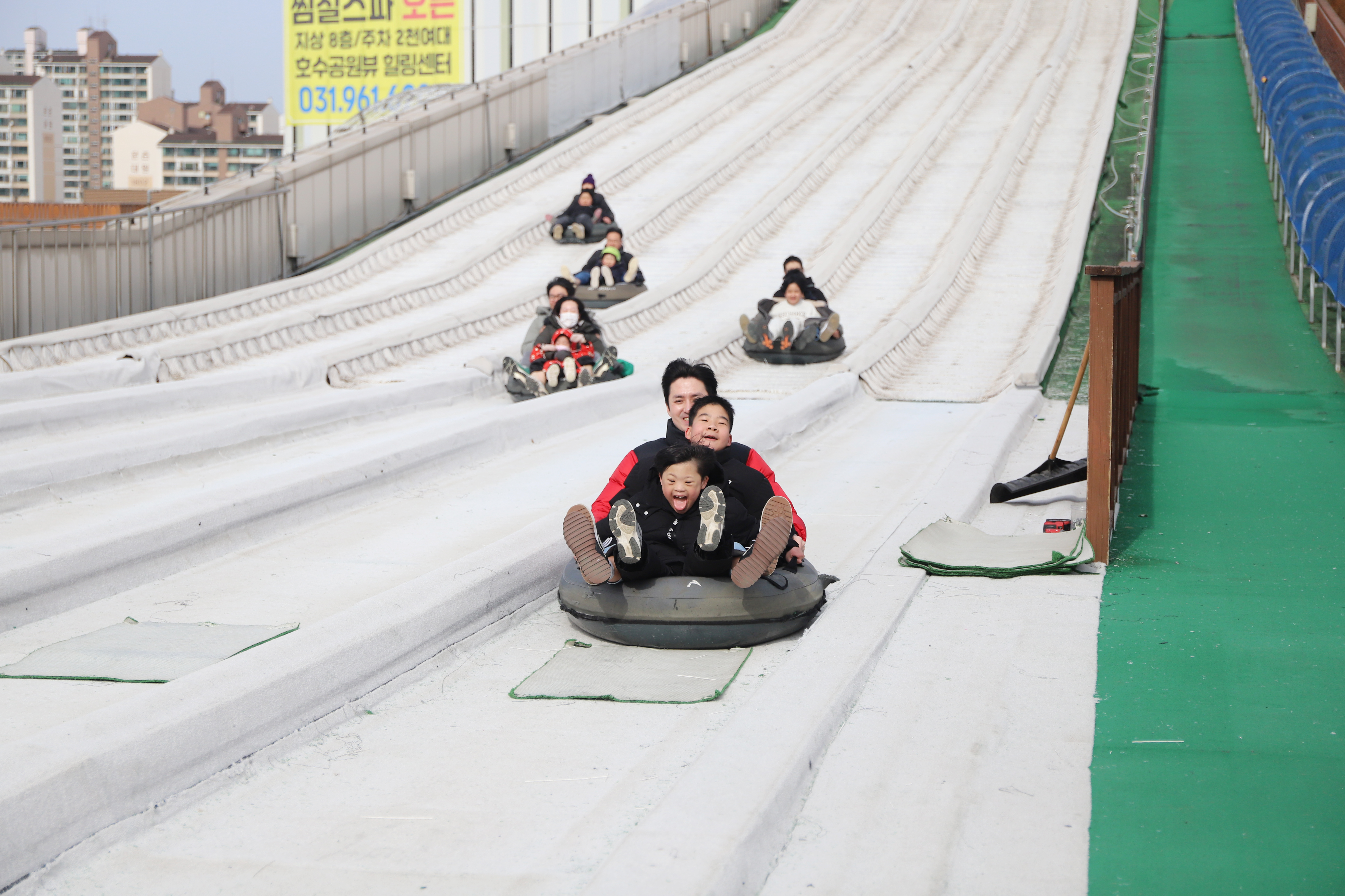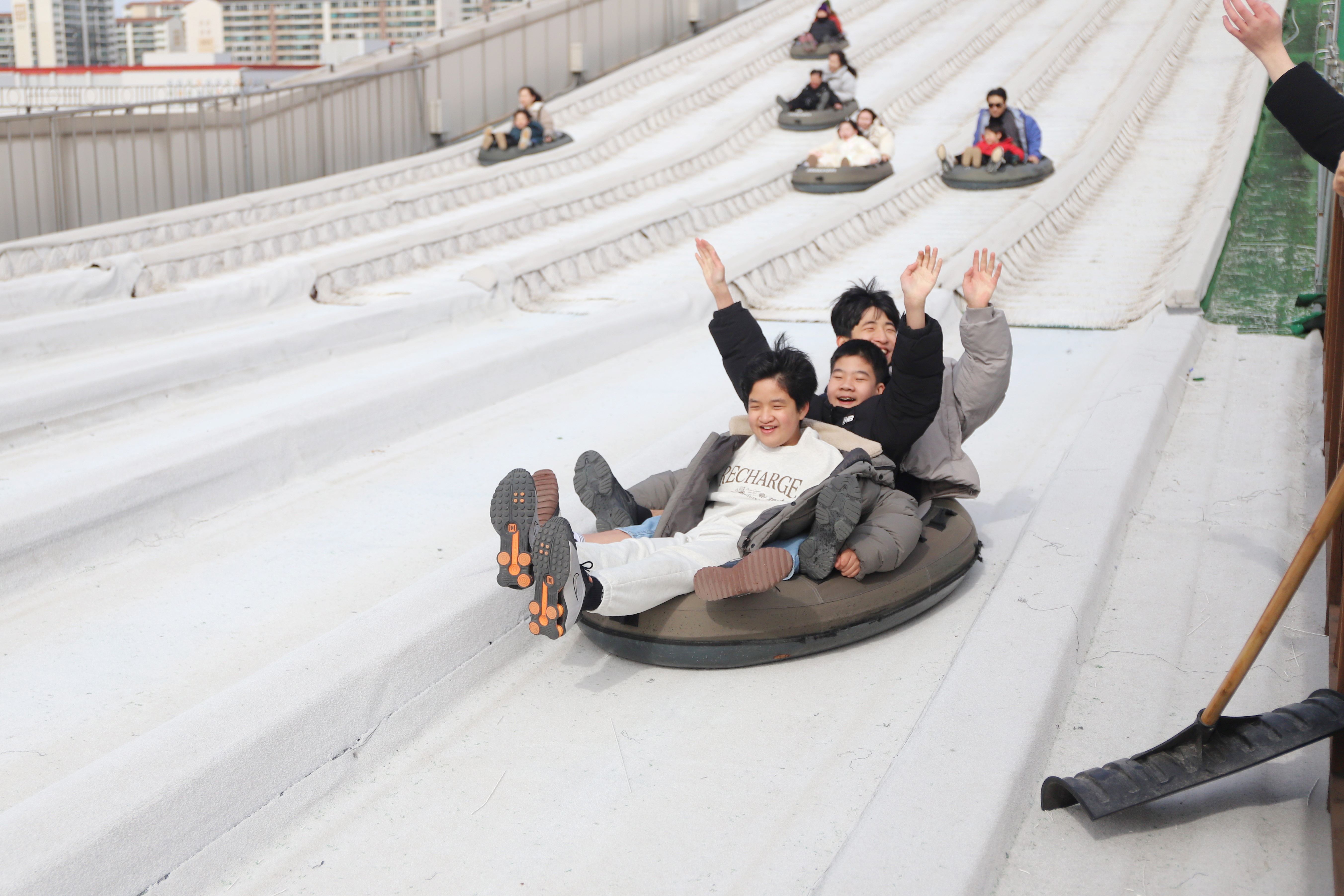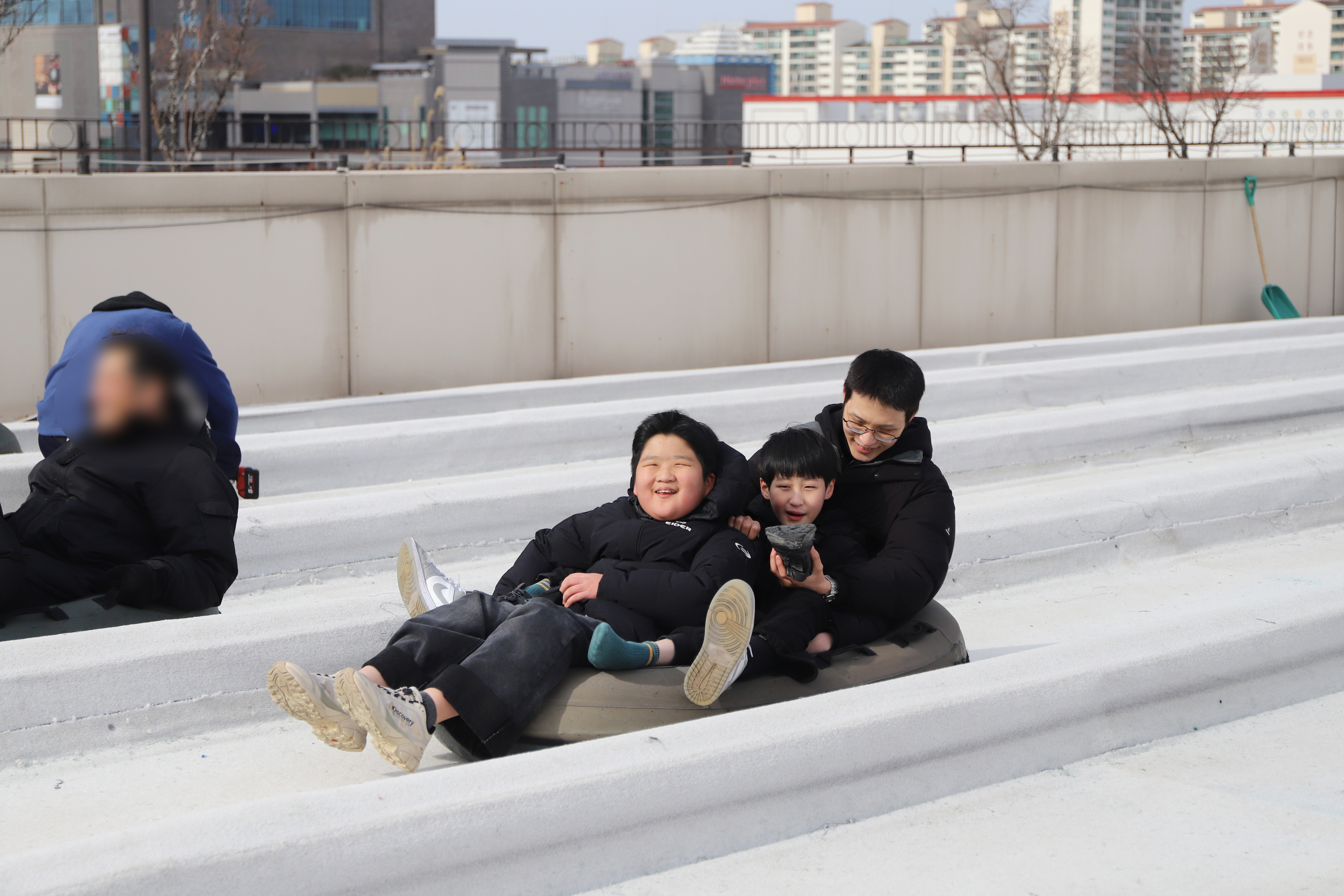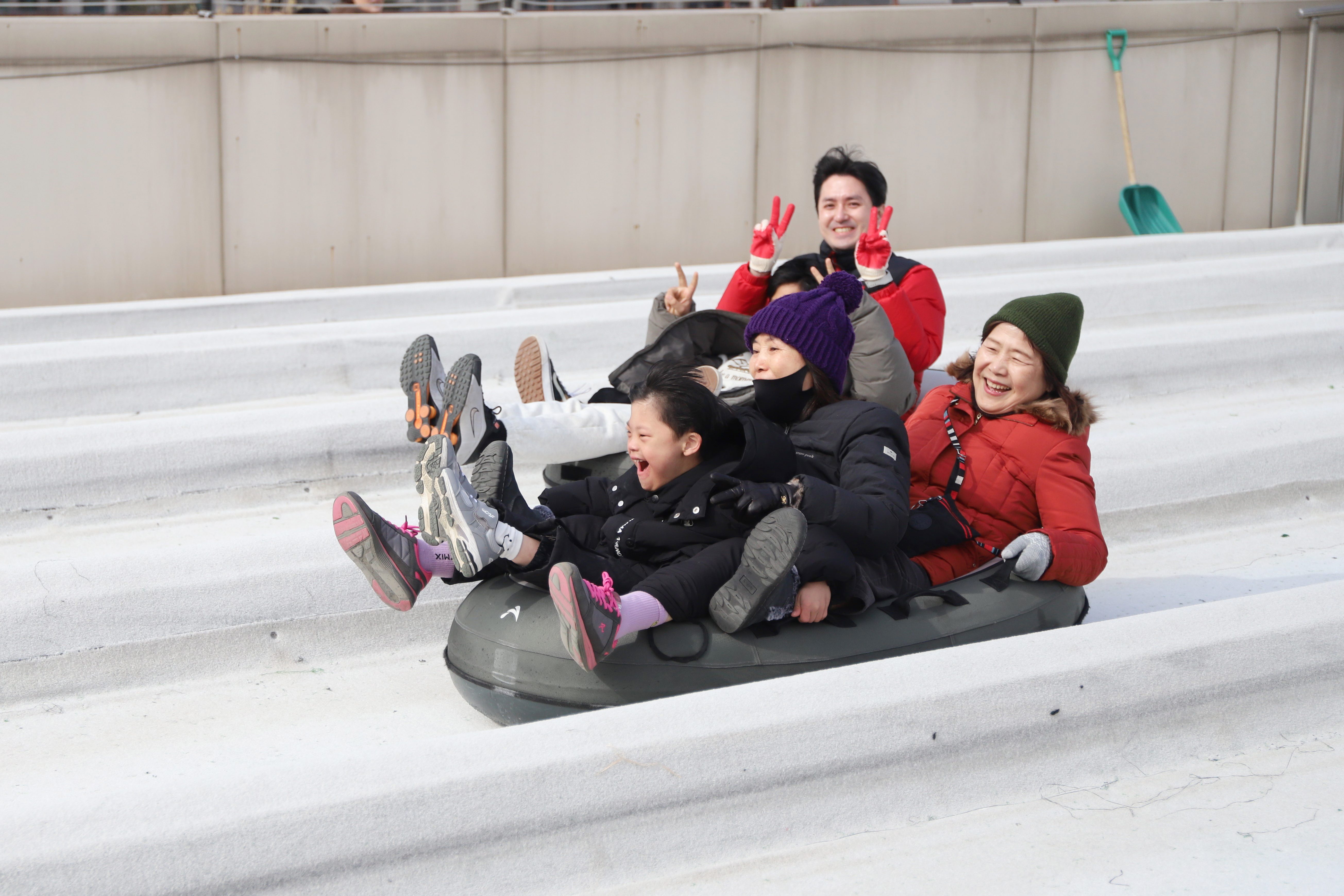 야외 썰매장에서 신나게 튜브를 함께 타며 행복한 시간을 보내고 돌아왔어요!