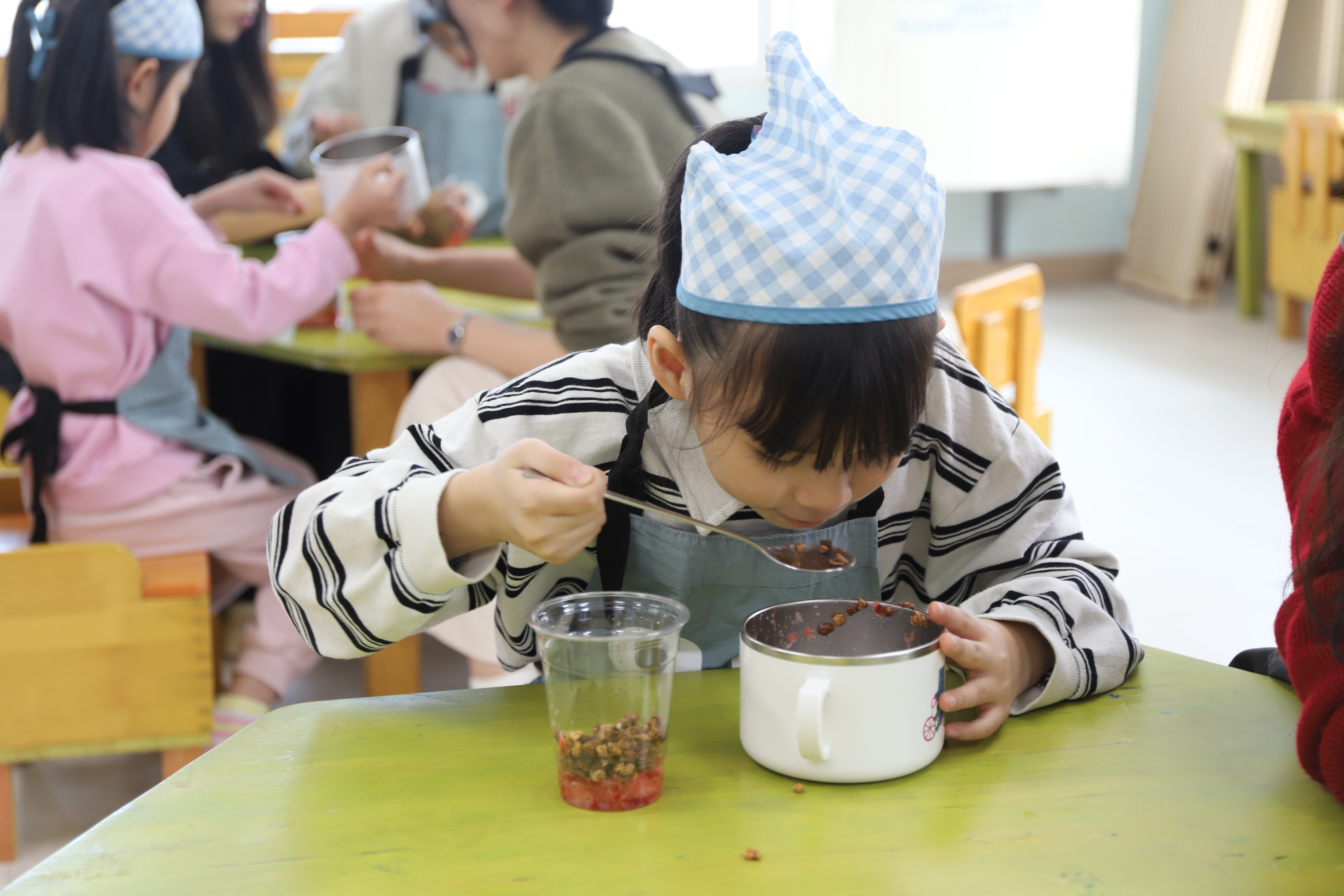요거트와 그래놀라, 과일 등을 차곡차곡 쌓으며 요리를 완성했답니다!