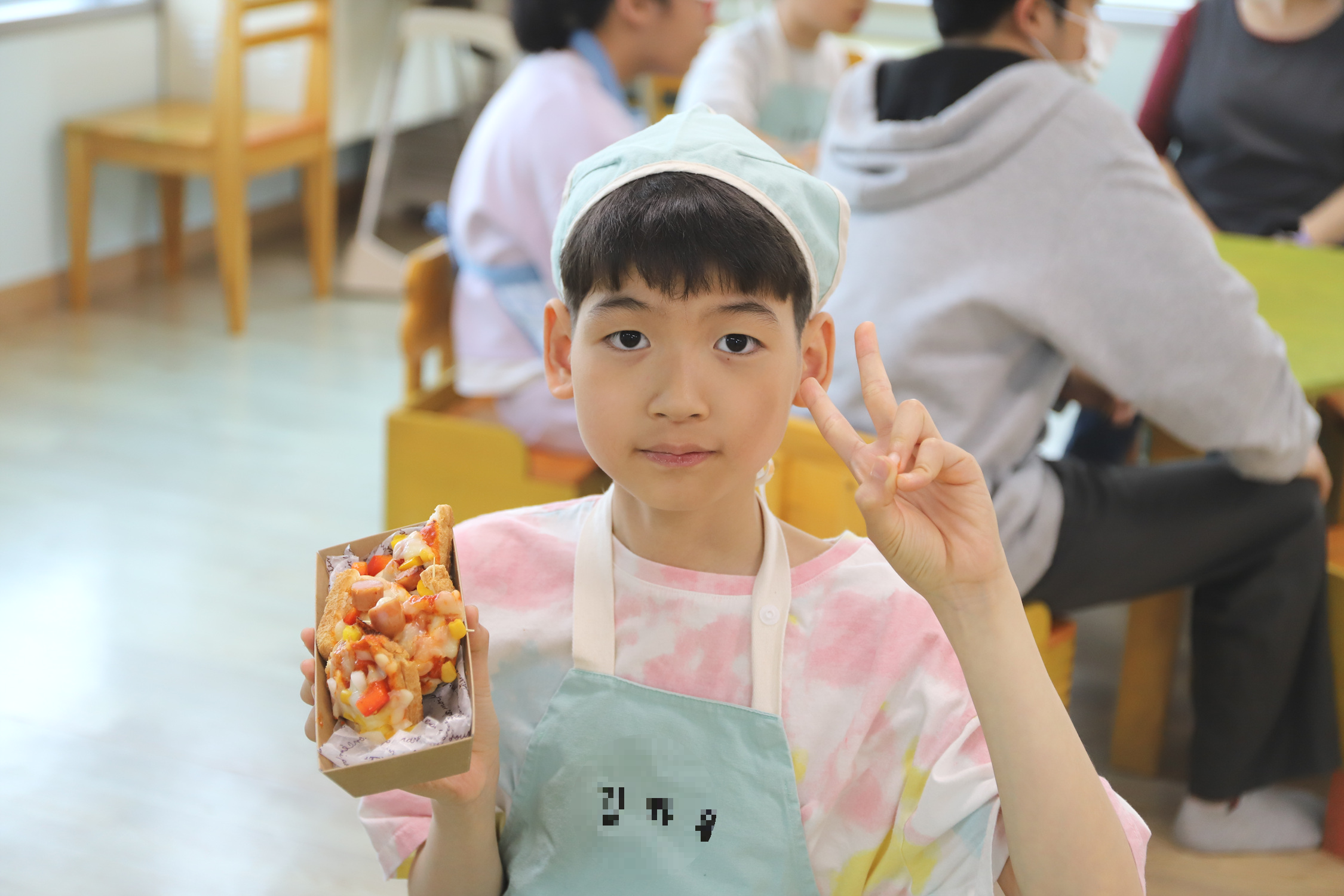 [2024.04.19] 하트 피자 만들기 재료를 잘게 다져 준비하고, 식빵을 이쑤시개로 고정하고소스를 바르고 토핑을 얹어 하트피자를 완성했습니다~전자레인지, 오븐, 칼 등 다양한 요리도구도 안전하게 사용해보았습니다! 설레임/천사들의 이야기 2024.04.23